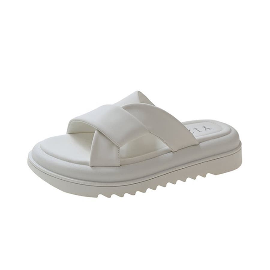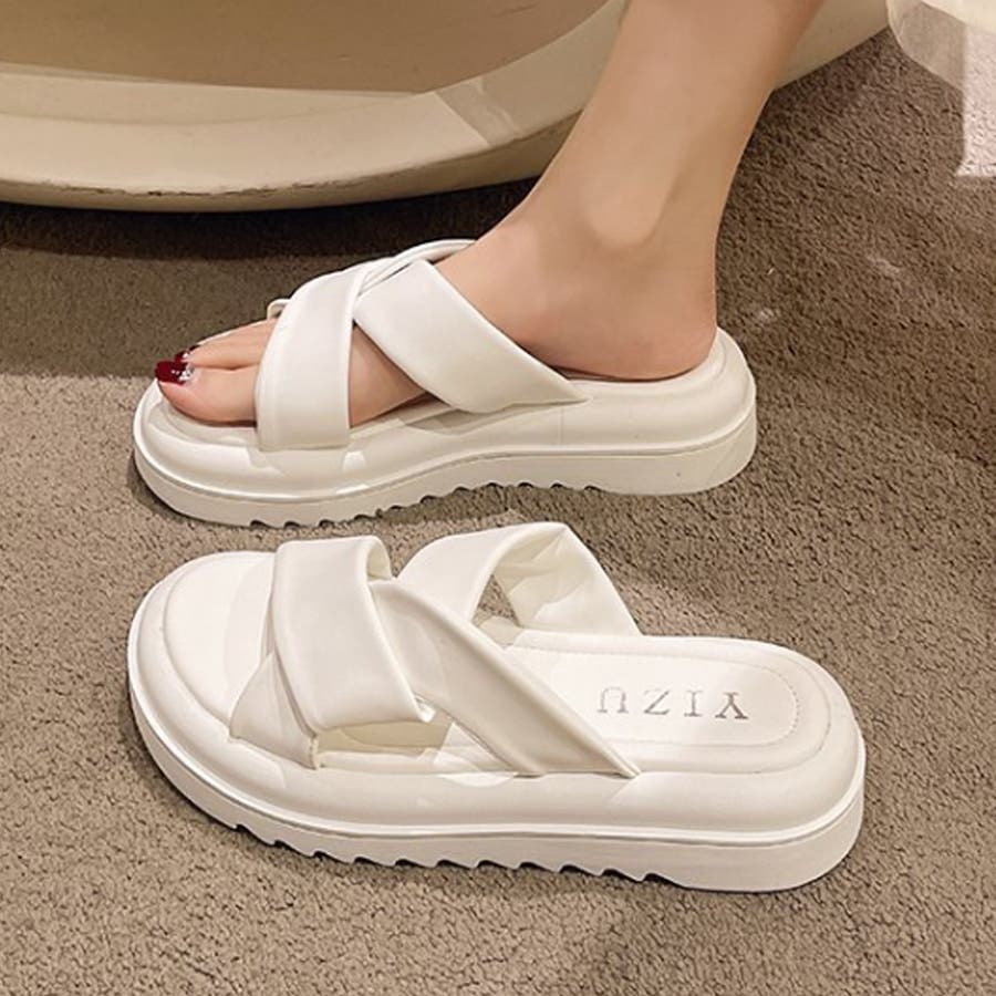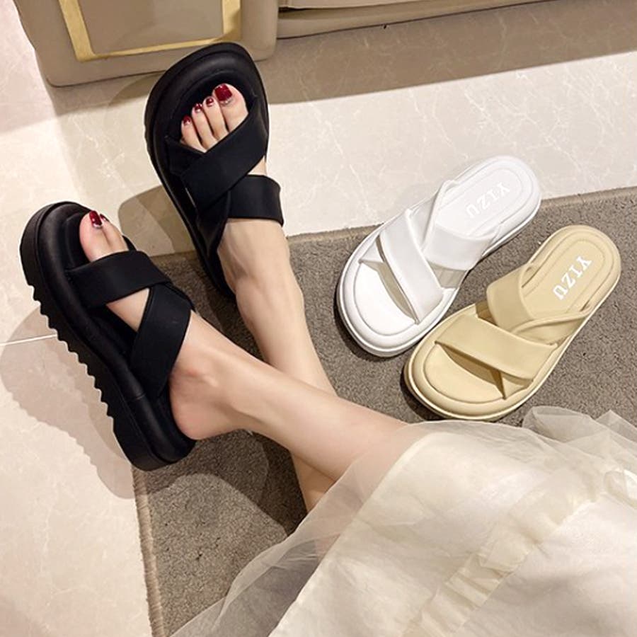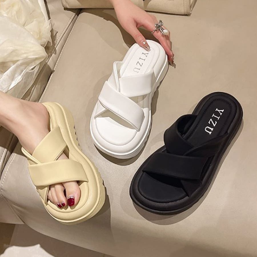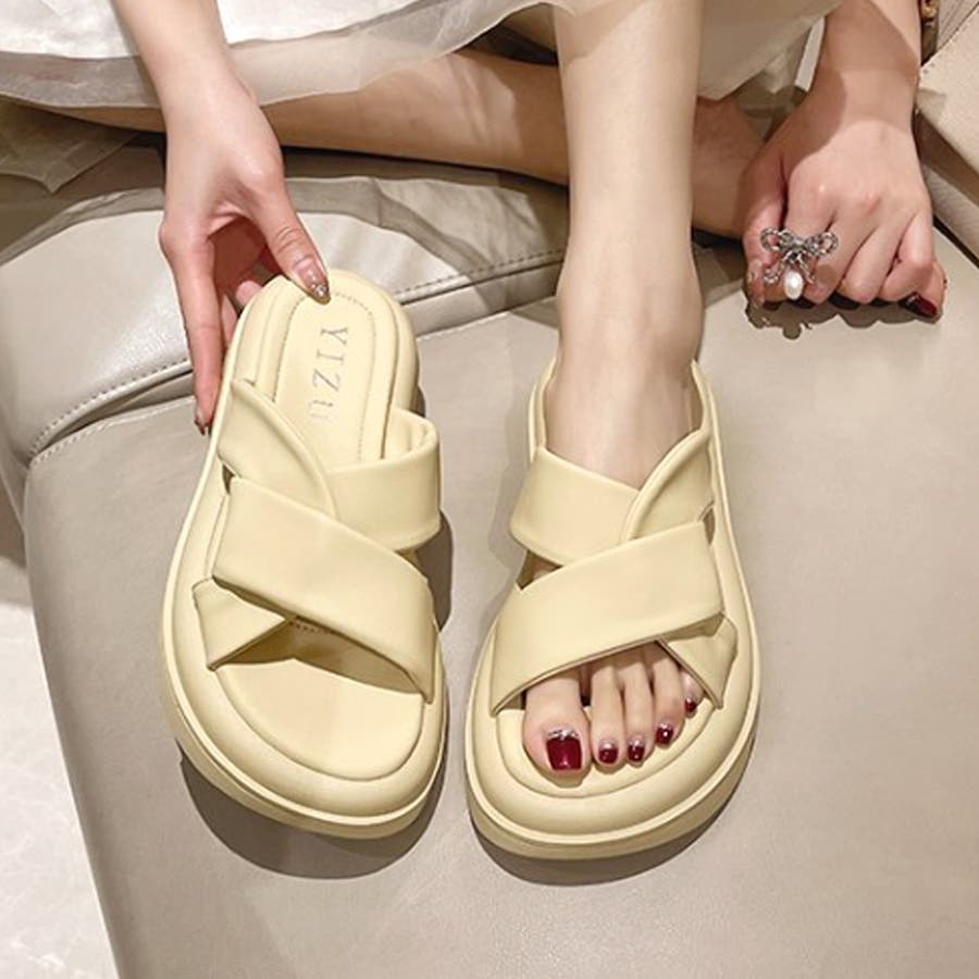 ・しっかりホールドする太めのクロスベルトでさっと履きやすく、歩きやすくて疲れにくい。