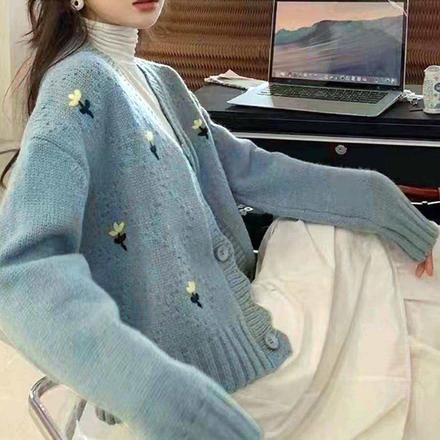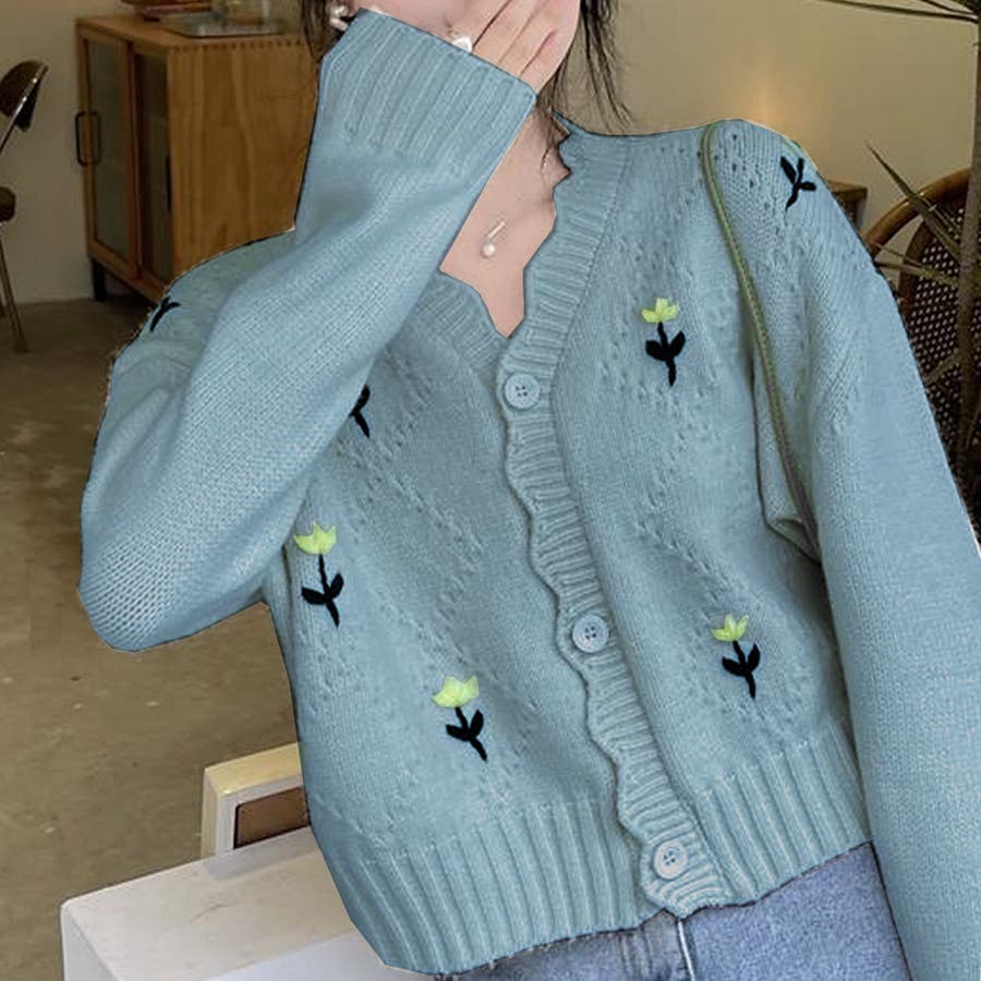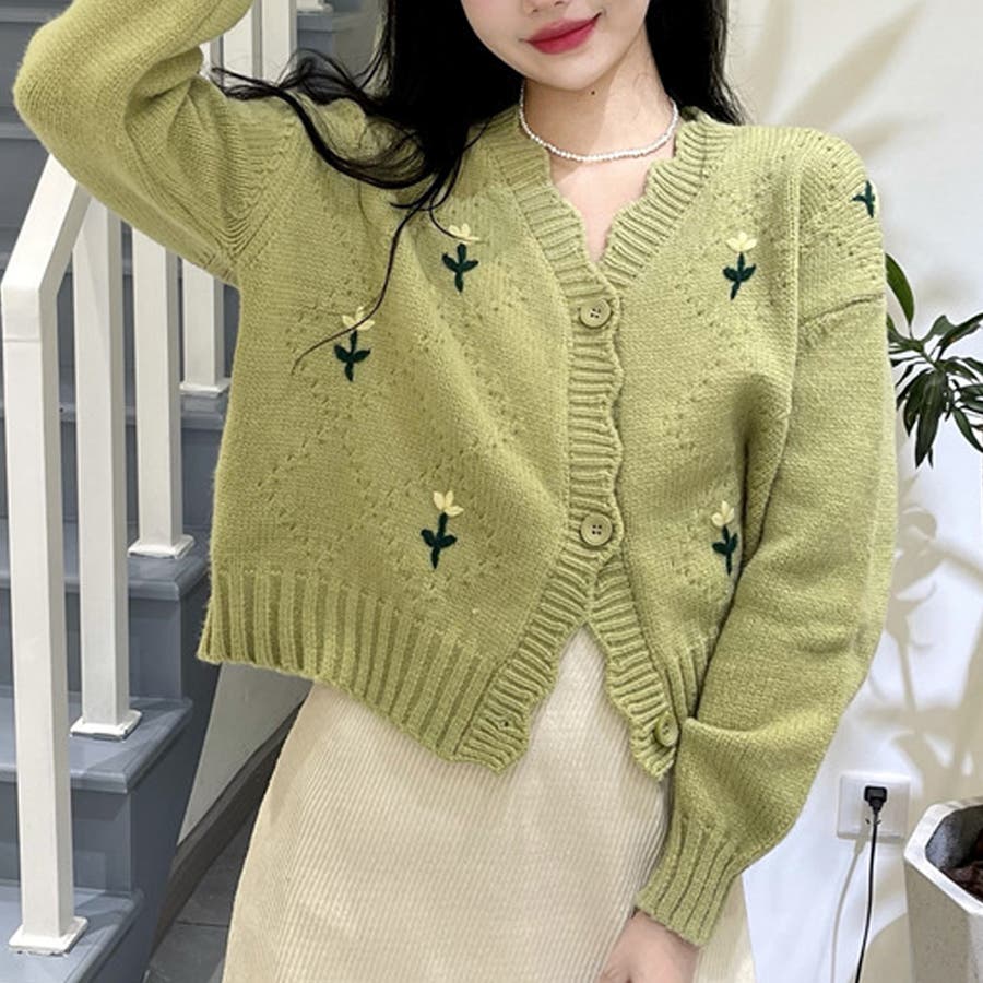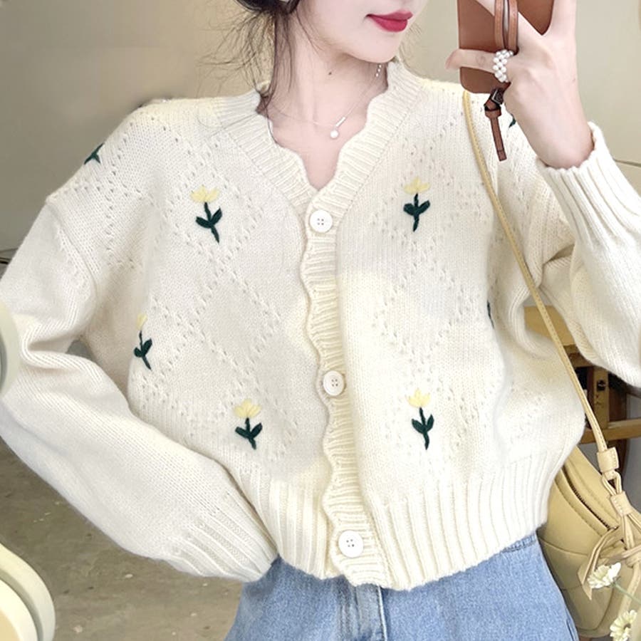 ・デザインのポイントとなるシンプルな花柄が可愛いカーディガン♪