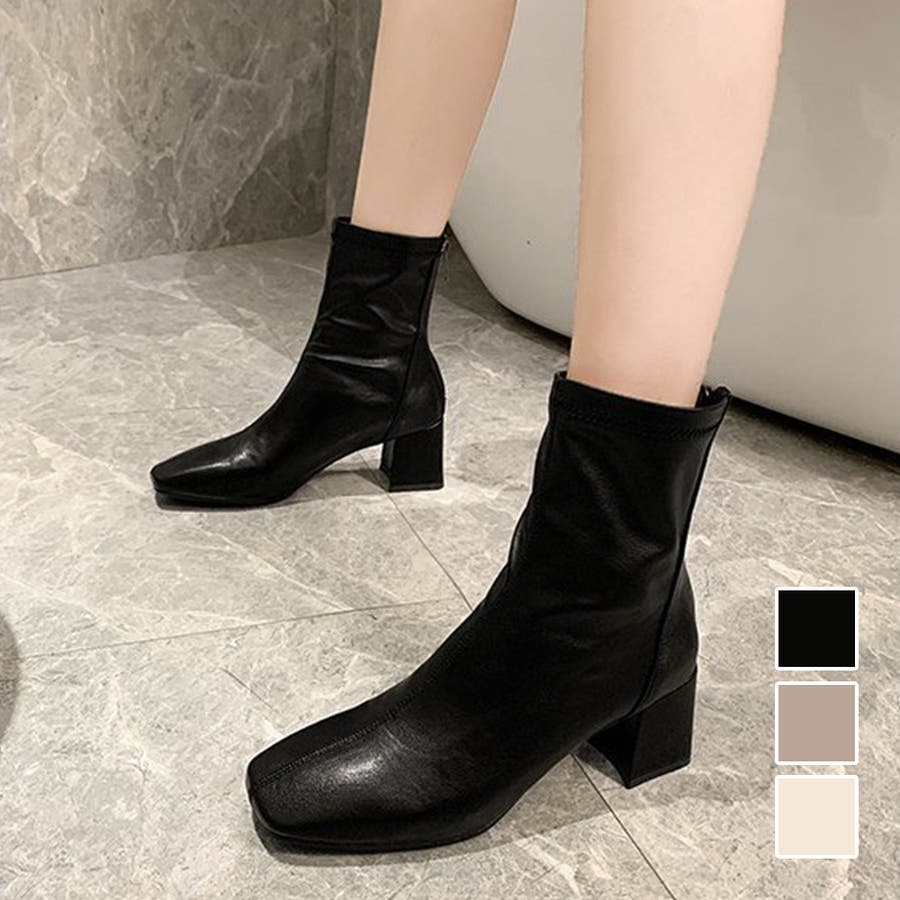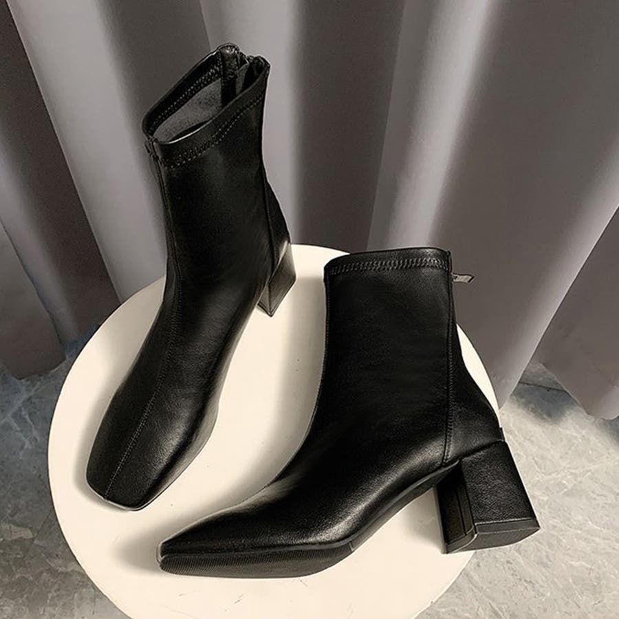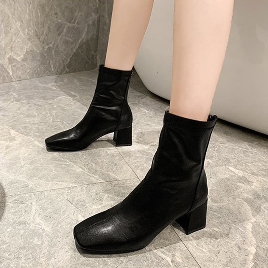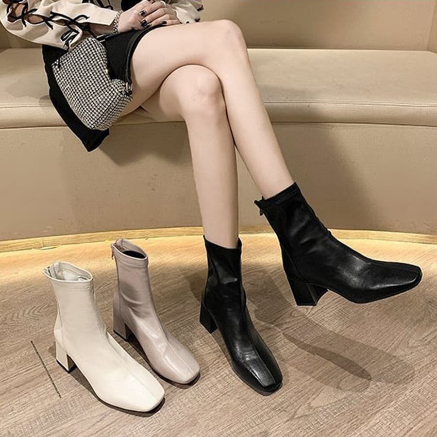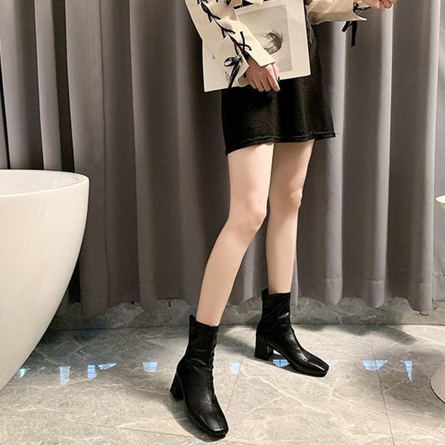 スクエアトゥショートブーツ レディース 10代