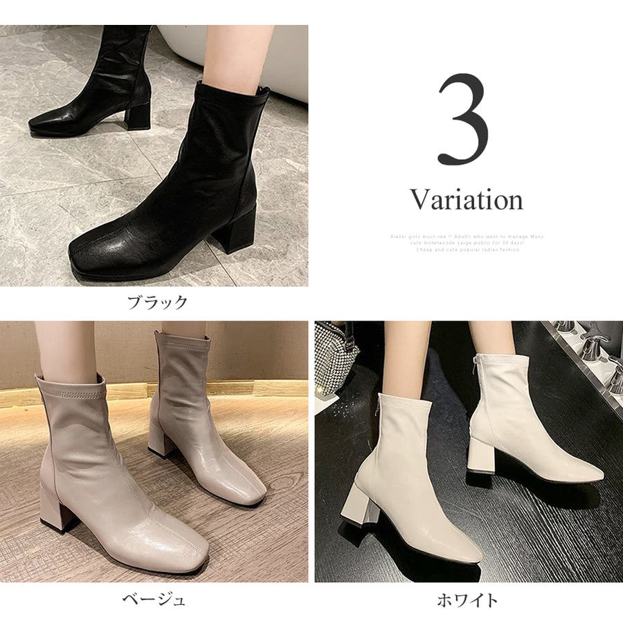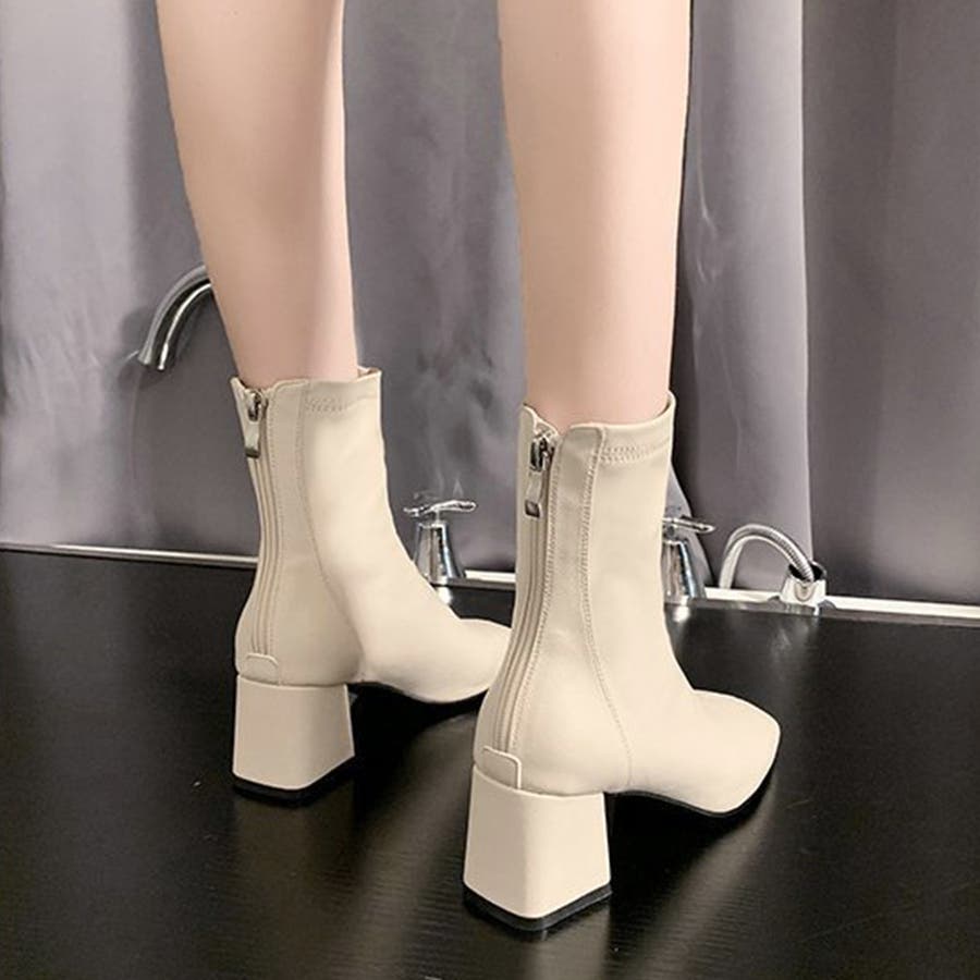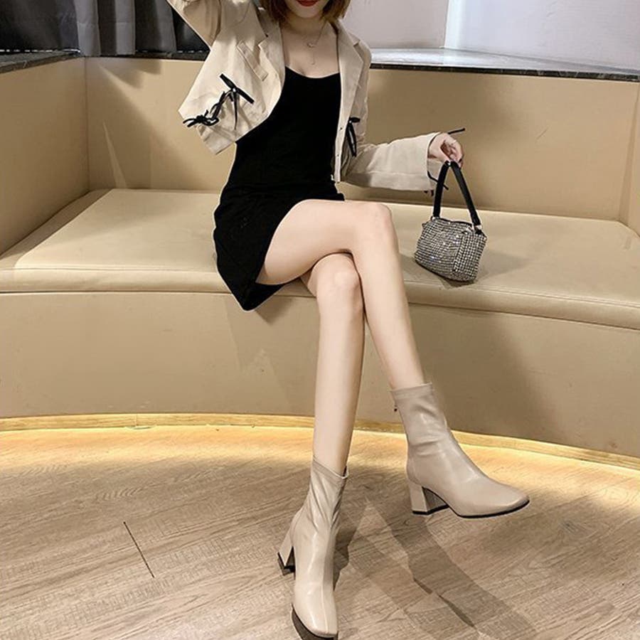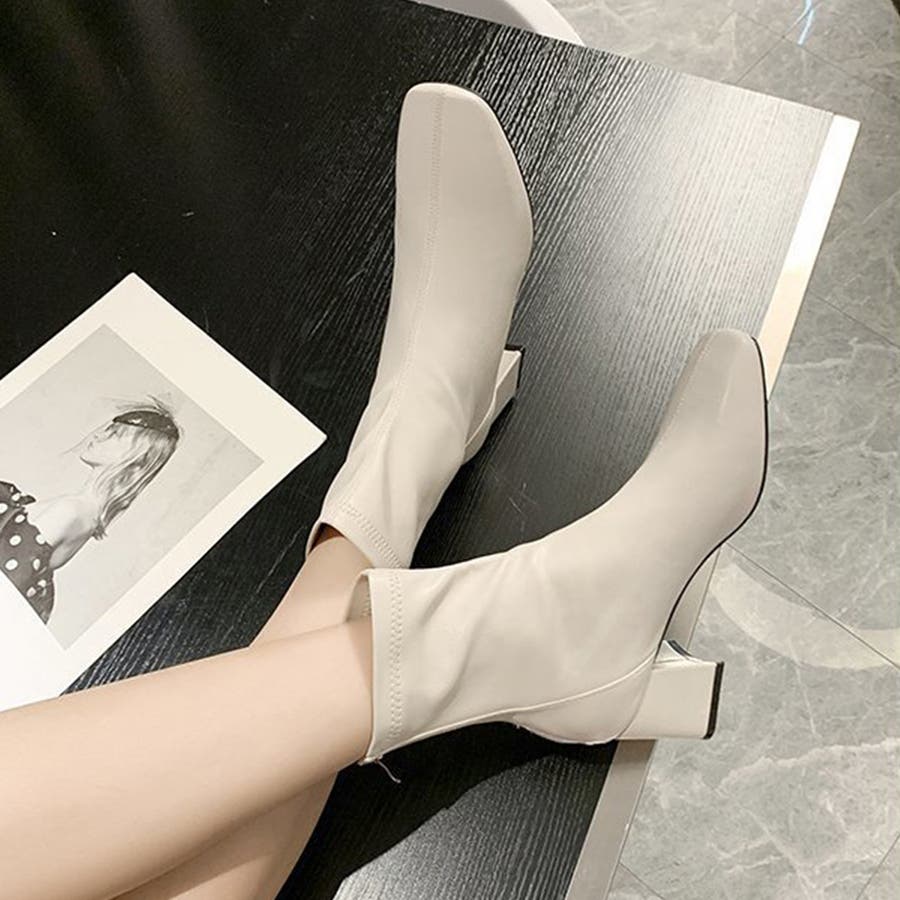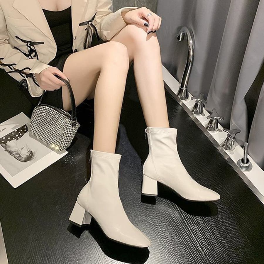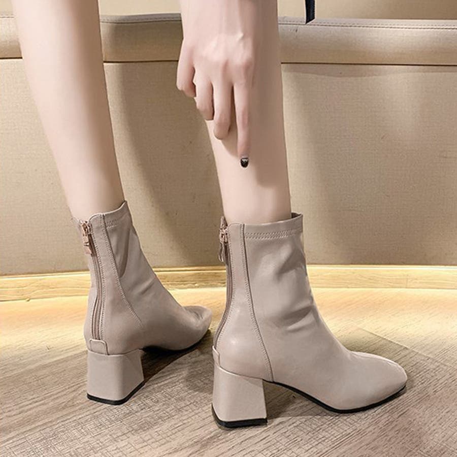 スクエアトゥショートブーツ レディース 10代