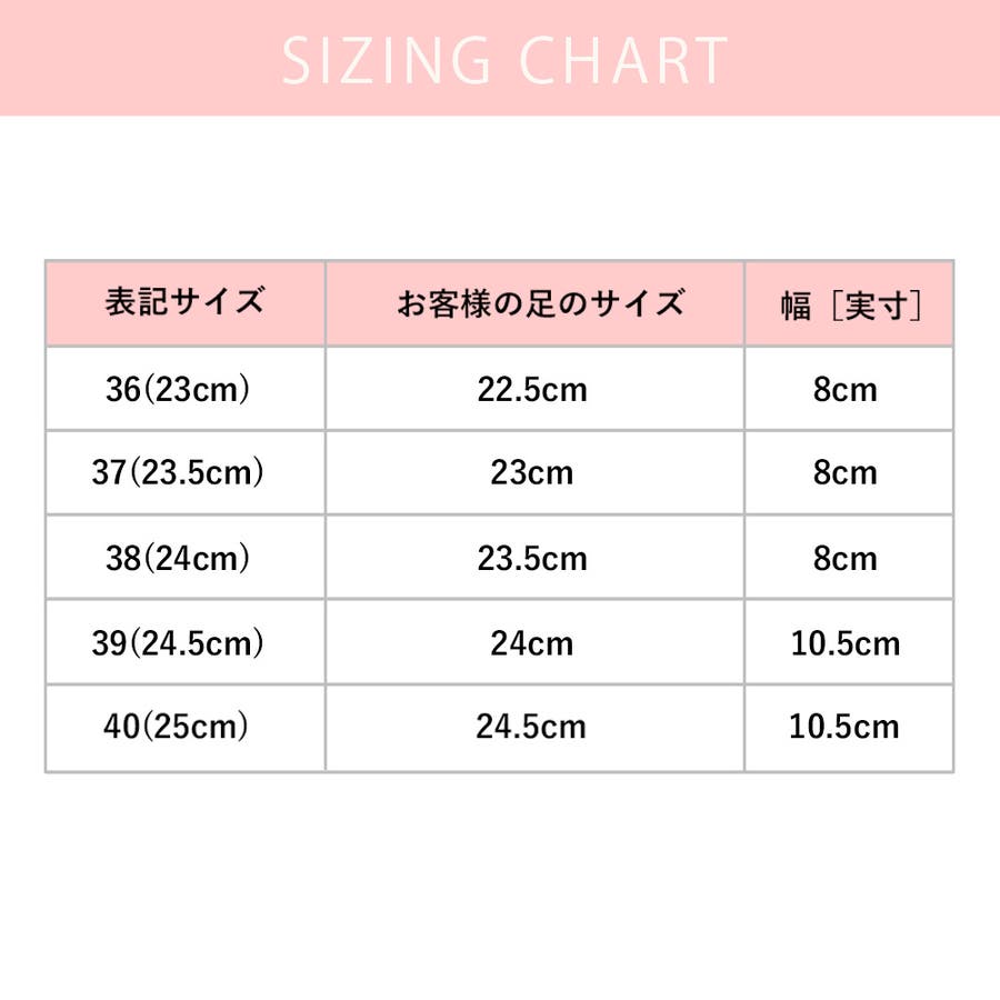 | サイズ | 35(22.5cm) / 36(23cm) / 37(23.5cm) / 38(24cm) / 39(24.5cm) |