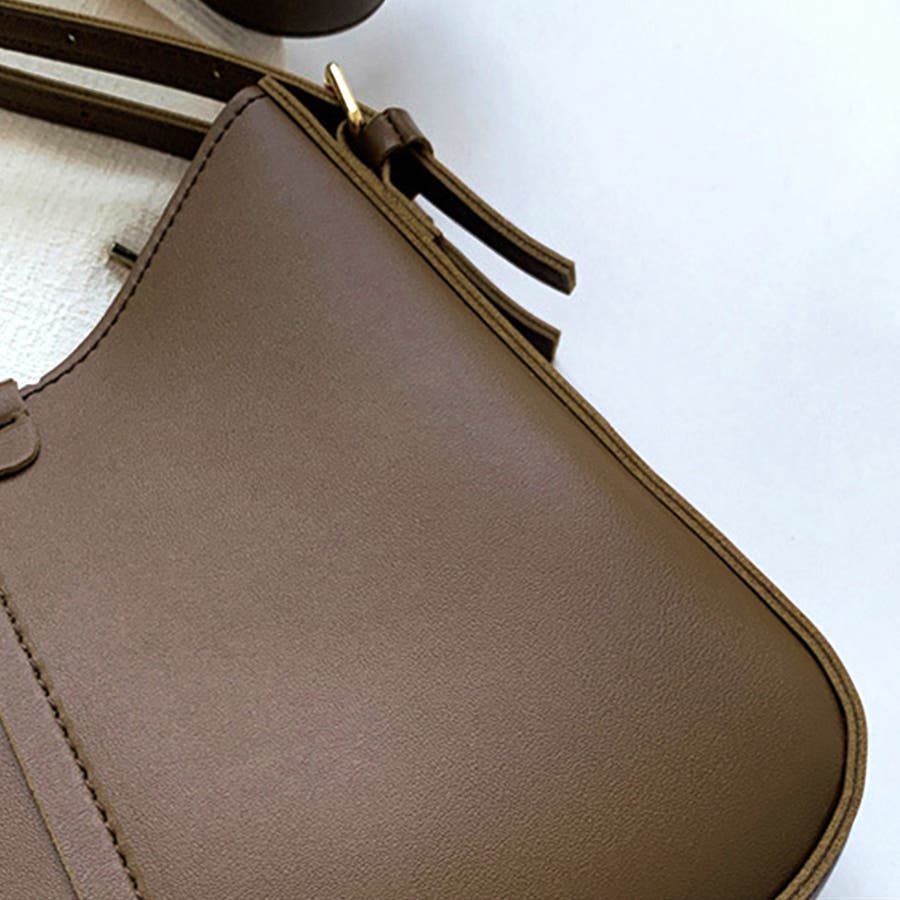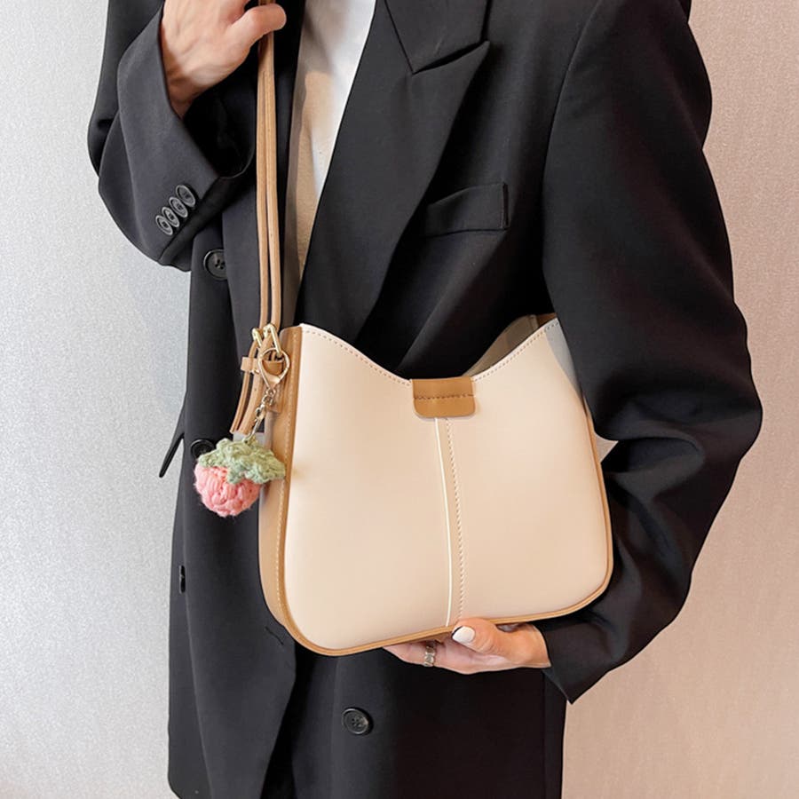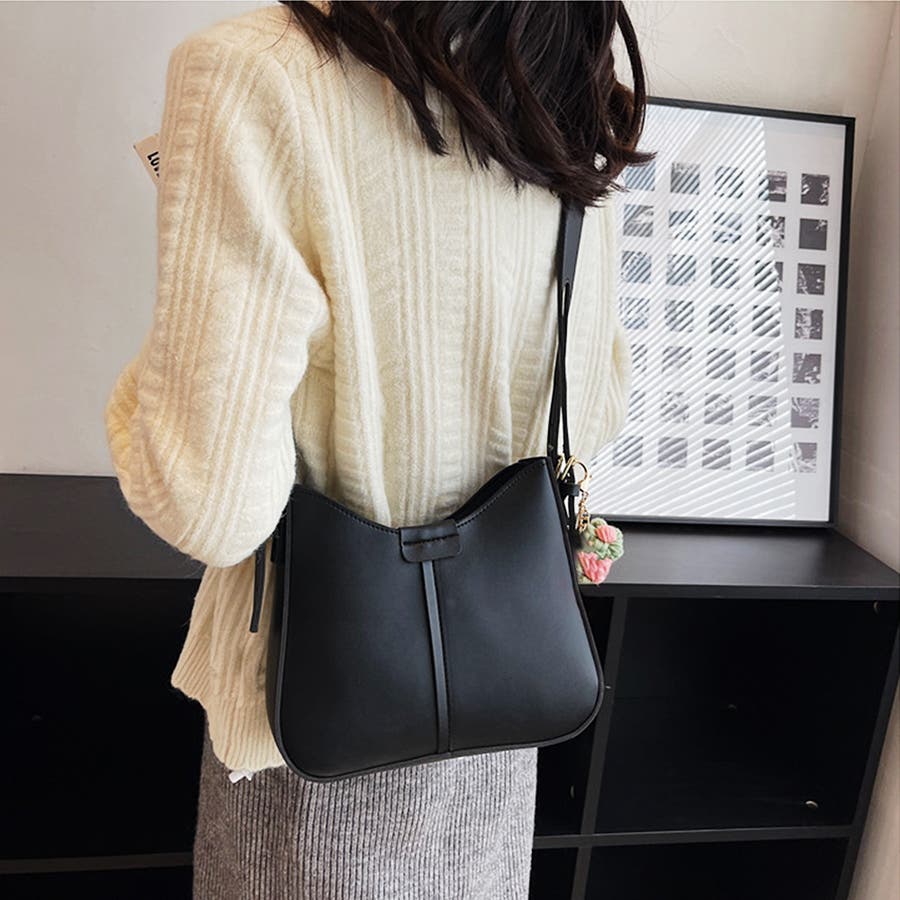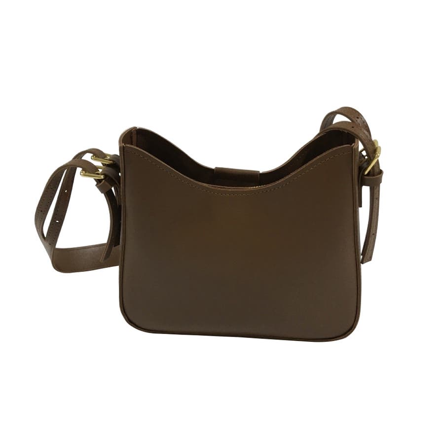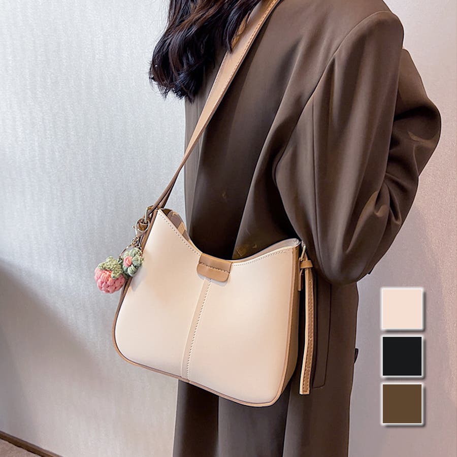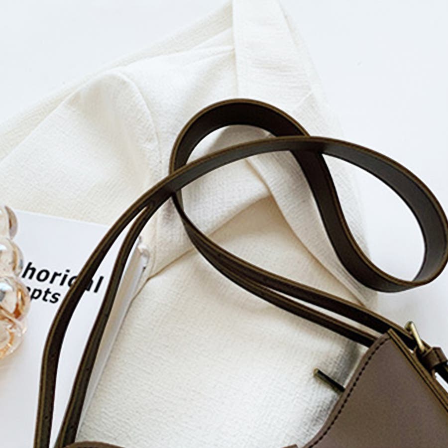 ・シンプルだからコーデの邪魔をせず使いやすい。こだわりを感じるストラップ!全体的に曲線デザインを取り入れた可愛い印象のバッグ。