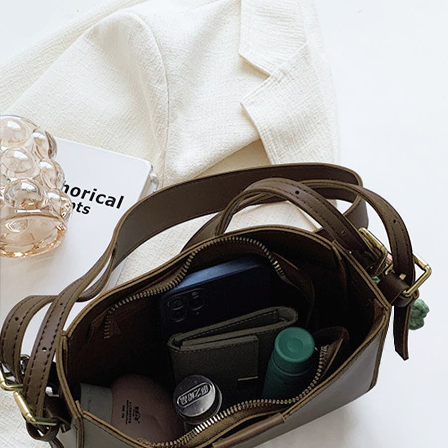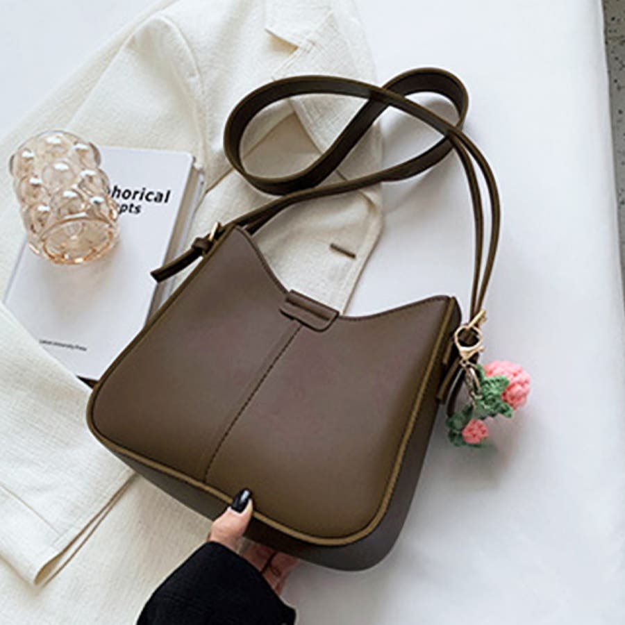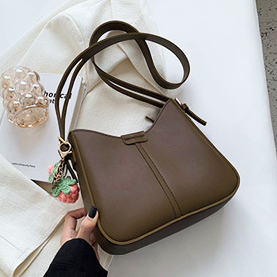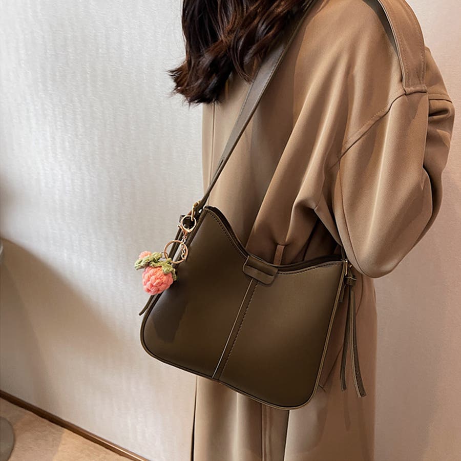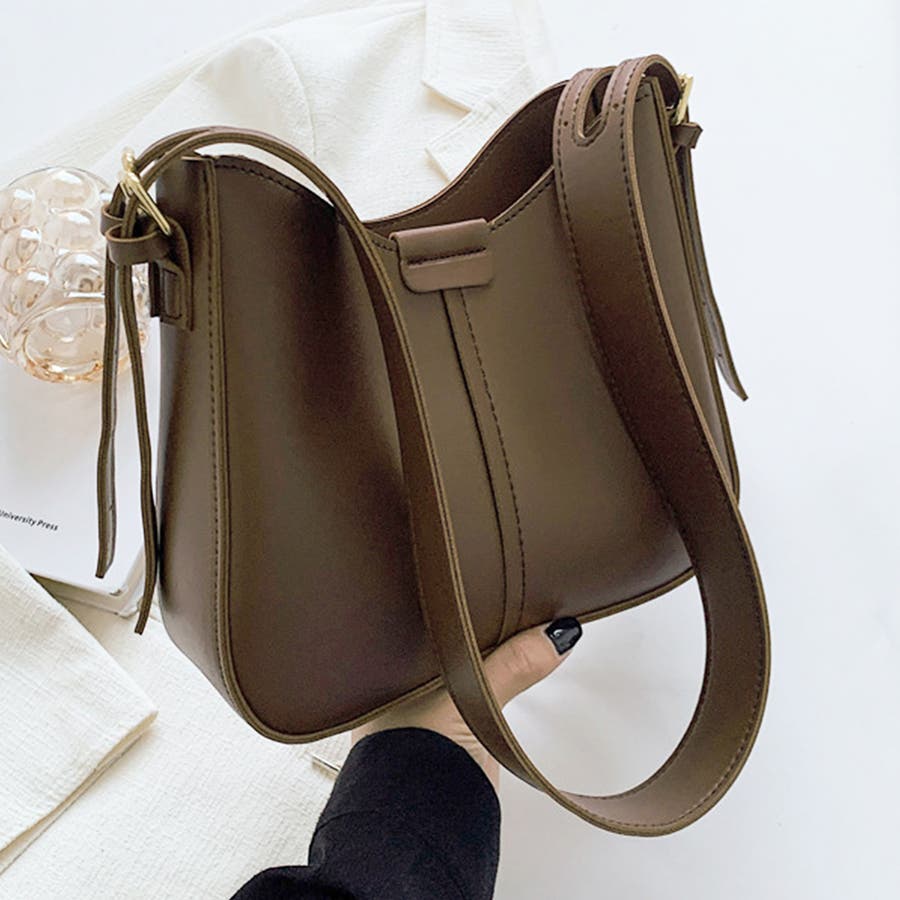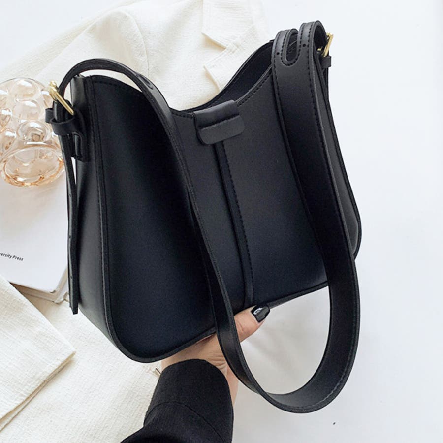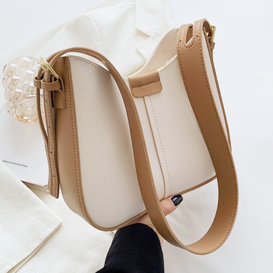 ・シンプルだからコーデの邪魔をせず使いやすい。こだわりを感じるストラップ!全体的に曲線デザインを取り入れた可愛い印象のバッグ。