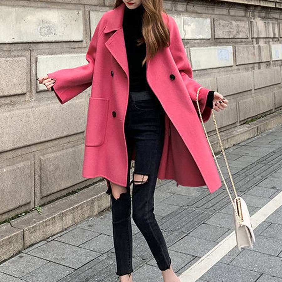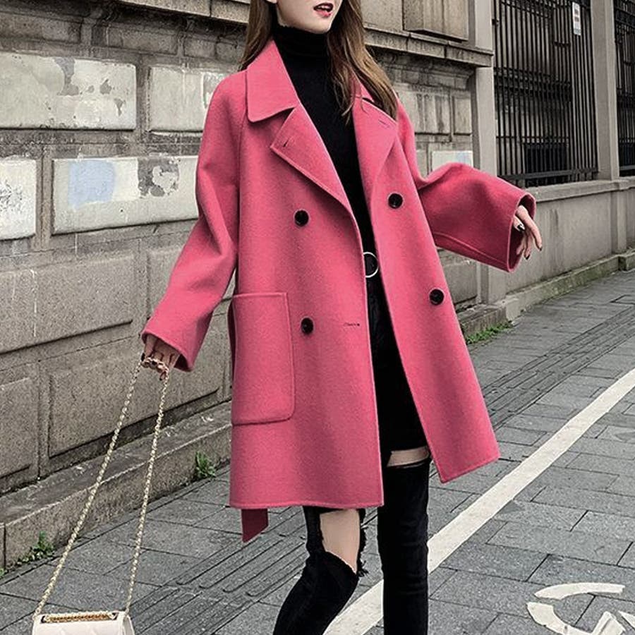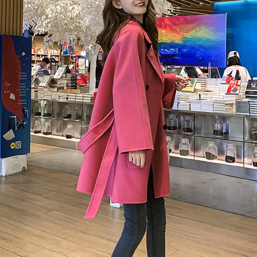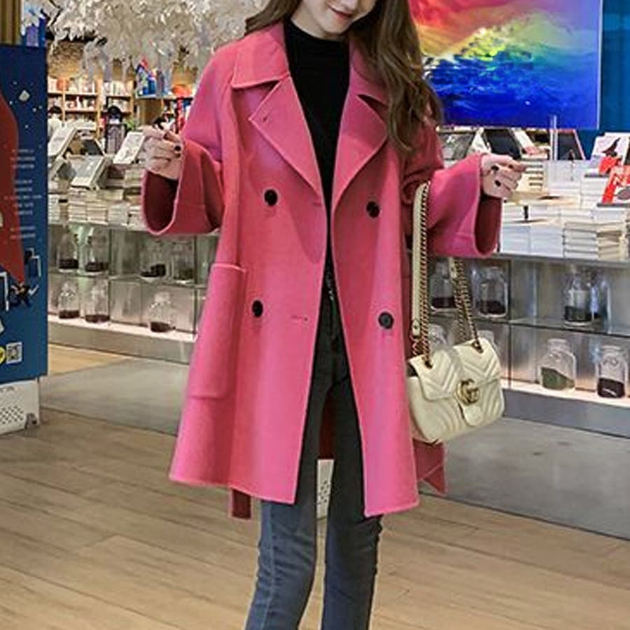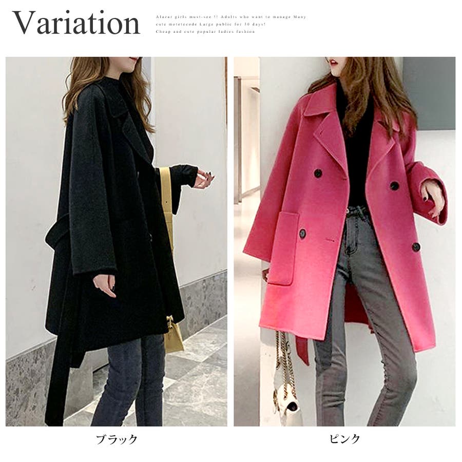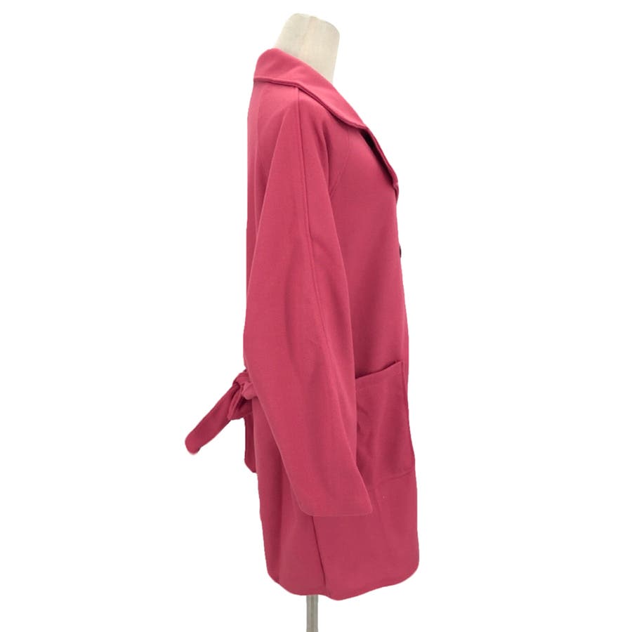 大好きなホットピンクに近いレッドで、とても気に入りました。いつもよりワンサイズ大きめにしたので、中にトレーナー等を着込めるサイズ感で良かったです。裏地が無い分、ミディアム丈のコートにしては重さも心配する程では無かったです。