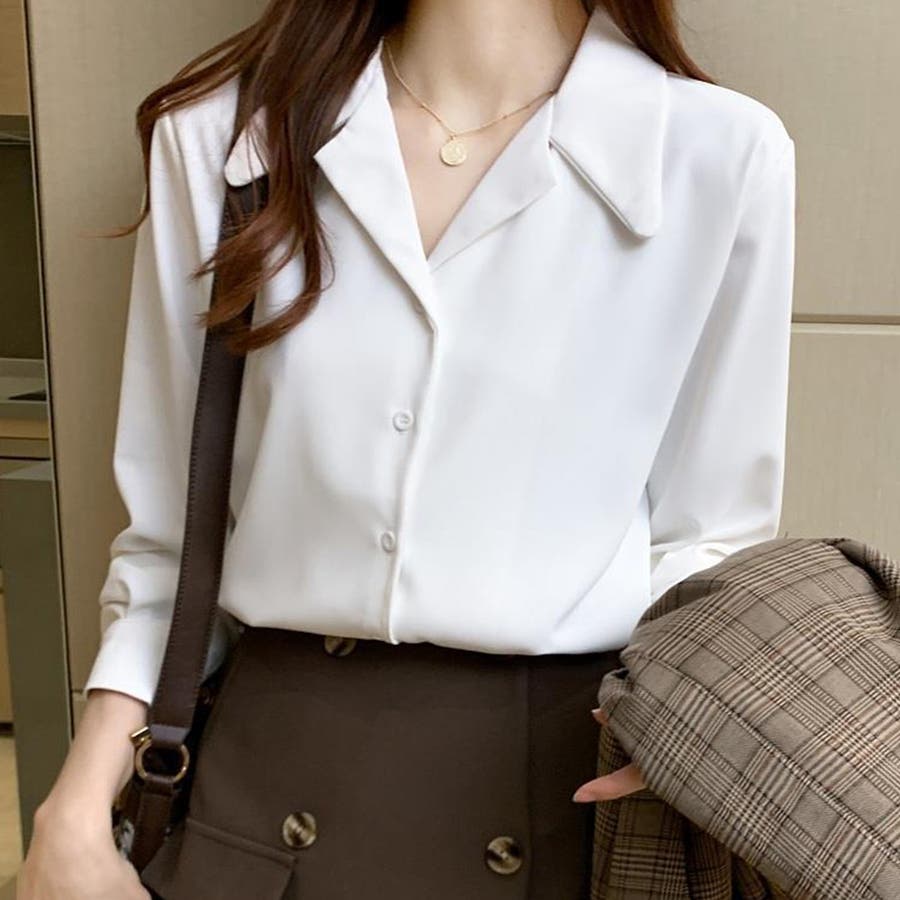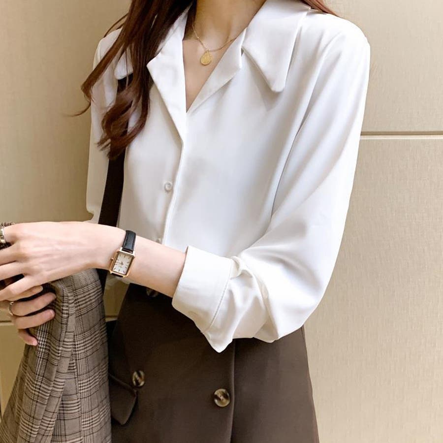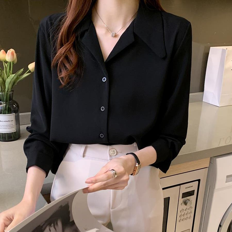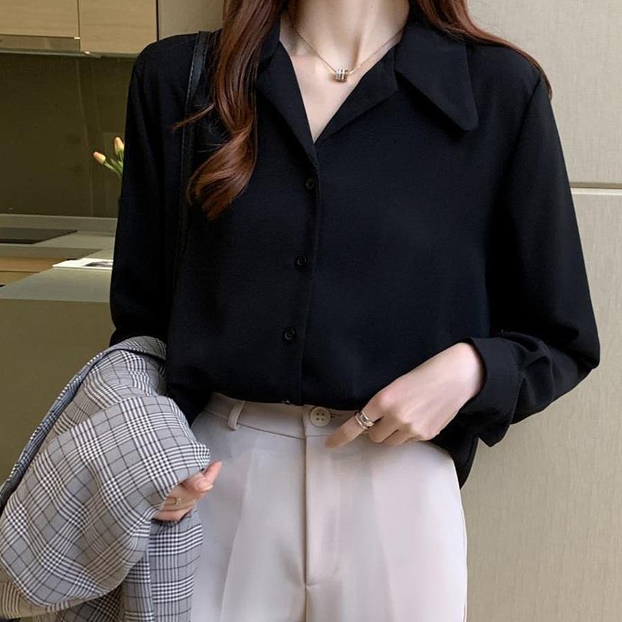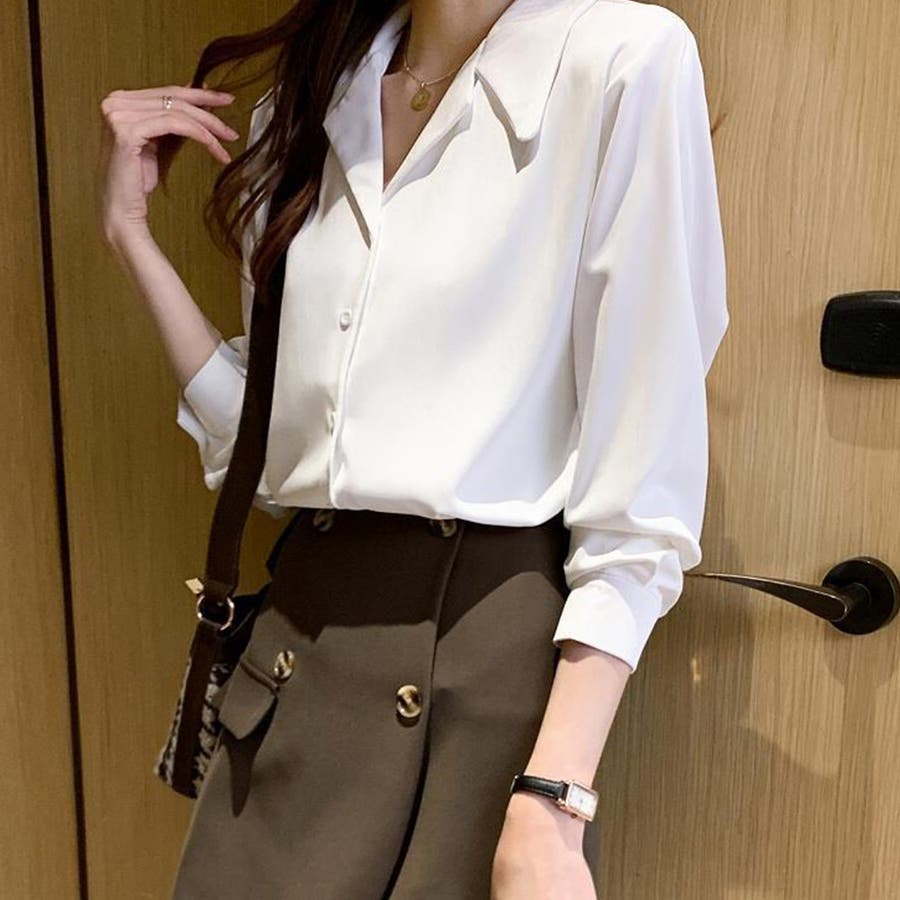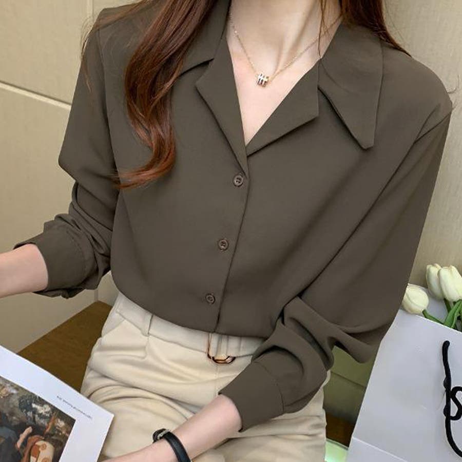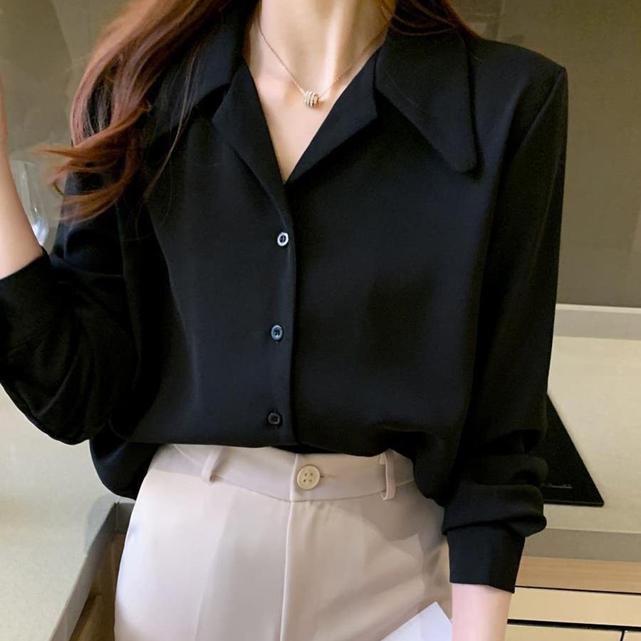 ・着回し力抜群でちょっとしたお出かけにも使えるシフォンシャツブラウス。