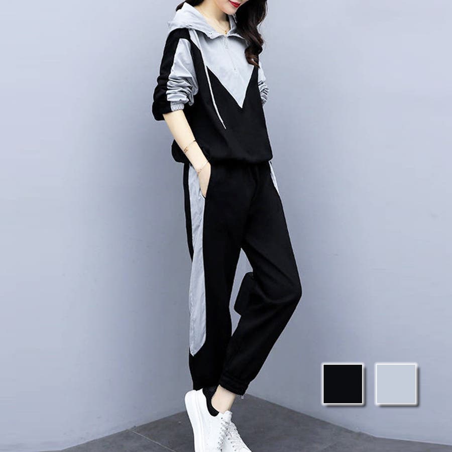 ・おしゃれなバイカラーがかっこいい!スポーティーな印象のセットアップ。こだわりを感じるバイカラーデザイン。