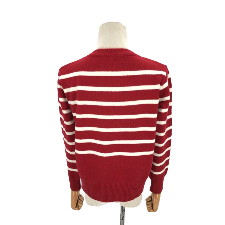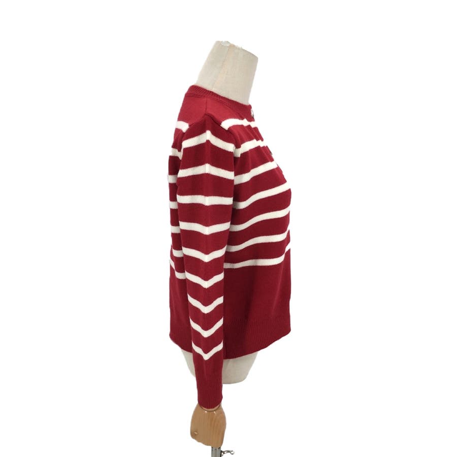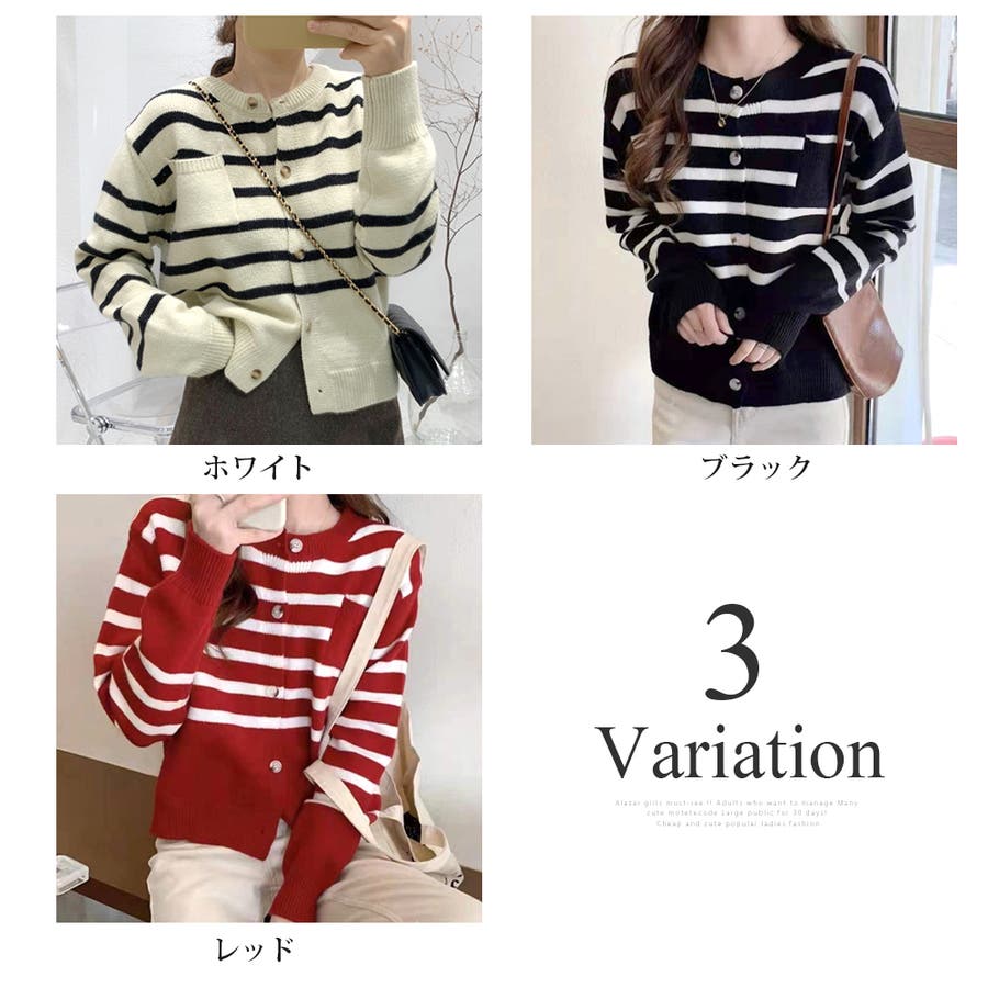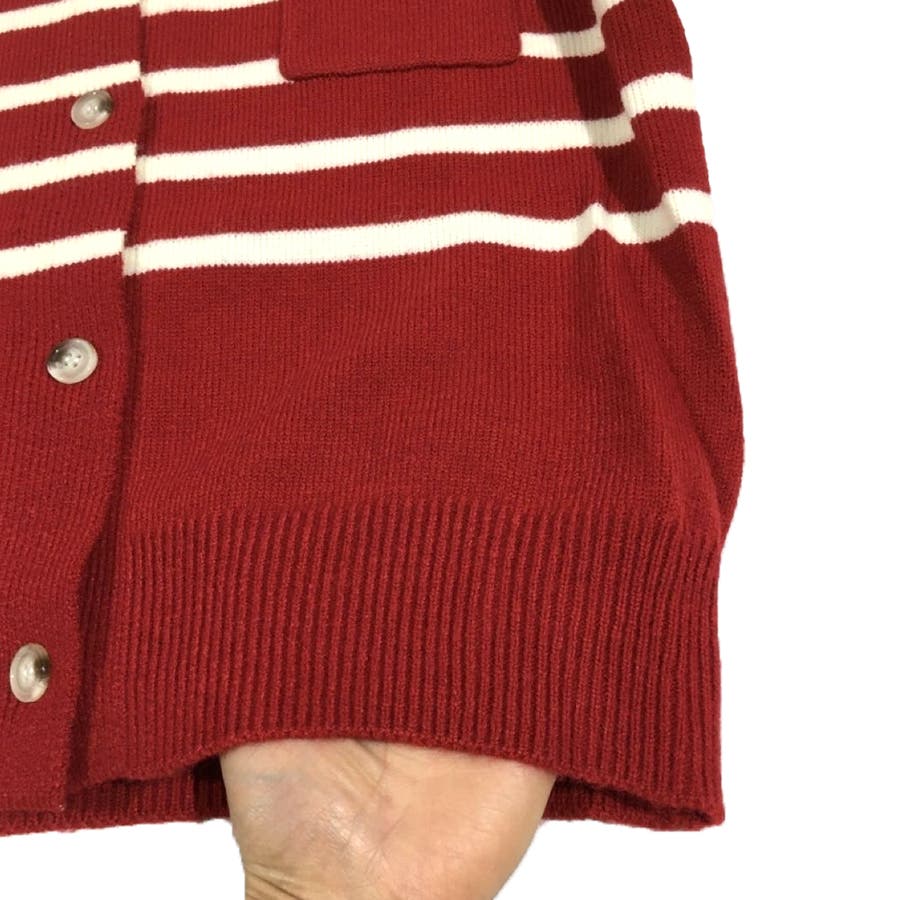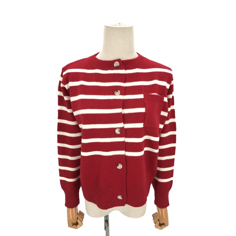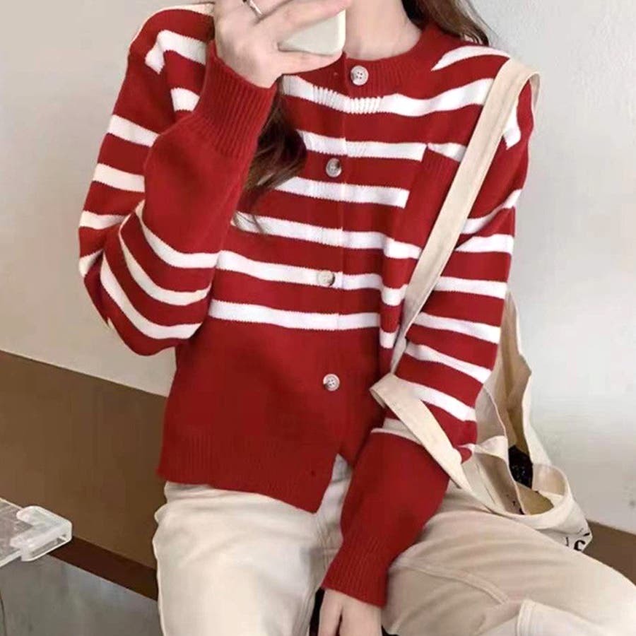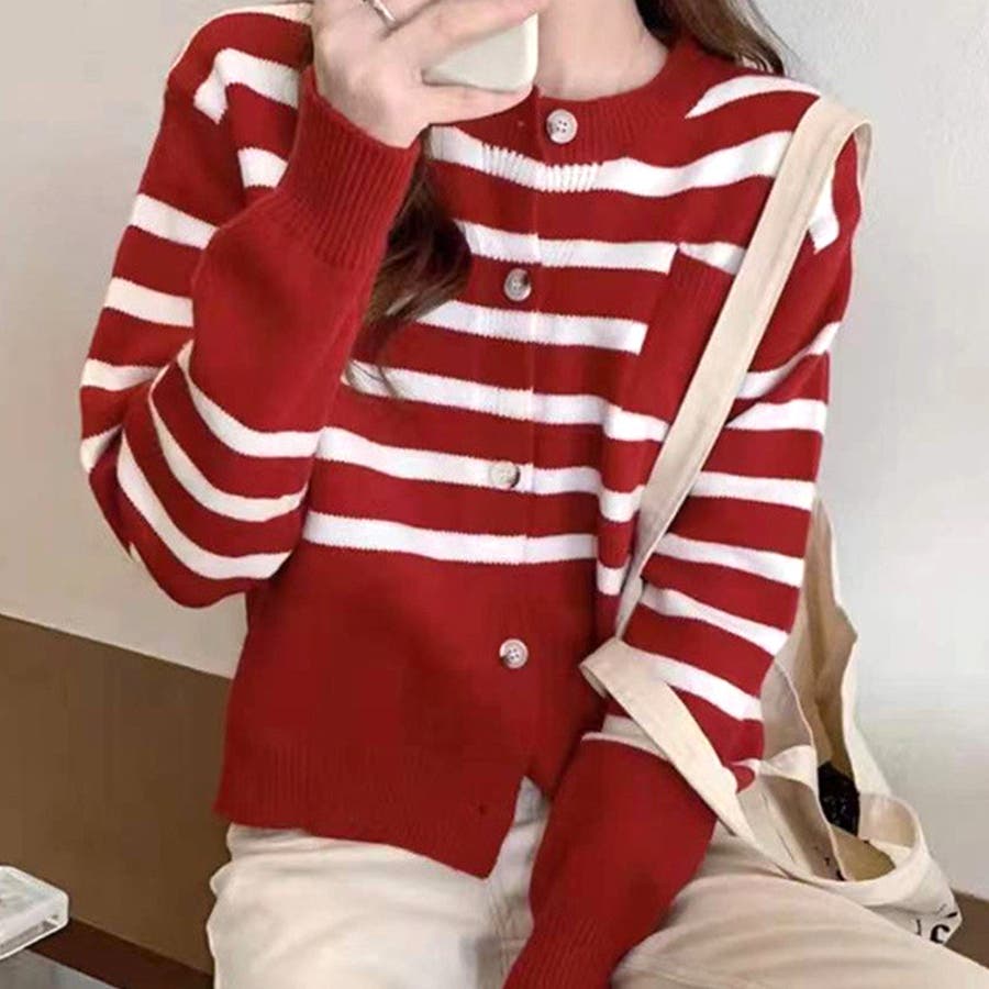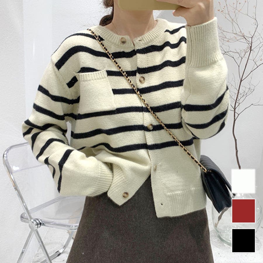 ノーカラーボーダーニットカーディガン レディース 10代
