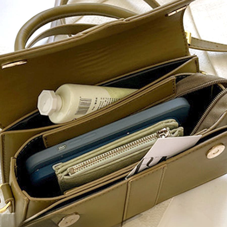 ・カジュアルでもきれいめでも合わせやすい、シンプルデザインだからコーデの邪魔をしないショルダーバッグです。