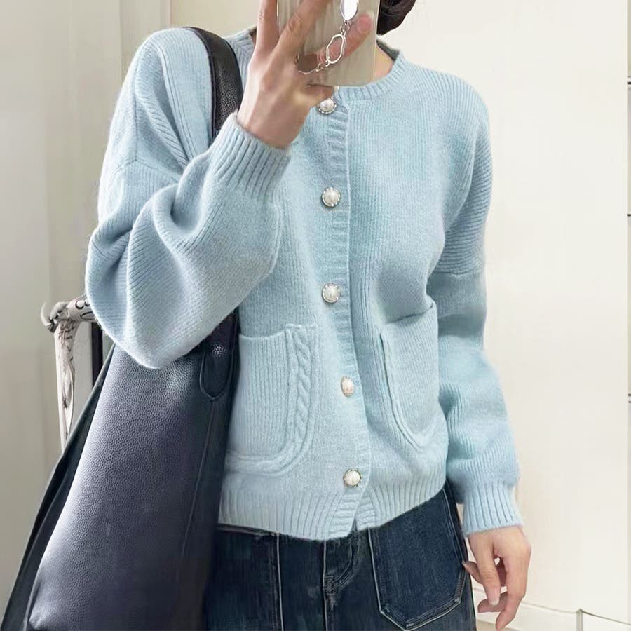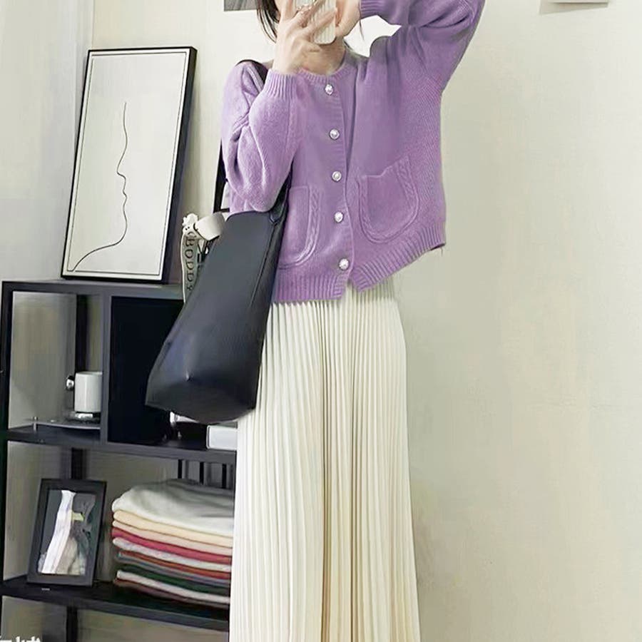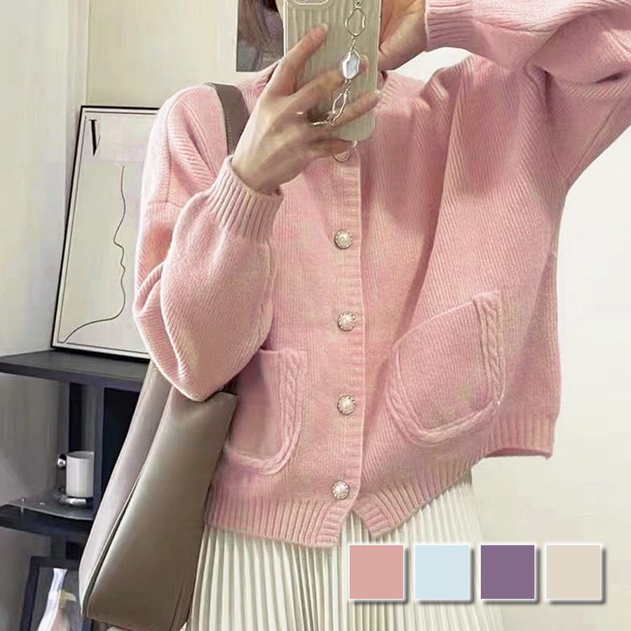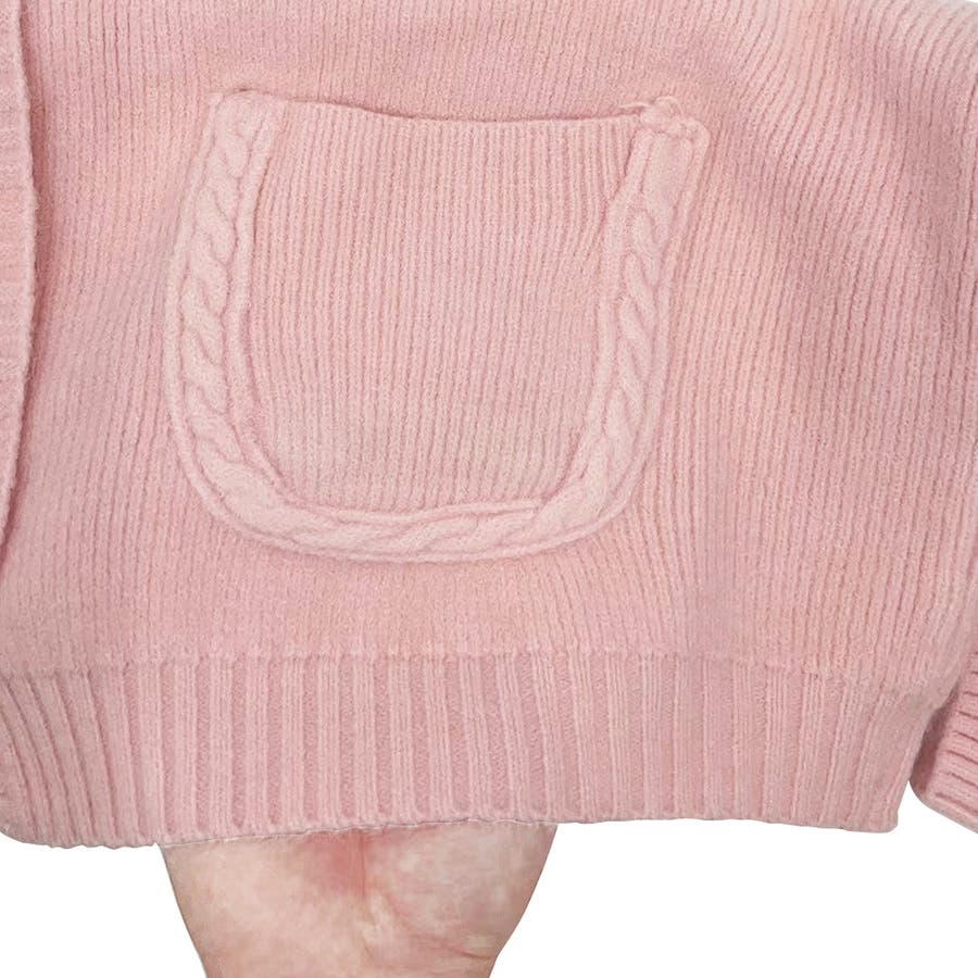 ・ケーブル編みされたポケットが可愛い。ガーリーな着こなしも楽しめる、コーデに取り入れやすいカーディガン。