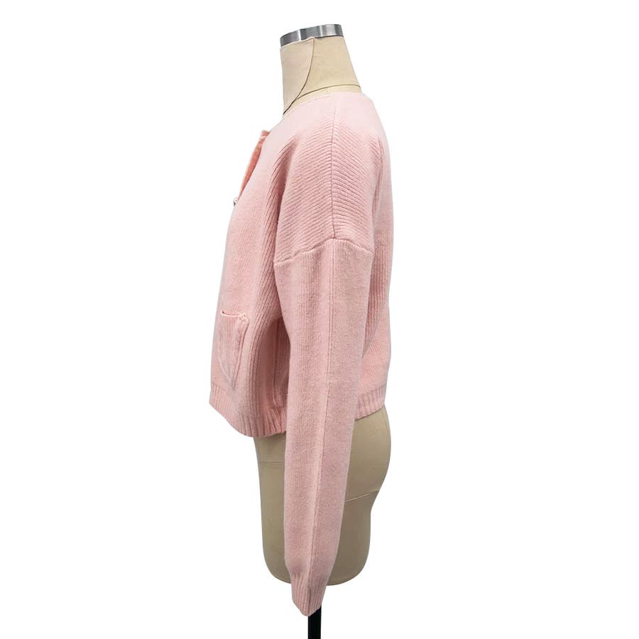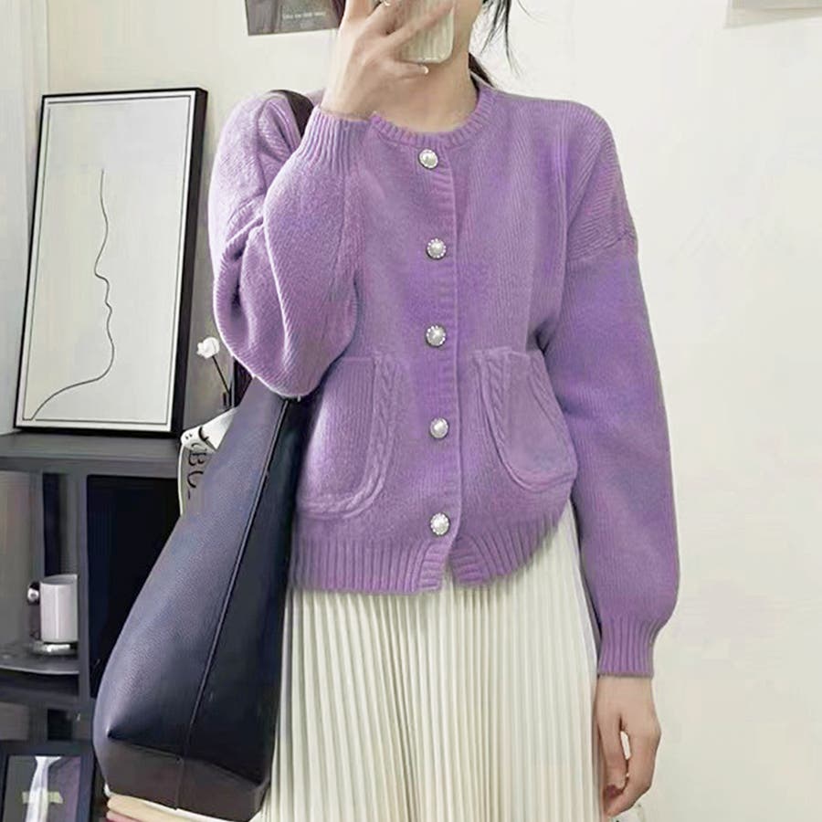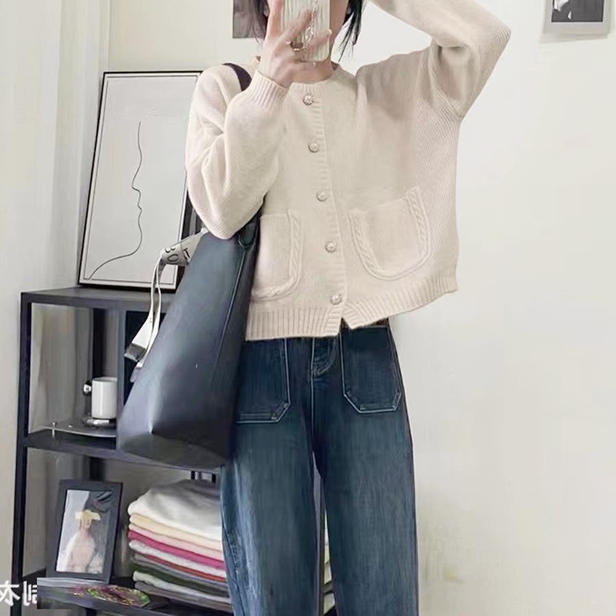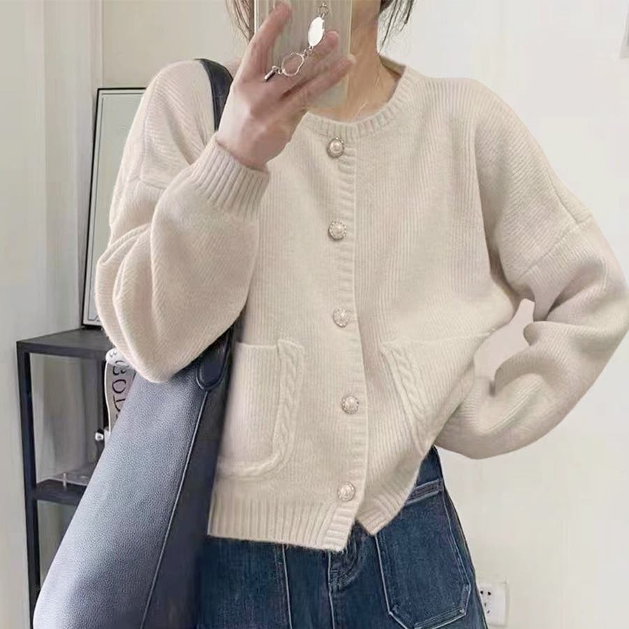 ・ケーブル編みされたポケットが可愛い。ガーリーな着こなしも楽しめる、コーデに取り入れやすいカーディガン。