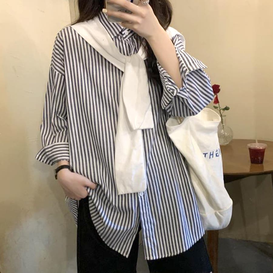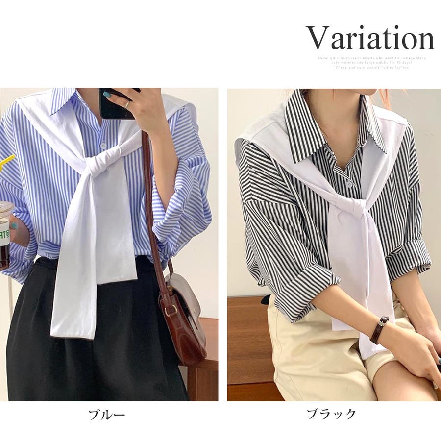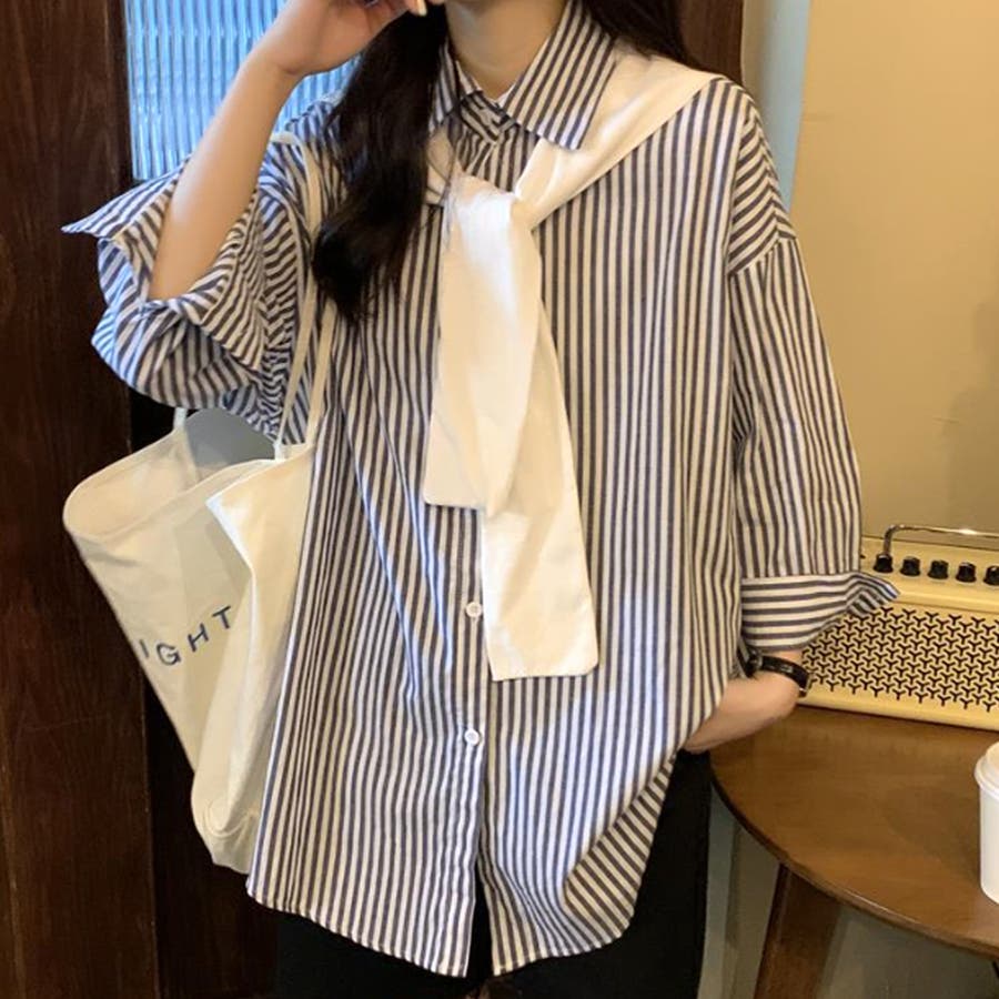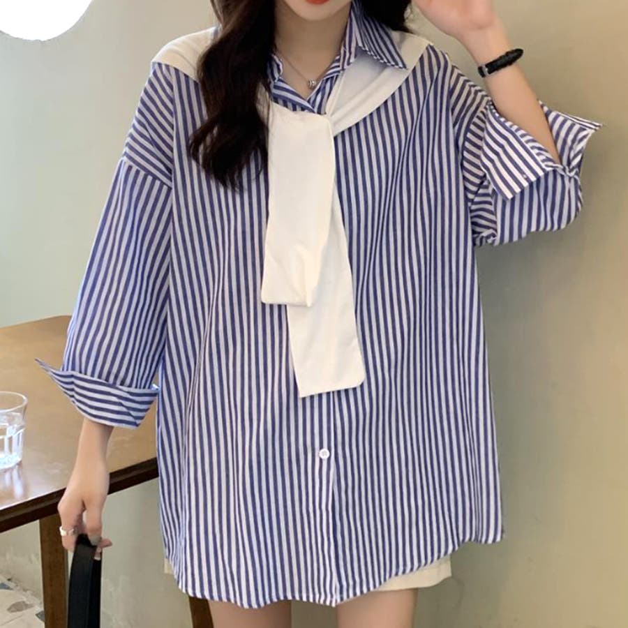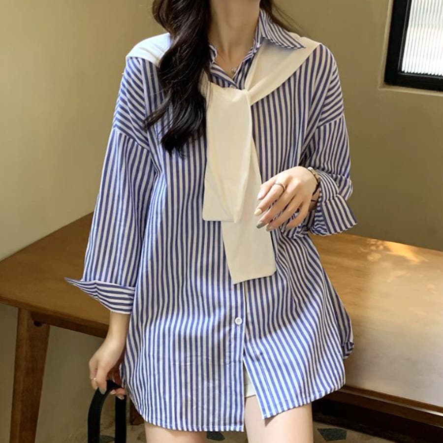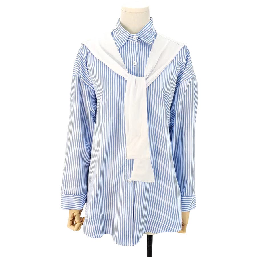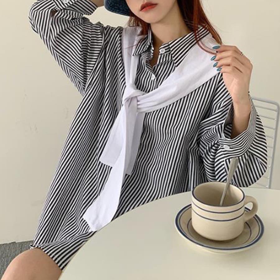 肩掛け付きストライプシャツ レディース 10代