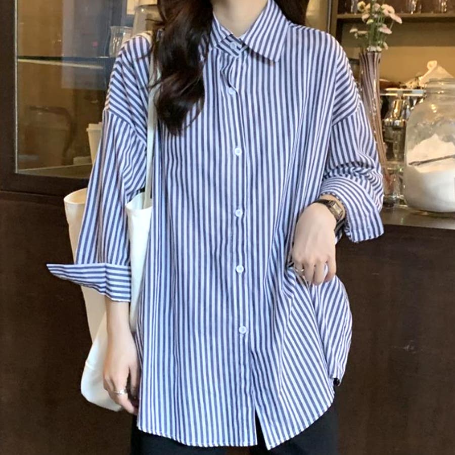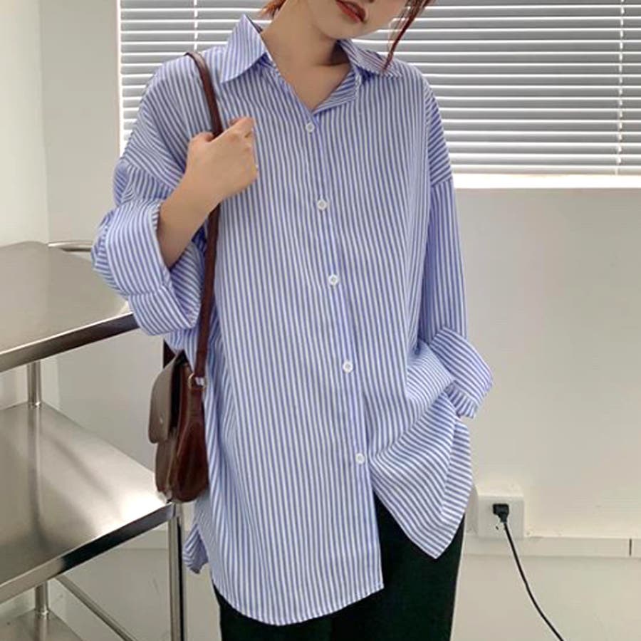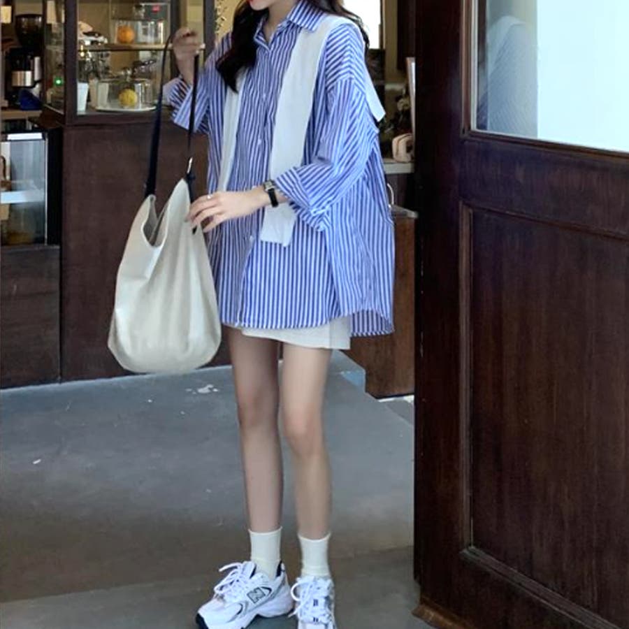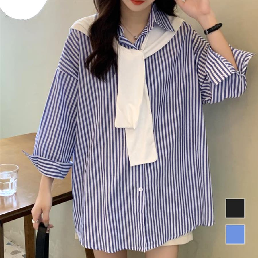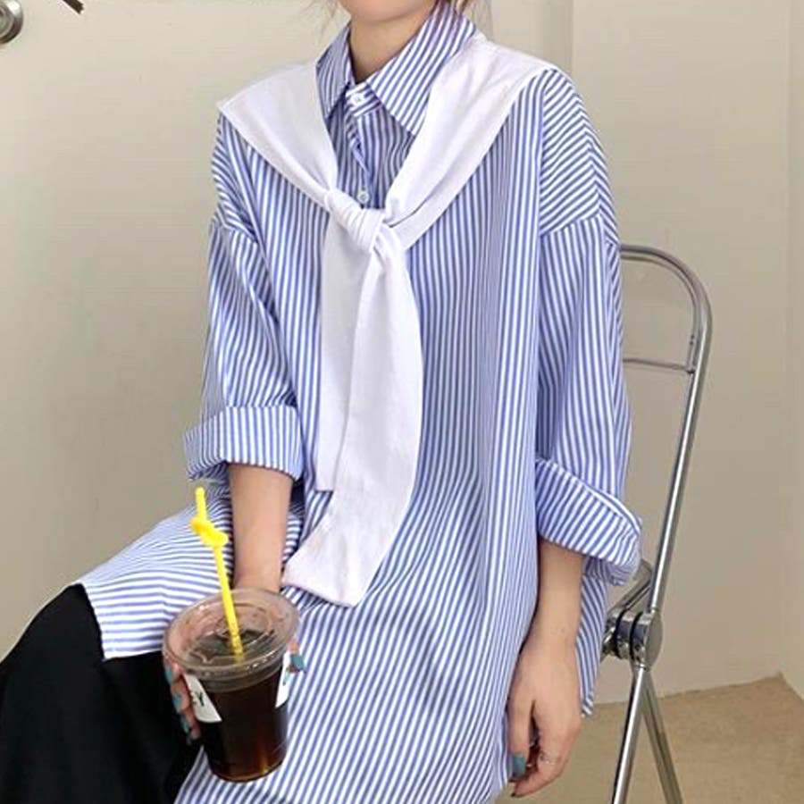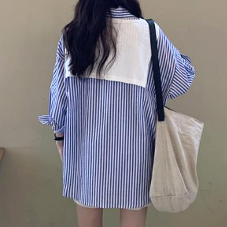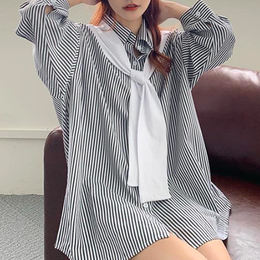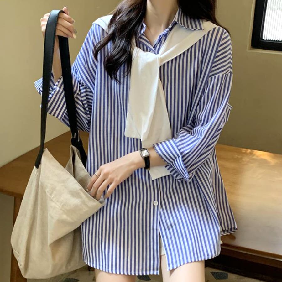 肩掛け付きストライプシャツ レディース 10代