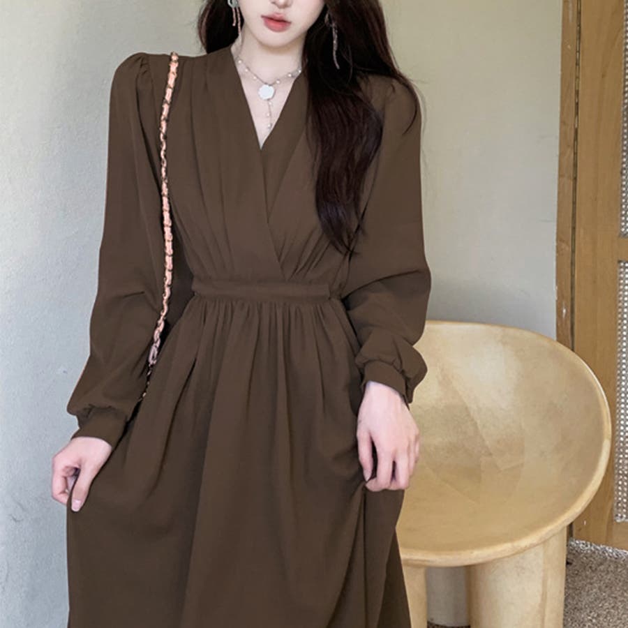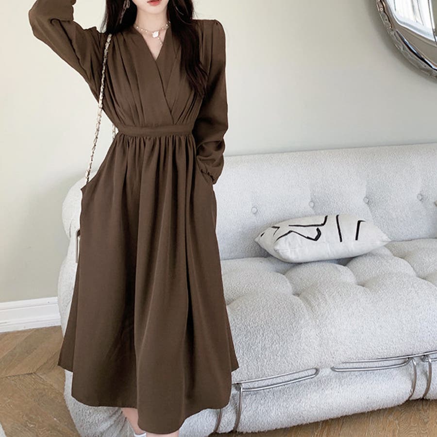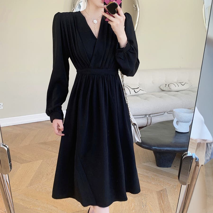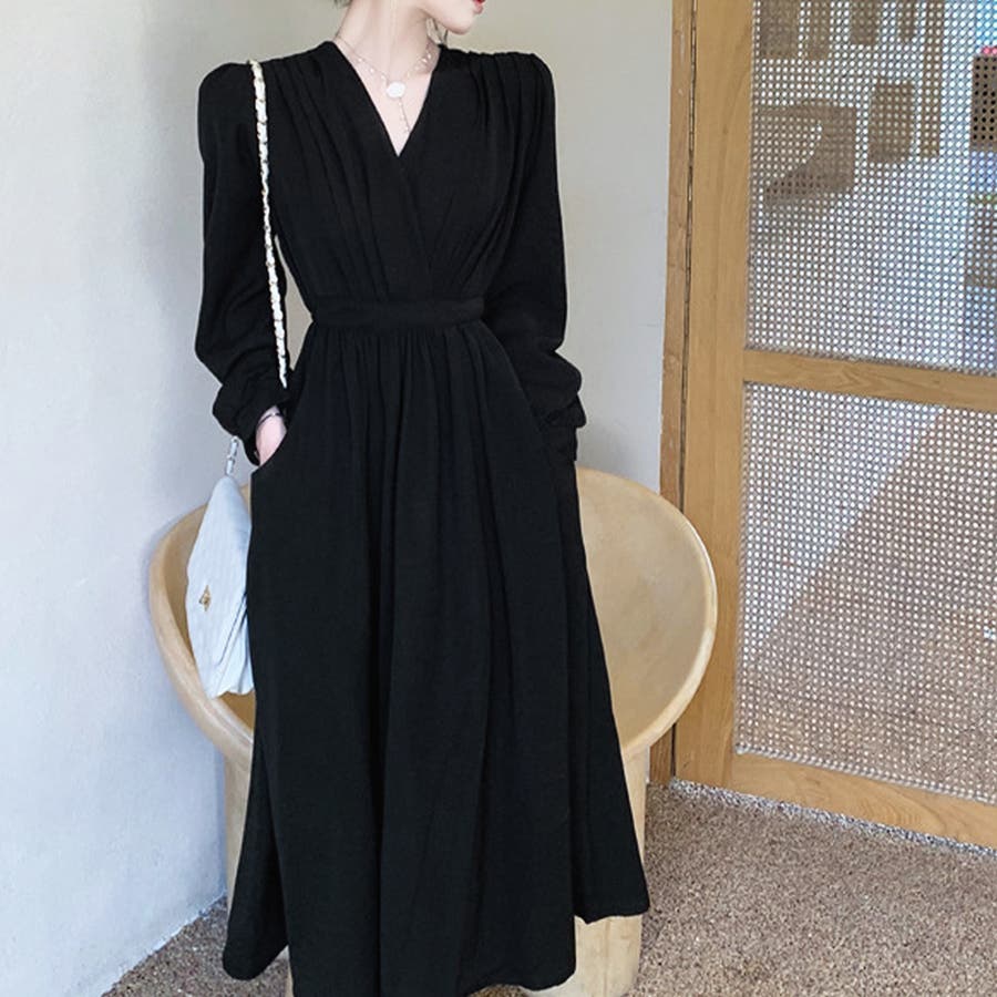 ・手持ちのアイテムと合わせやすい。ベルトやバッグ・帽子などの小物アイテムで楽しめるモノトーンカラーのワンピース。
