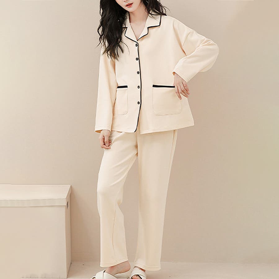 ・伸縮性のある生地感だからリラックスできて、お家でゆったり過ごすのに最適のルームウェアです。