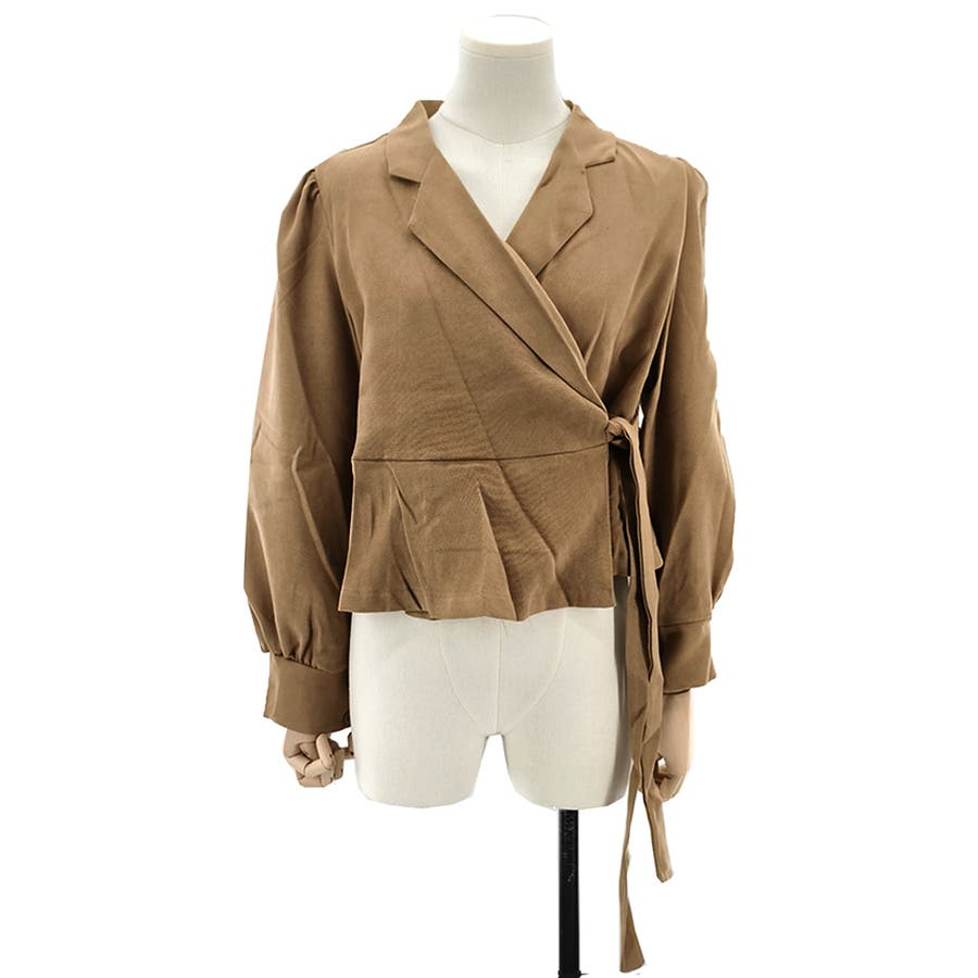 ・デコルテをきれいに見せてくれるカシュクールデザインが女性らしい♪合わせやすい落ち着いたカラーも◎。