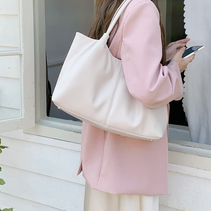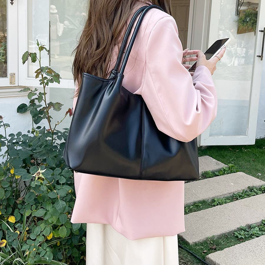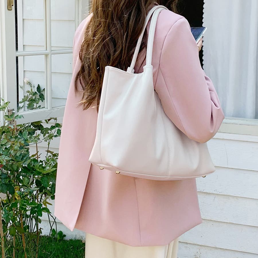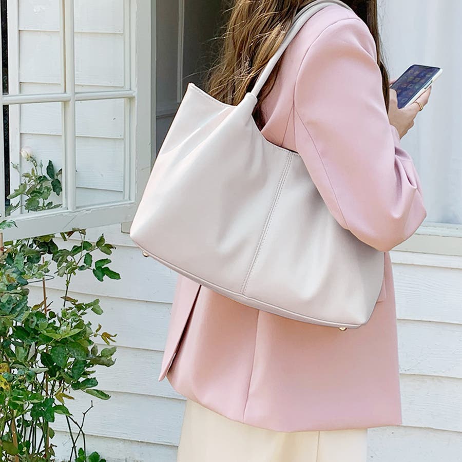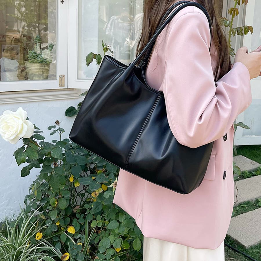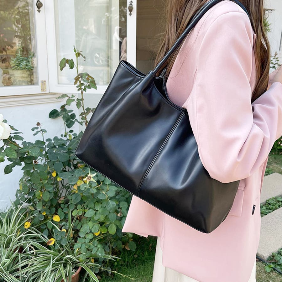 ・大容量のビッグトートバッグ。使い勝手のよいサイズ感で幅広いシーンで大活躍!シンプルなデザインで飽きが来ない◎