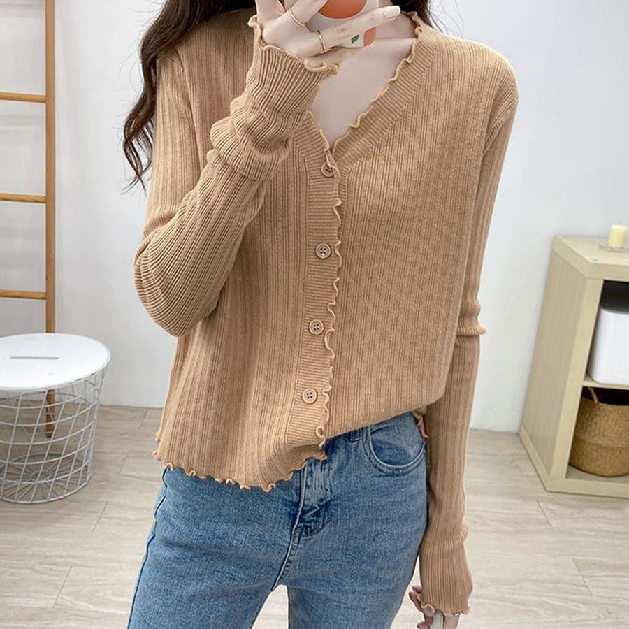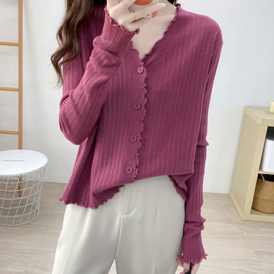 ・メロウ加工が可愛く、いろんなコーデに合わせやすいニットカーディガン。