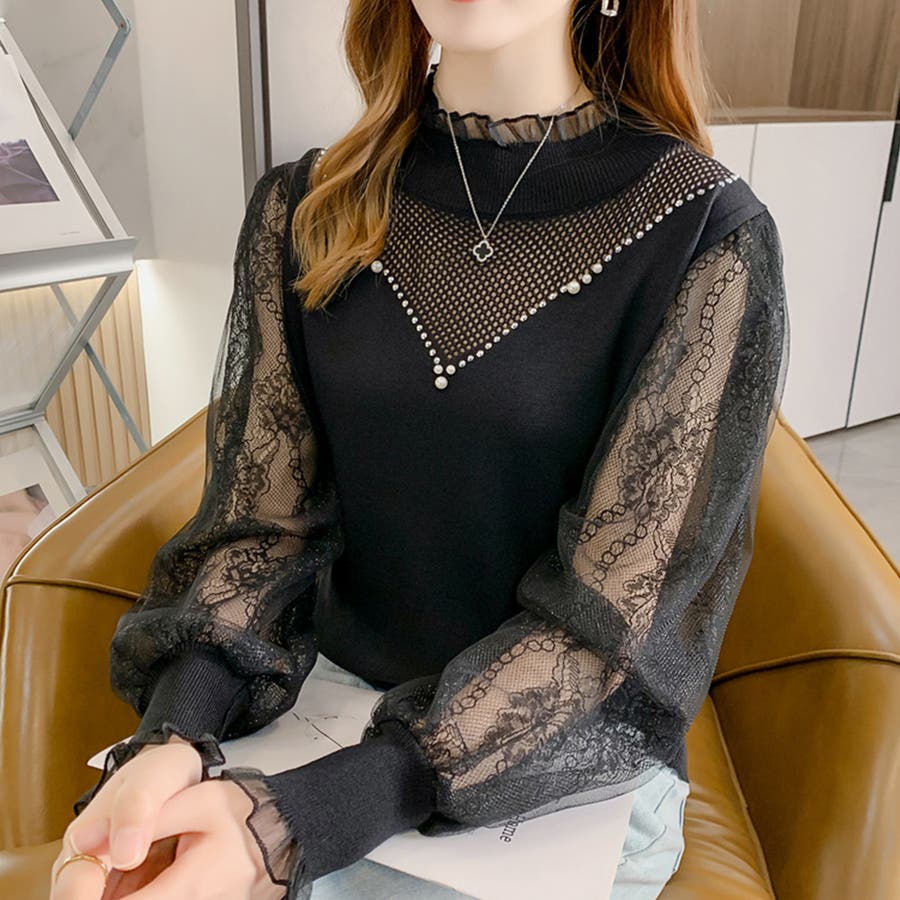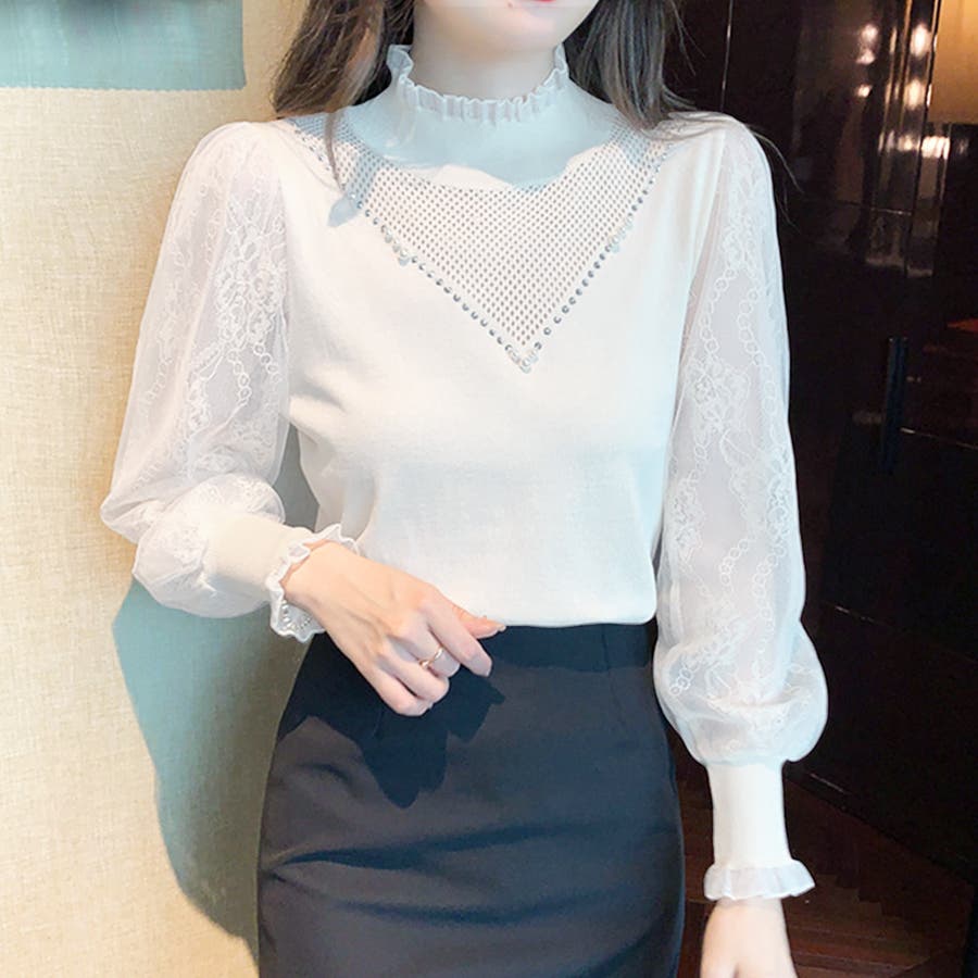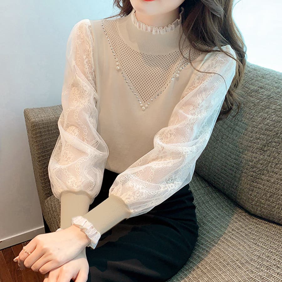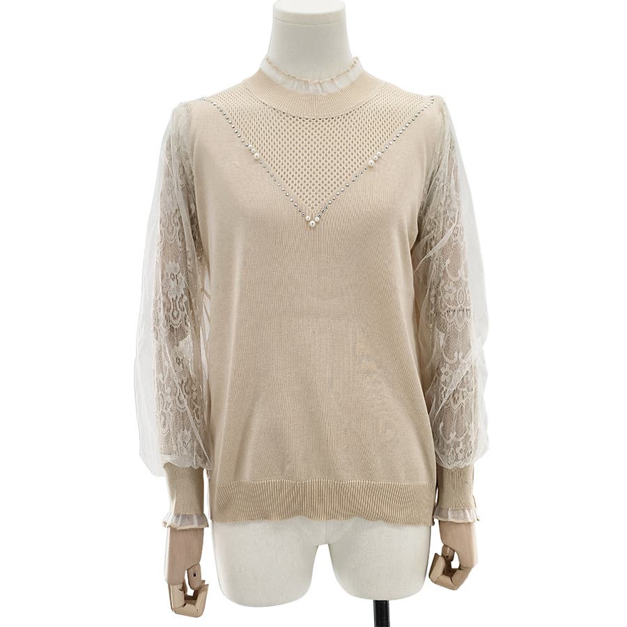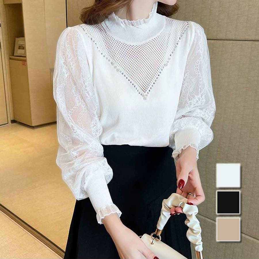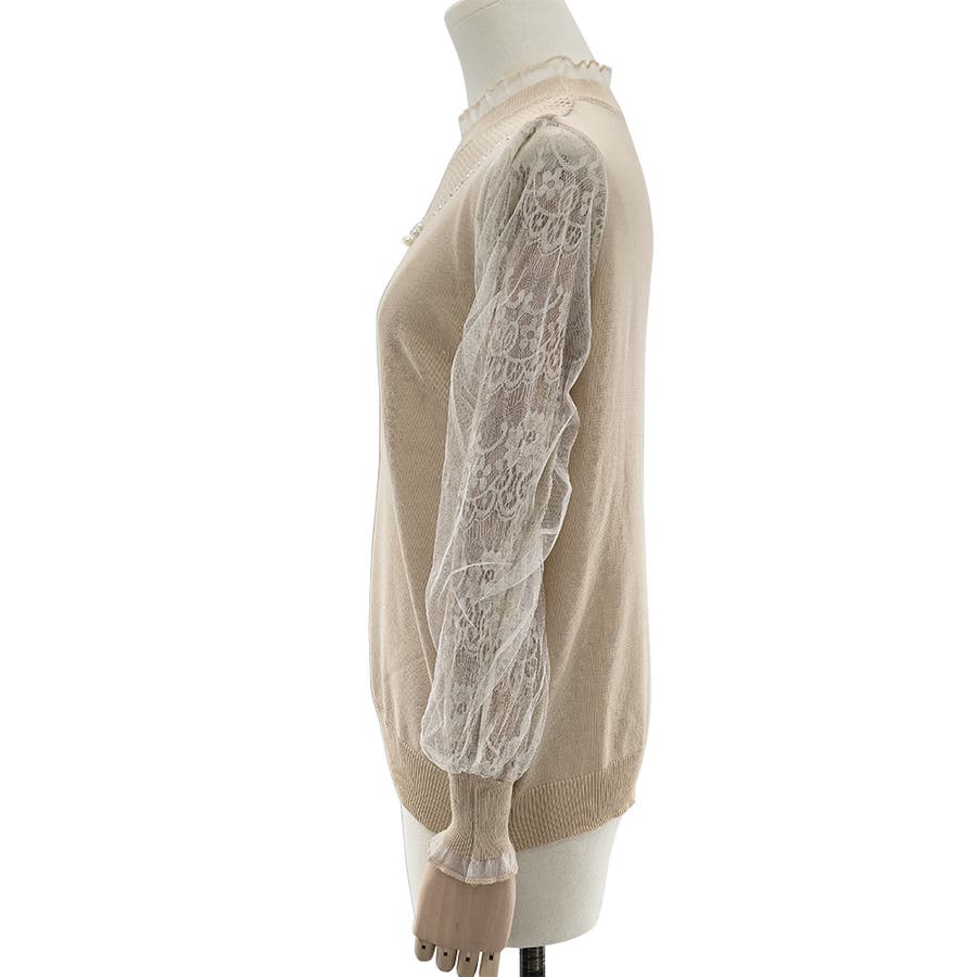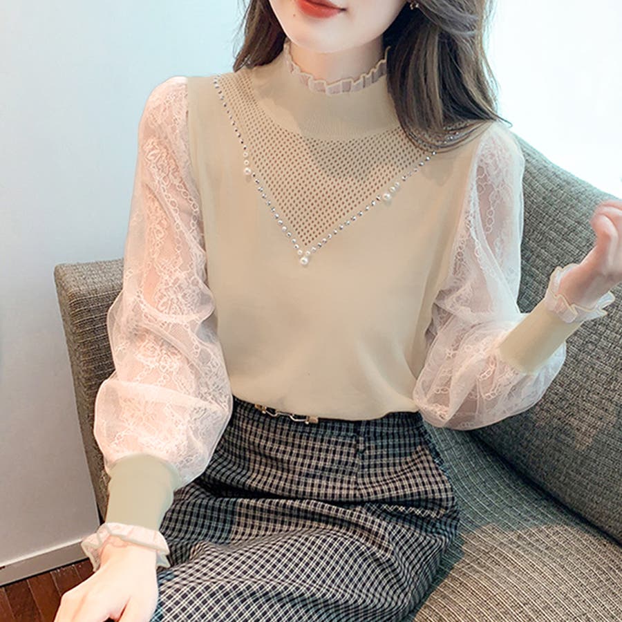 ・袖のレースが上品で可愛い。フェミニンな雰囲気が魅力的なブラウス。そのままシンプルに着こなしも◎レイヤーしても◎。