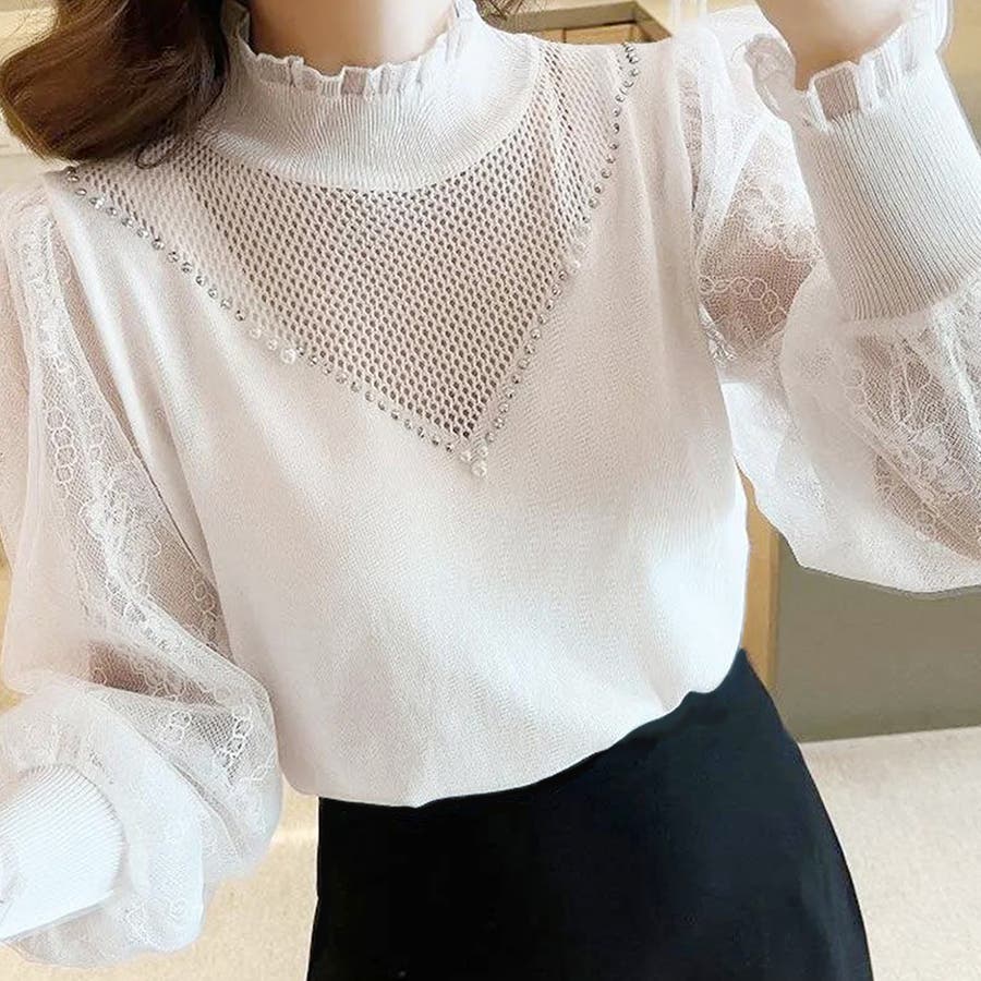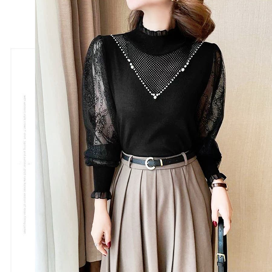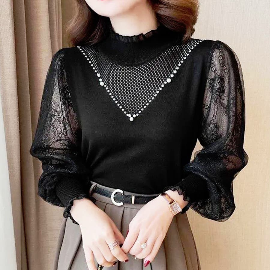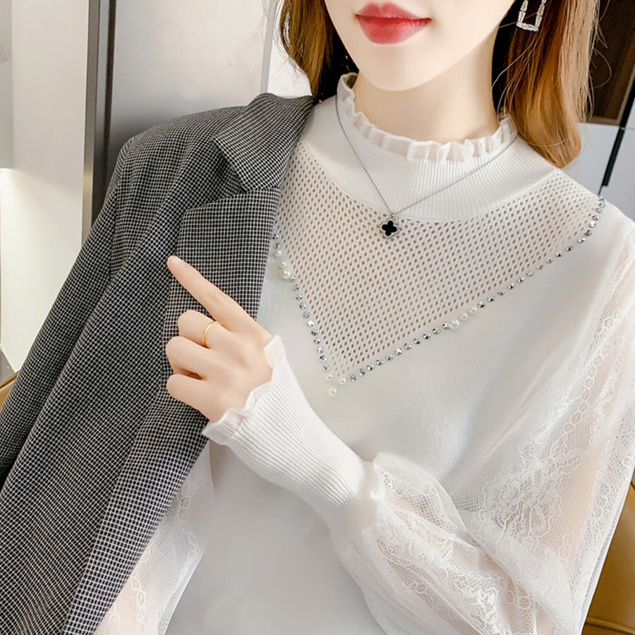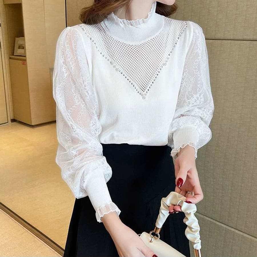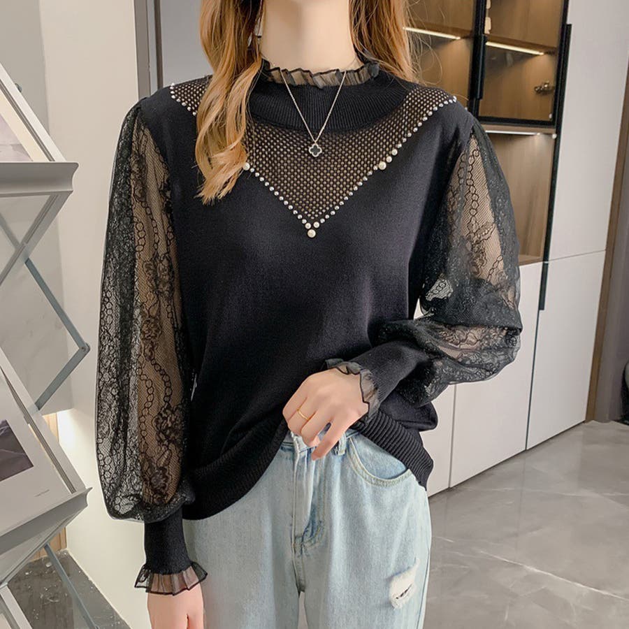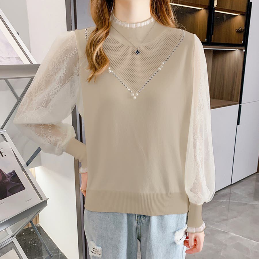 ・袖のレースが上品で可愛い。フェミニンな雰囲気が魅力的なブラウス。そのままシンプルに着こなしも◎レイヤーしても◎。