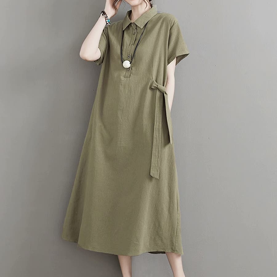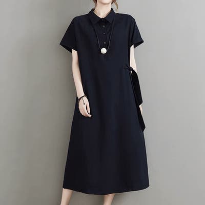 ・夏に着たくなるポロシャツデザインがおしゃれなサイドリボンシャツワンピース。