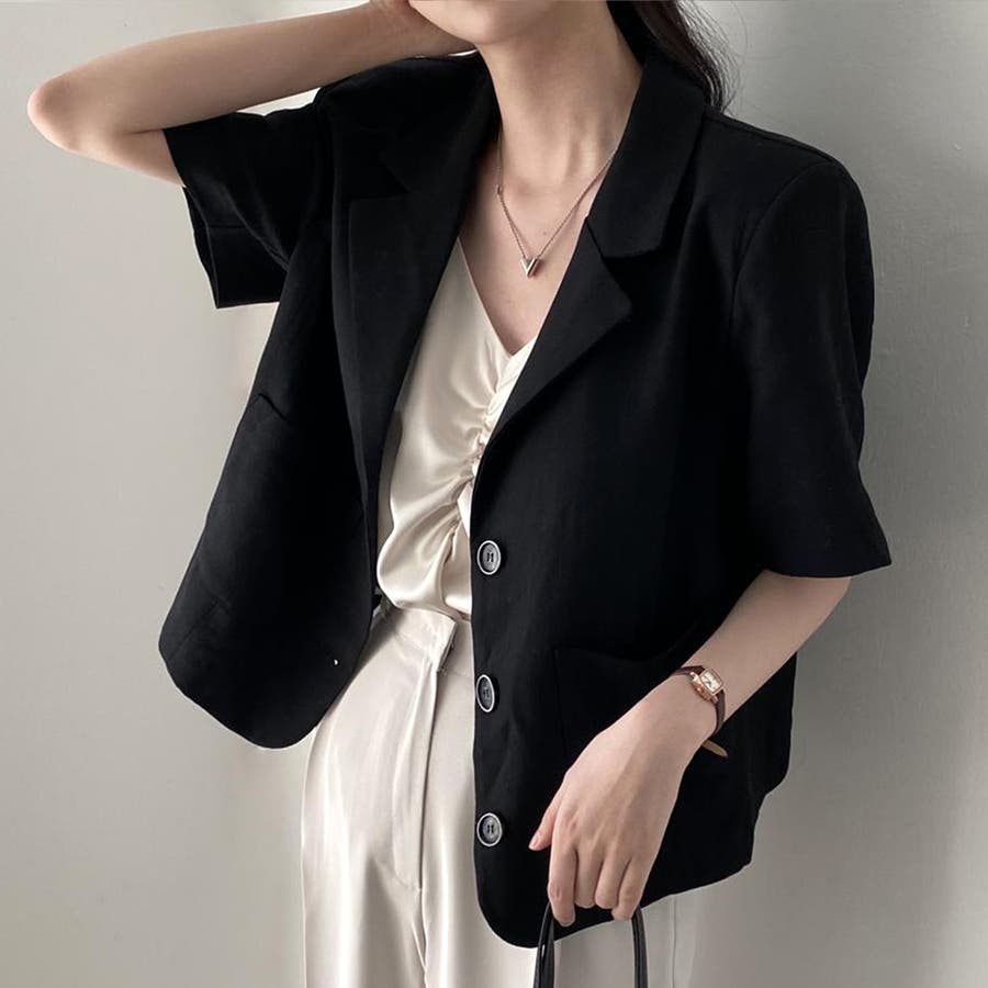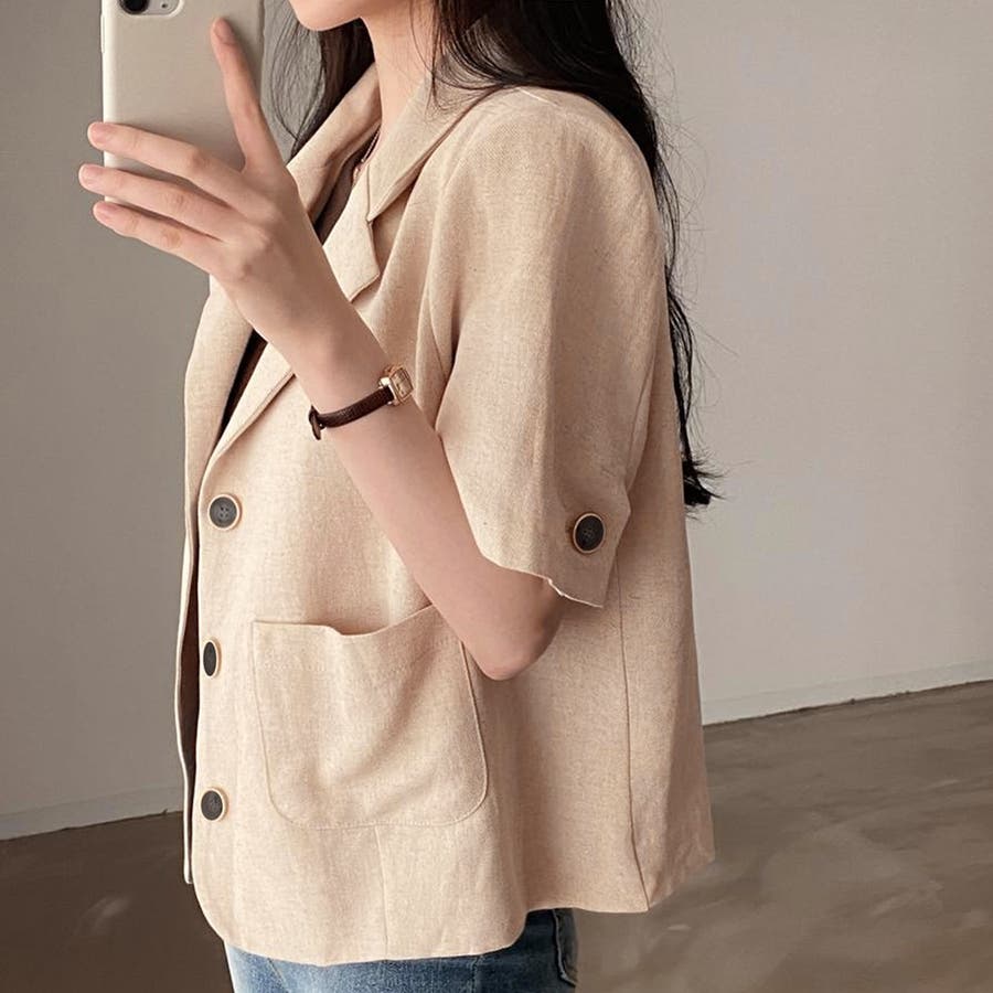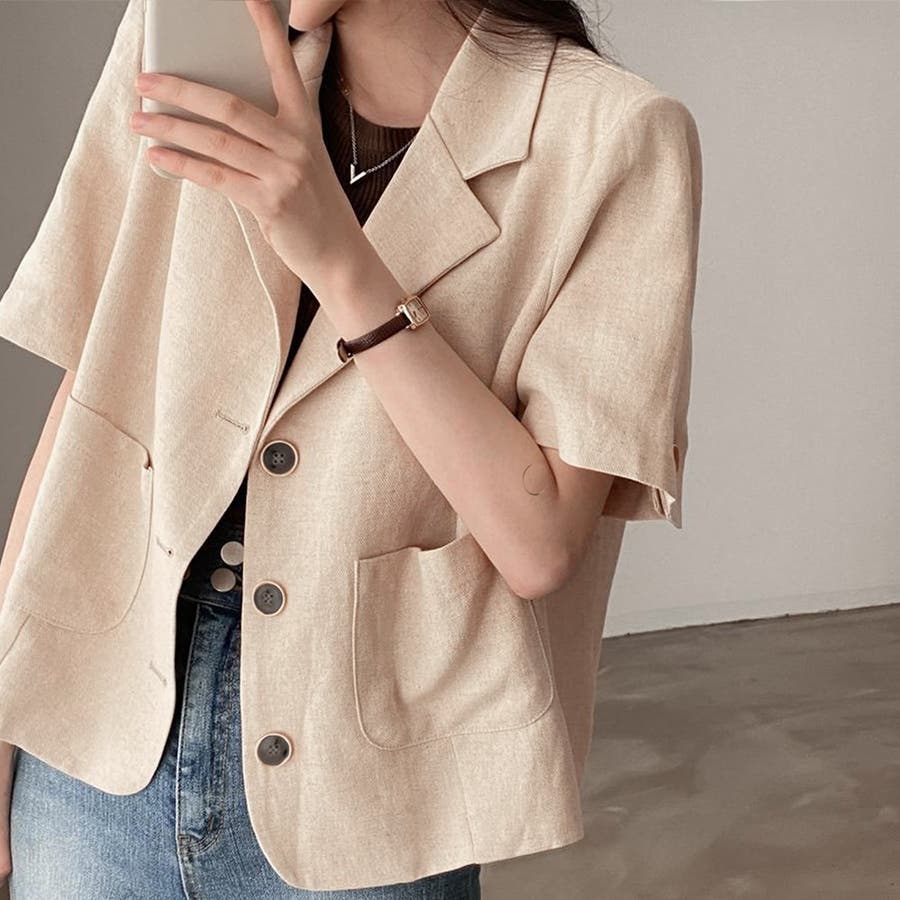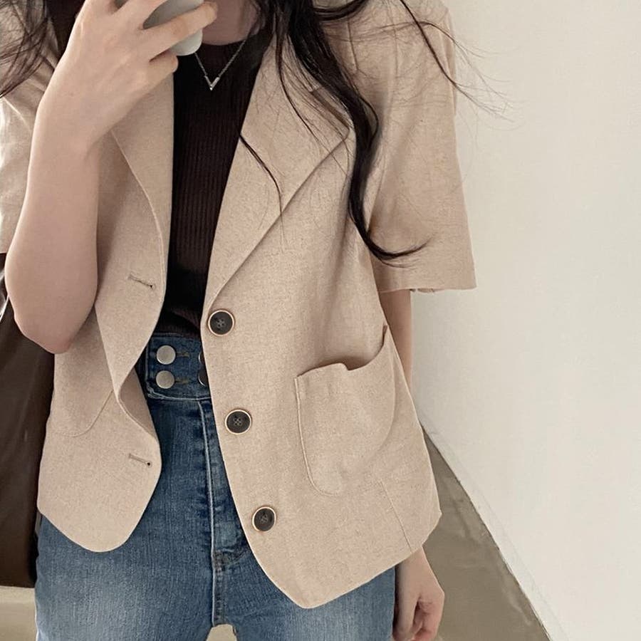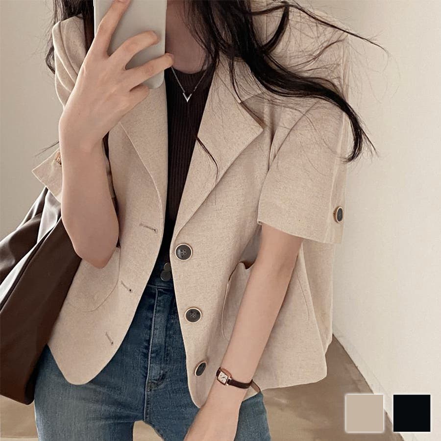 ・少し大きめのボタンデザインが可愛い♪暑い季節でもおしゃれを楽しめるので、一着は持っていて損はなし!