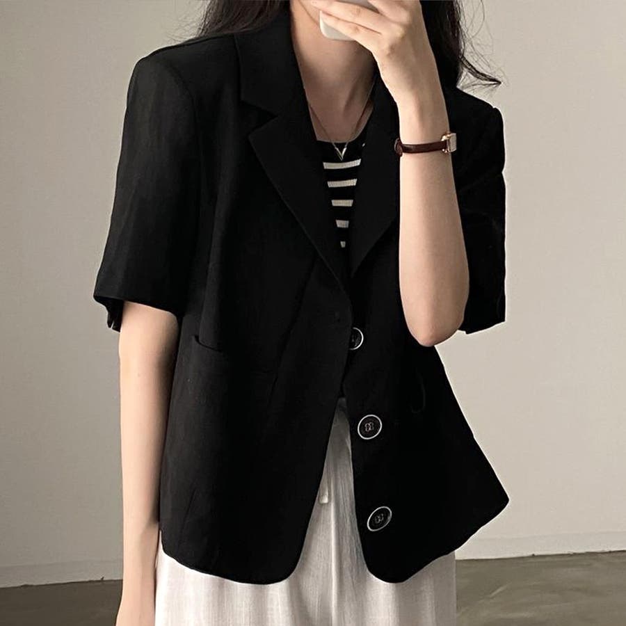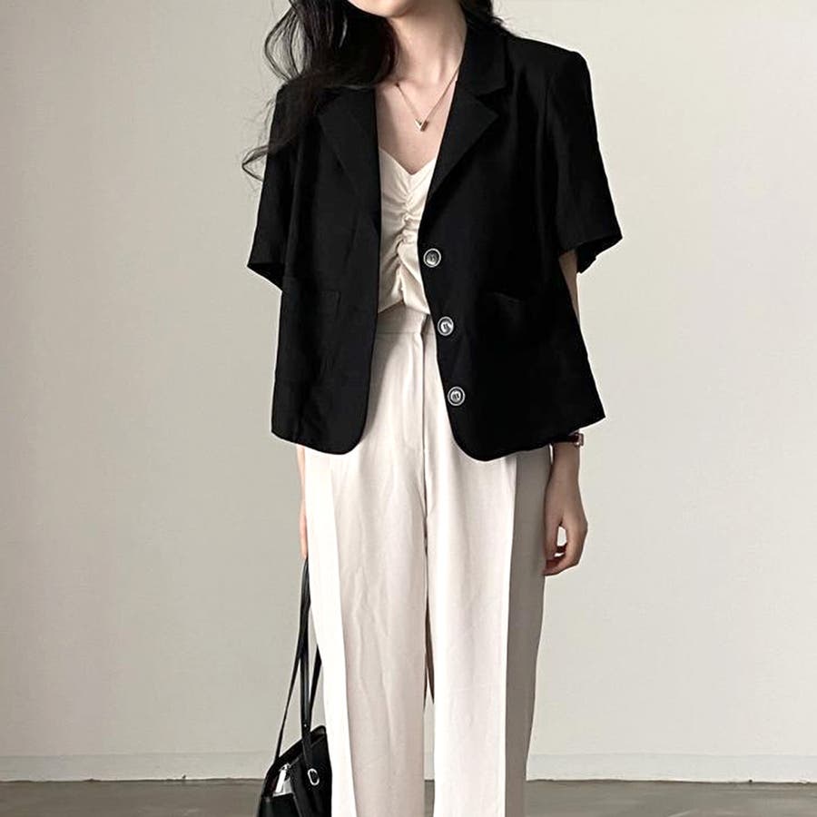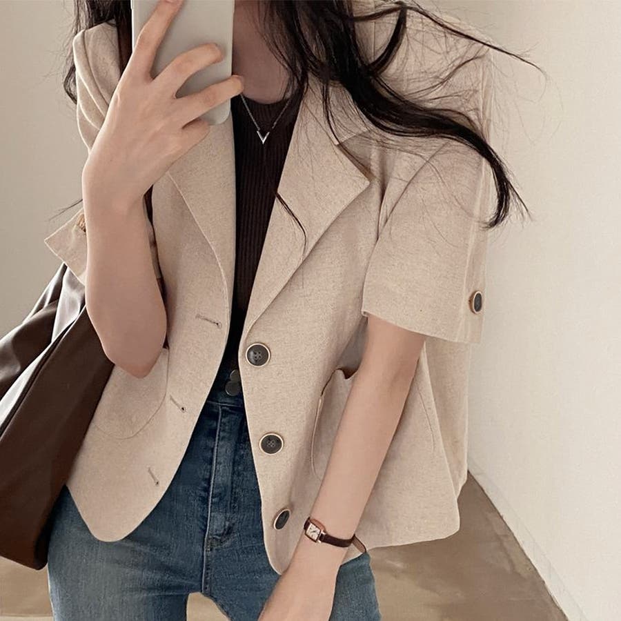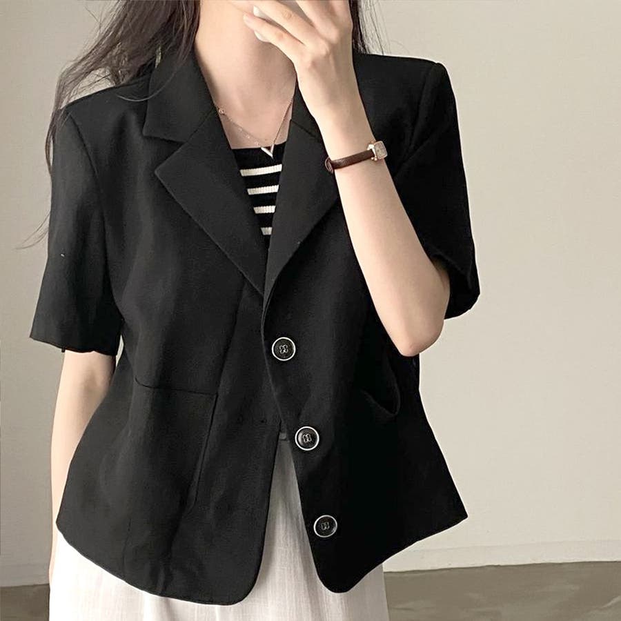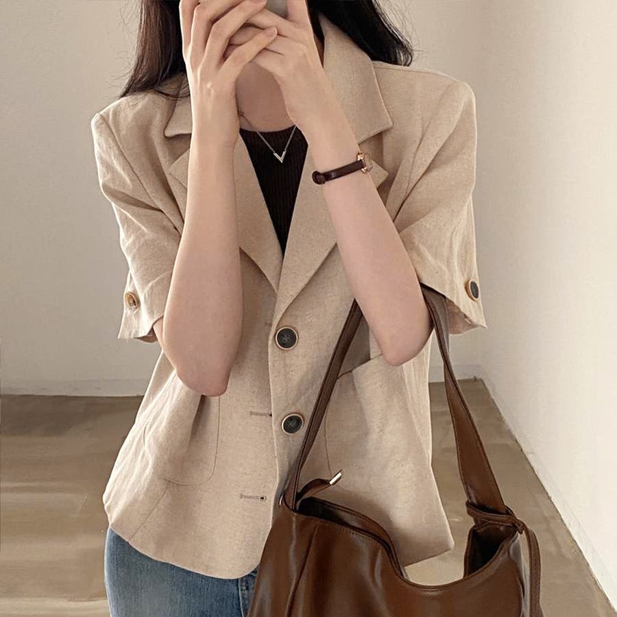 ・少し大きめのボタンデザインが可愛い♪暑い季節でもおしゃれを楽しめるので、一着は持っていて損はなし!