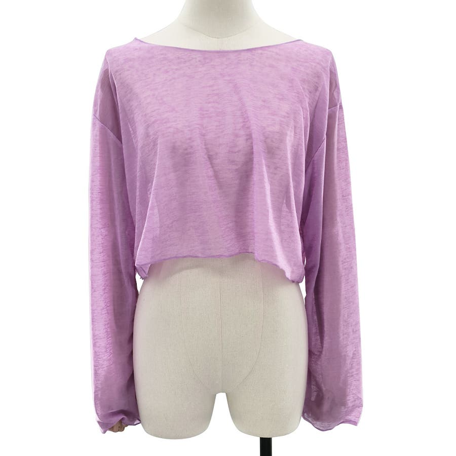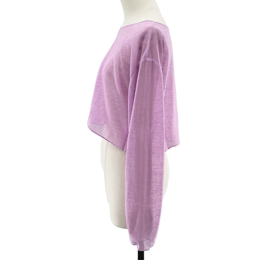 ・ラメ入りシアーが可愛い。風に揺れる軽い着心地で、表情が変わる。明るい印象のトップス。