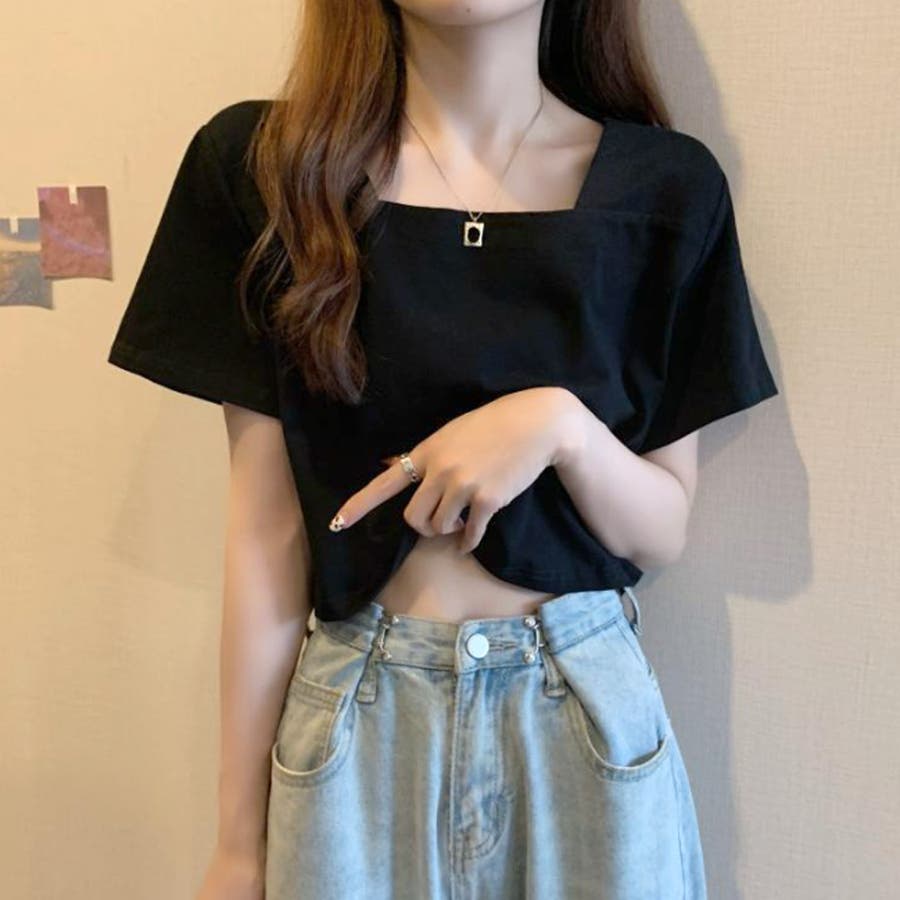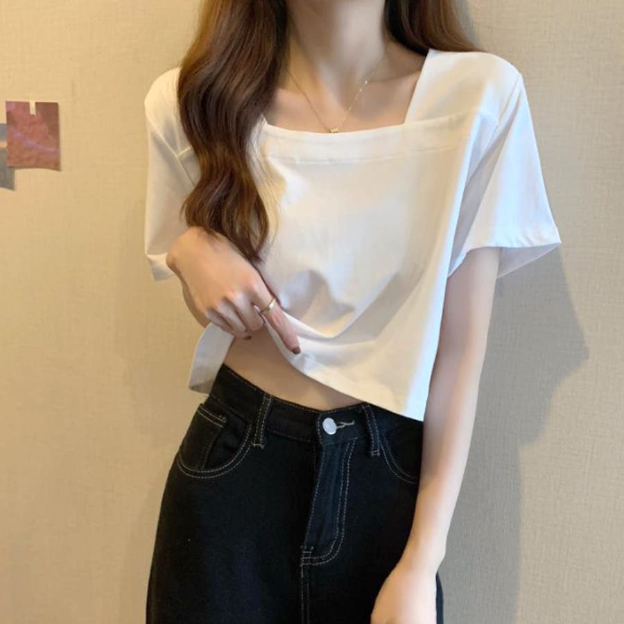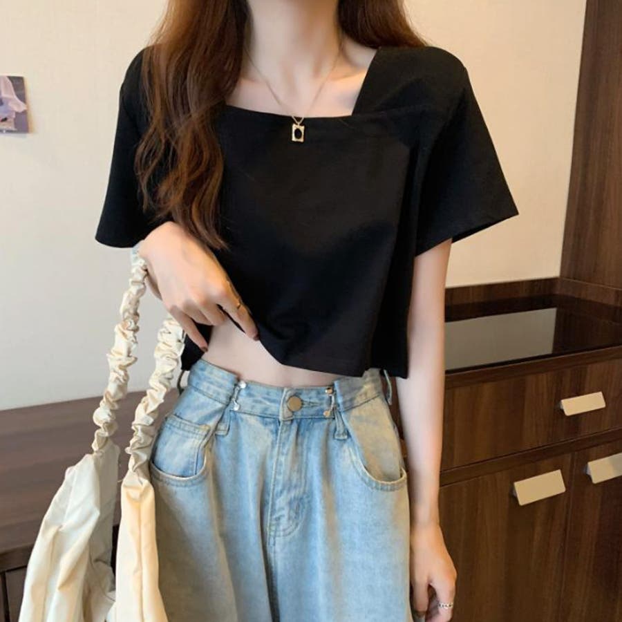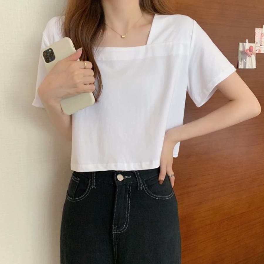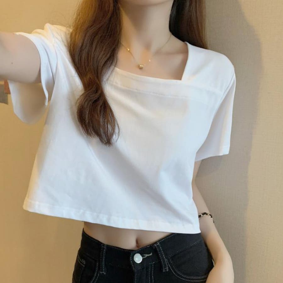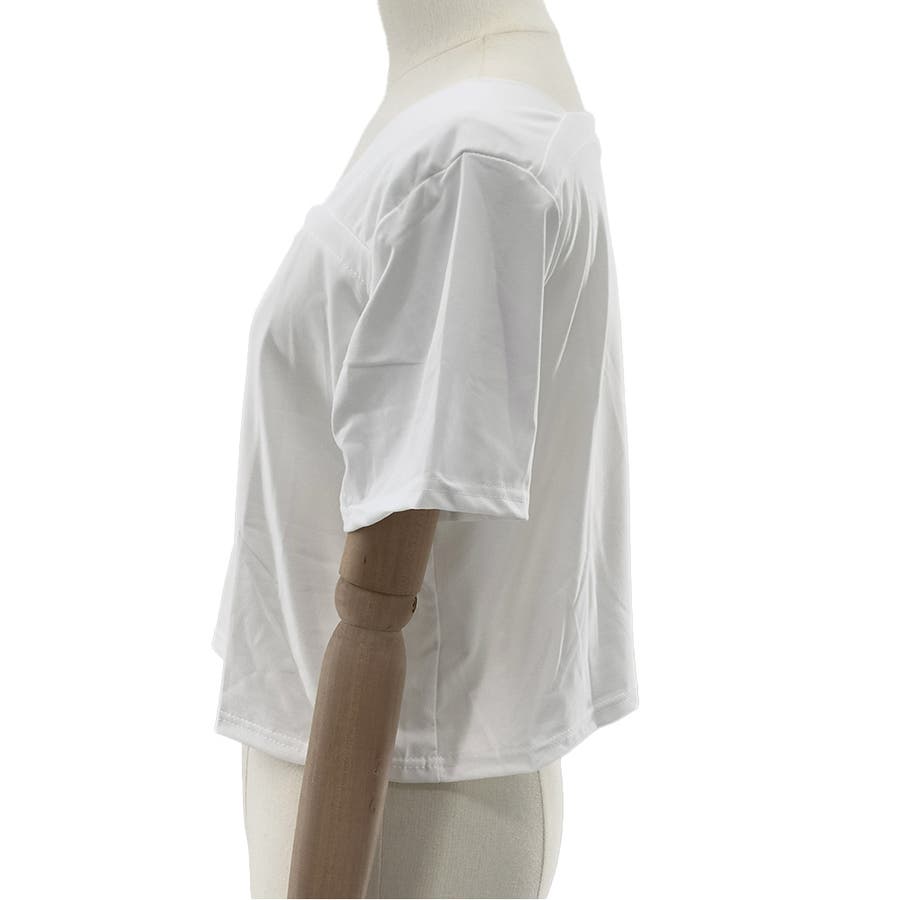 ・短めの丈感でヘルシーに肌見せが楽しめるトップスアイテム。脚長効果もばっちりです♪