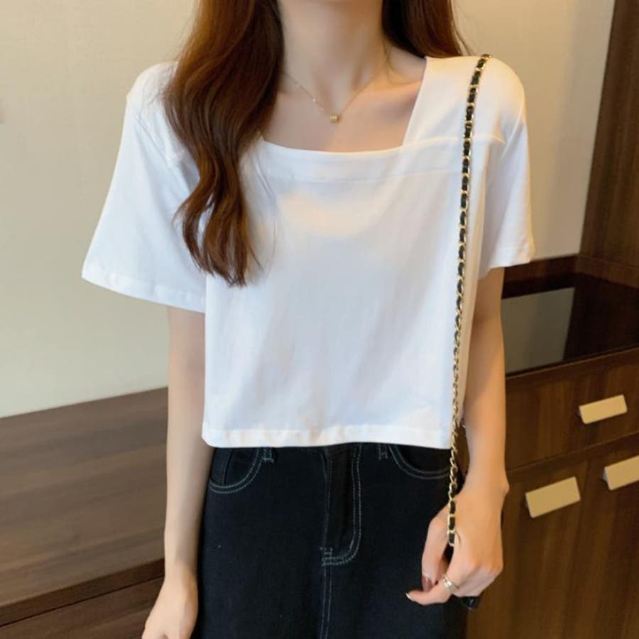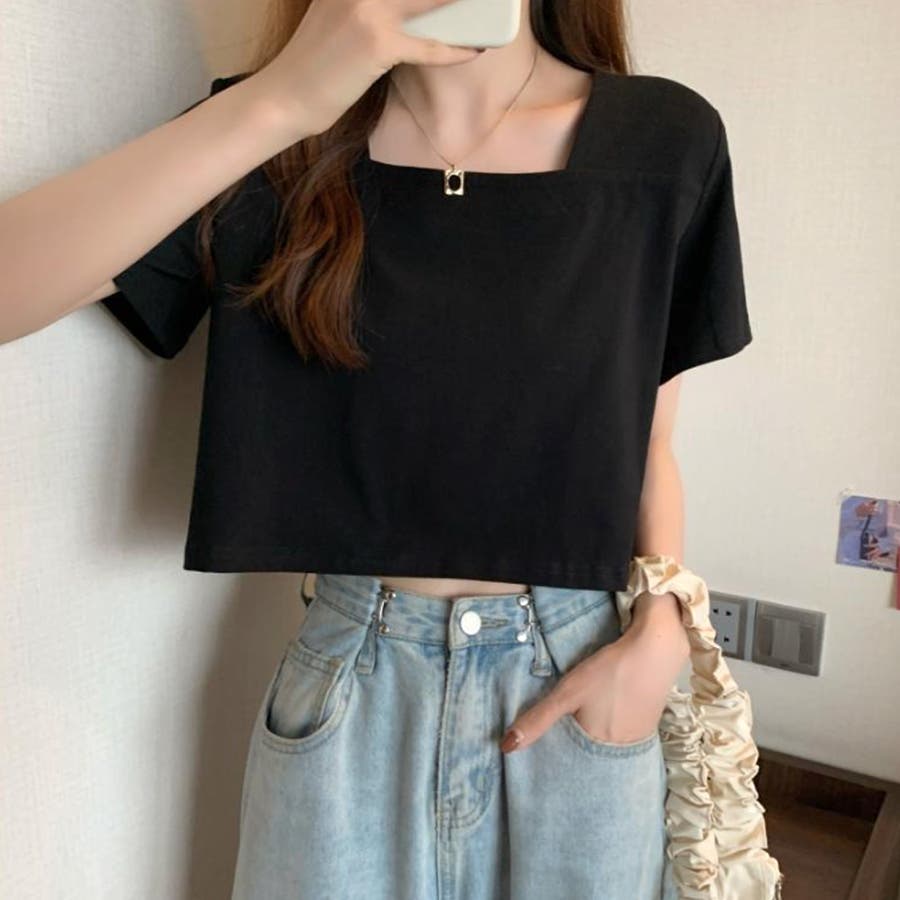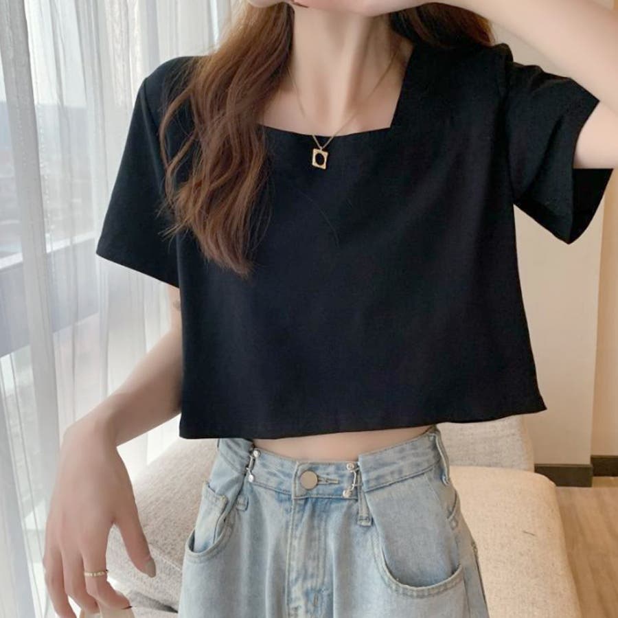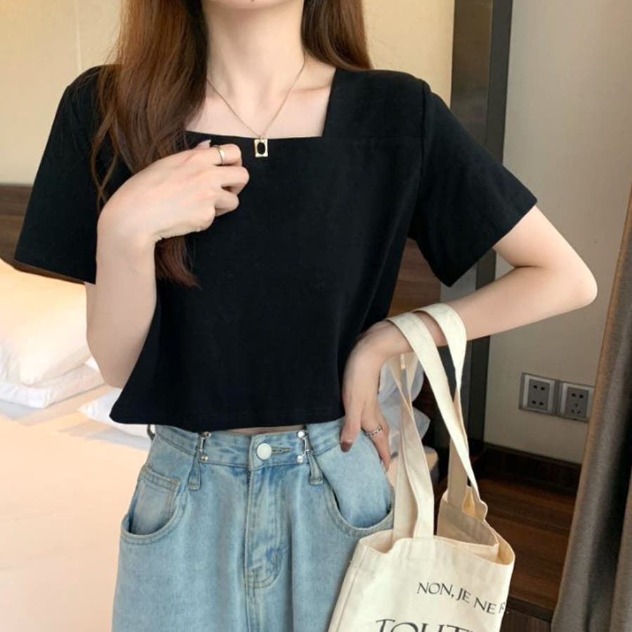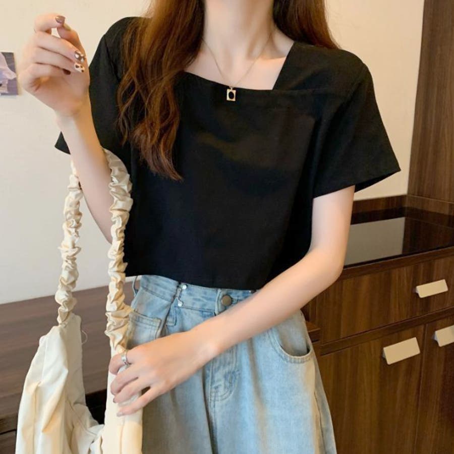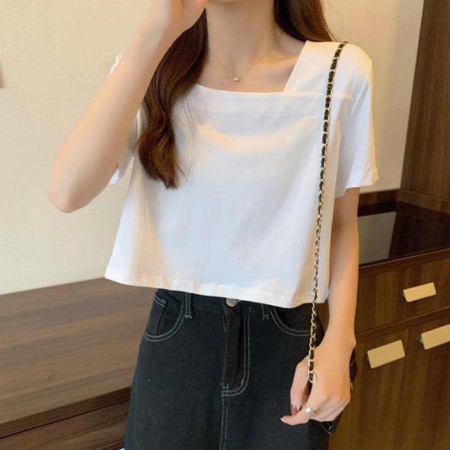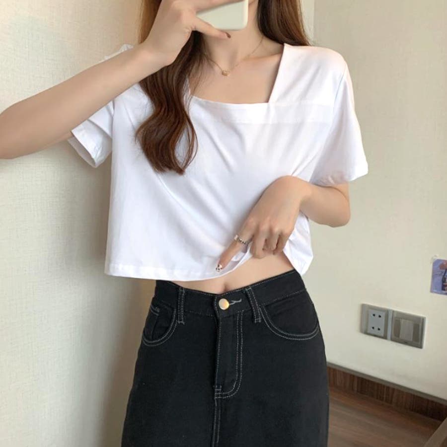 ・短めの丈感でヘルシーに肌見せが楽しめるトップスアイテム。脚長効果もばっちりです♪