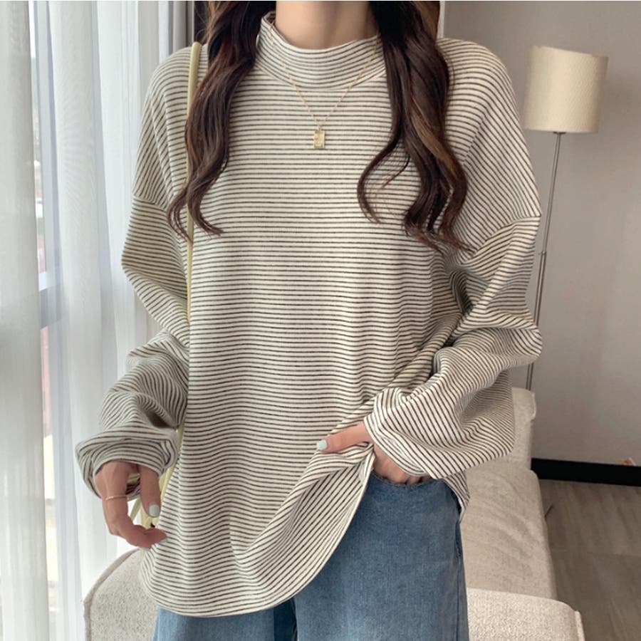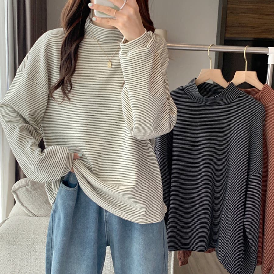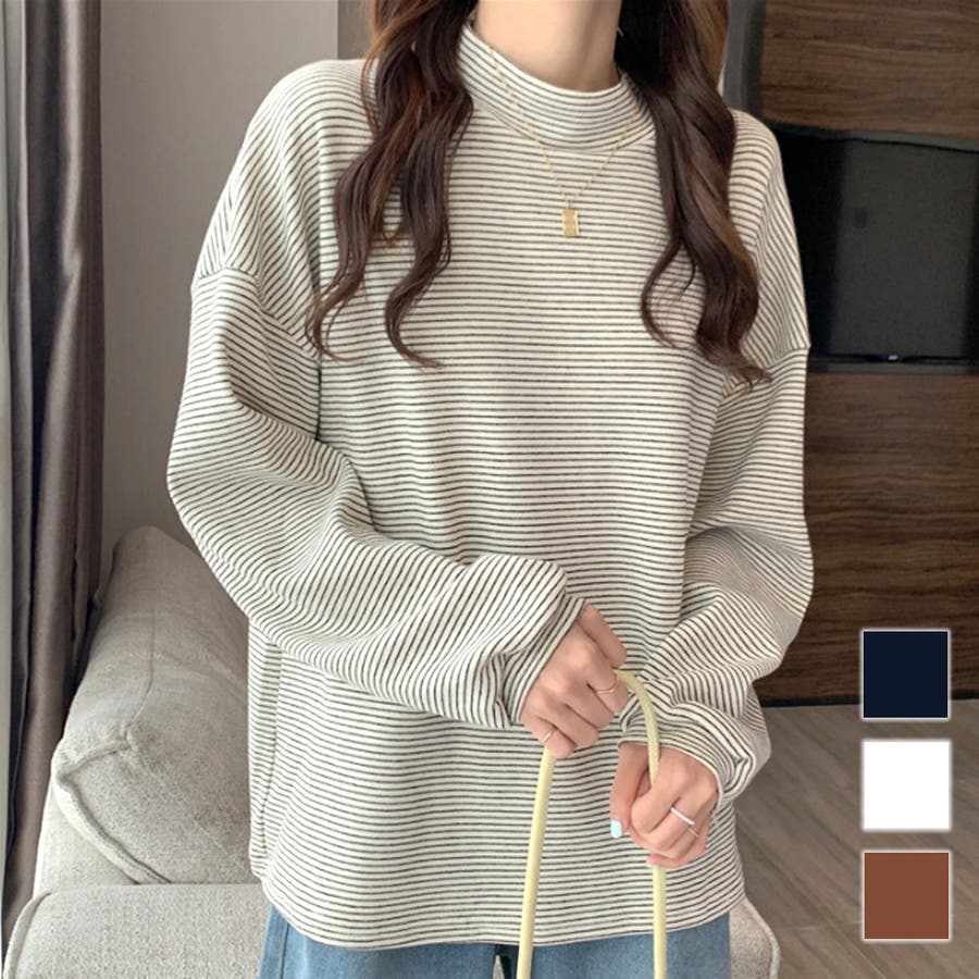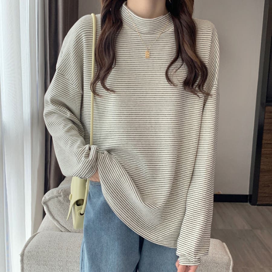 ハイネックボーダーカットソー レディース 10代