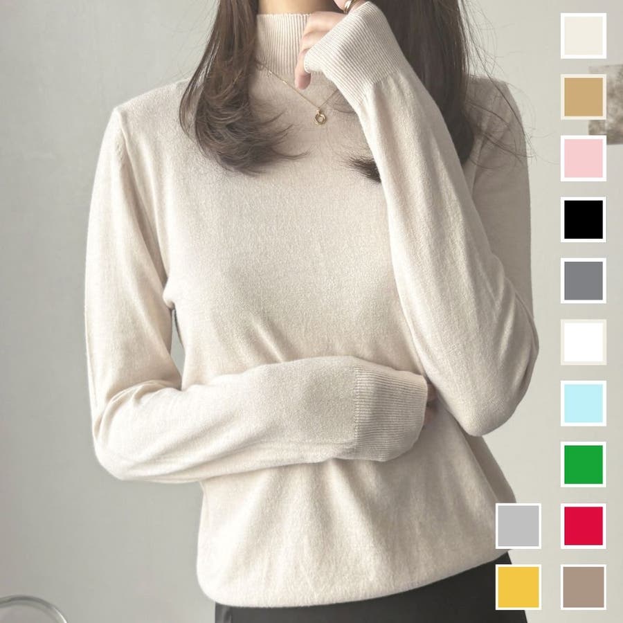 ハイネック長袖ニットトップス レディース ニット