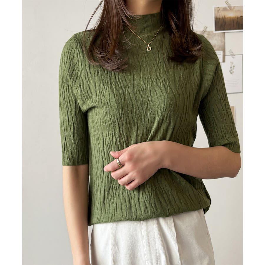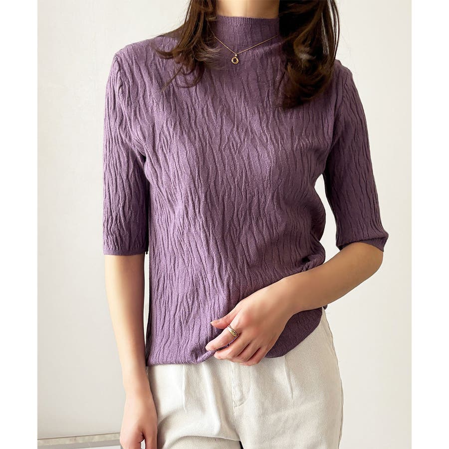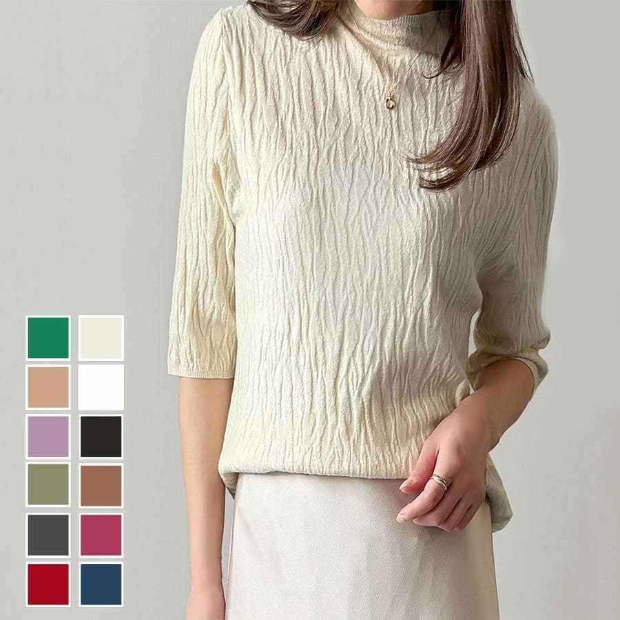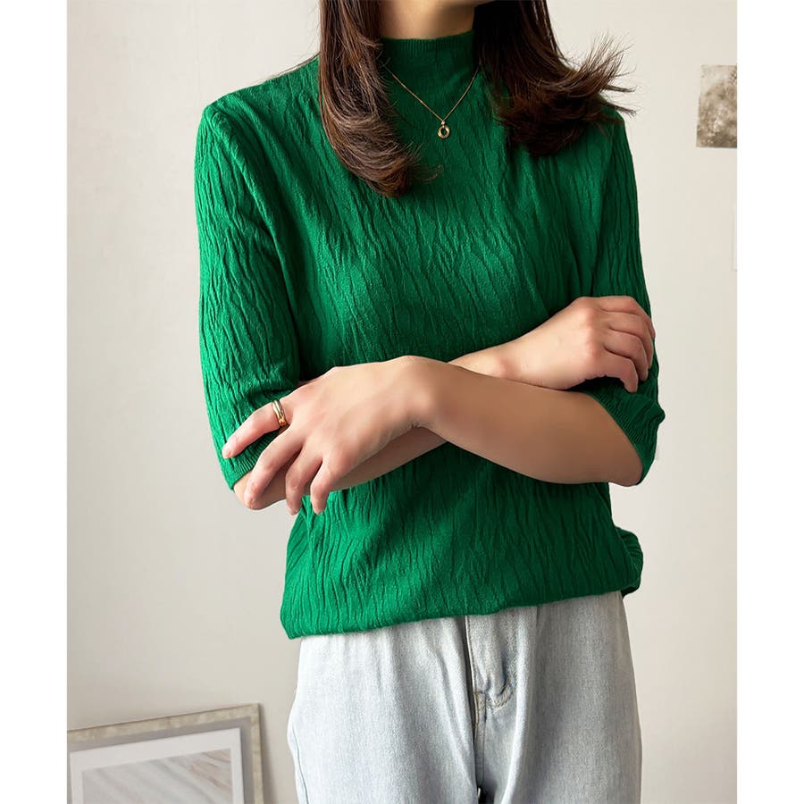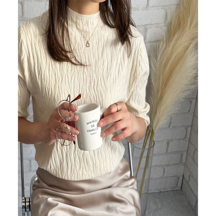 ・首元すっきりのハイネックで上品な大人スタイルに。