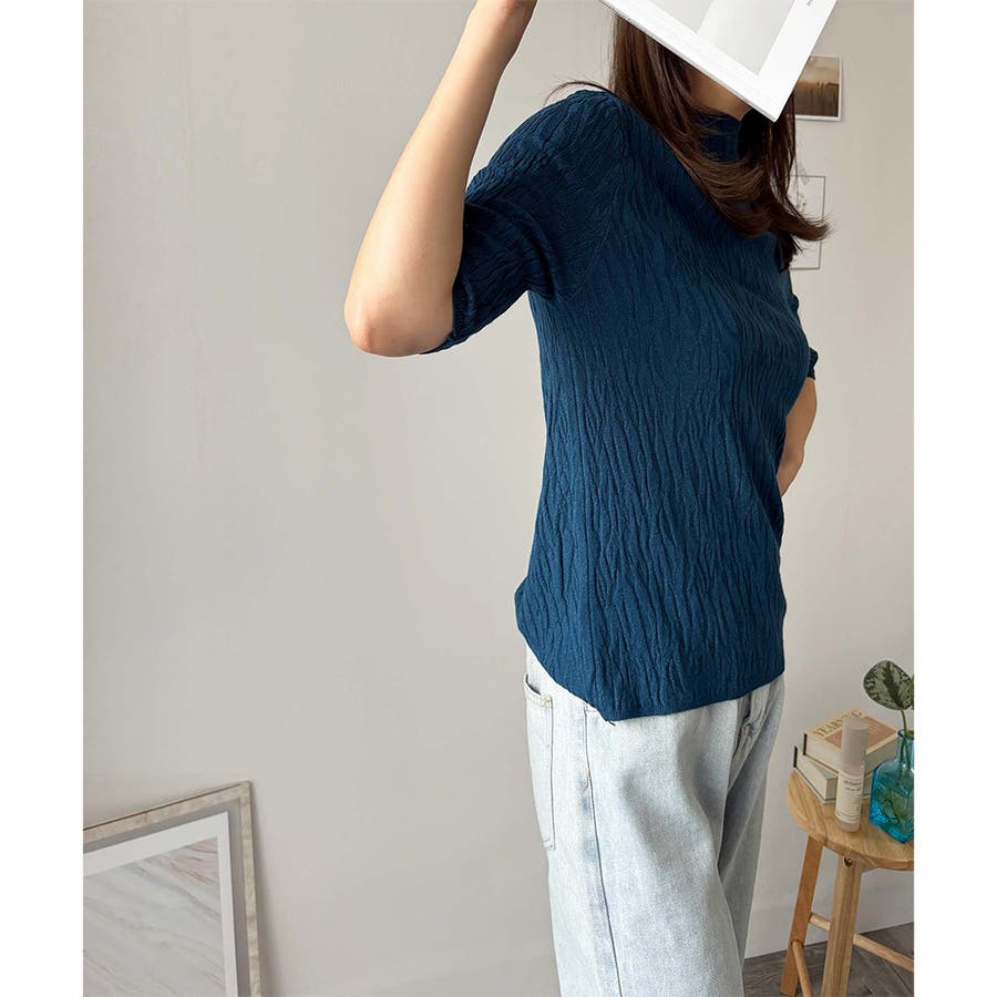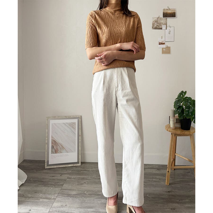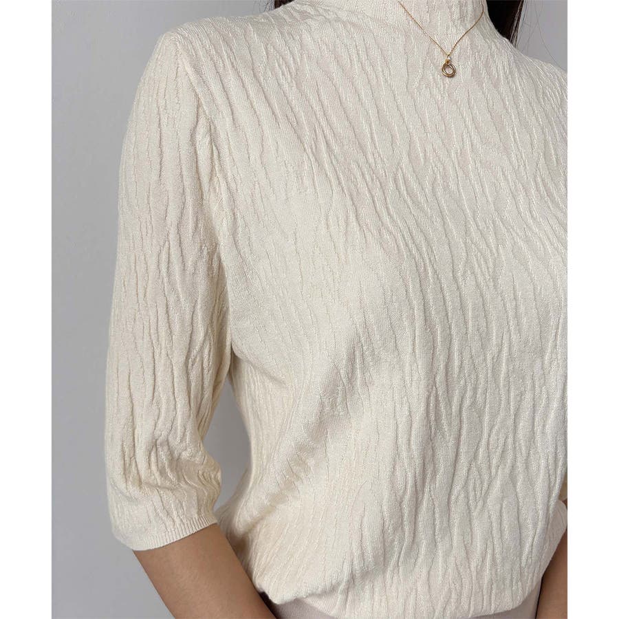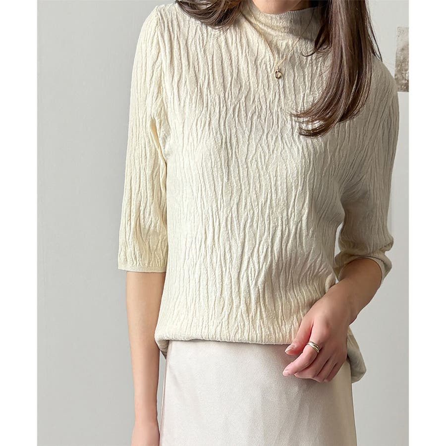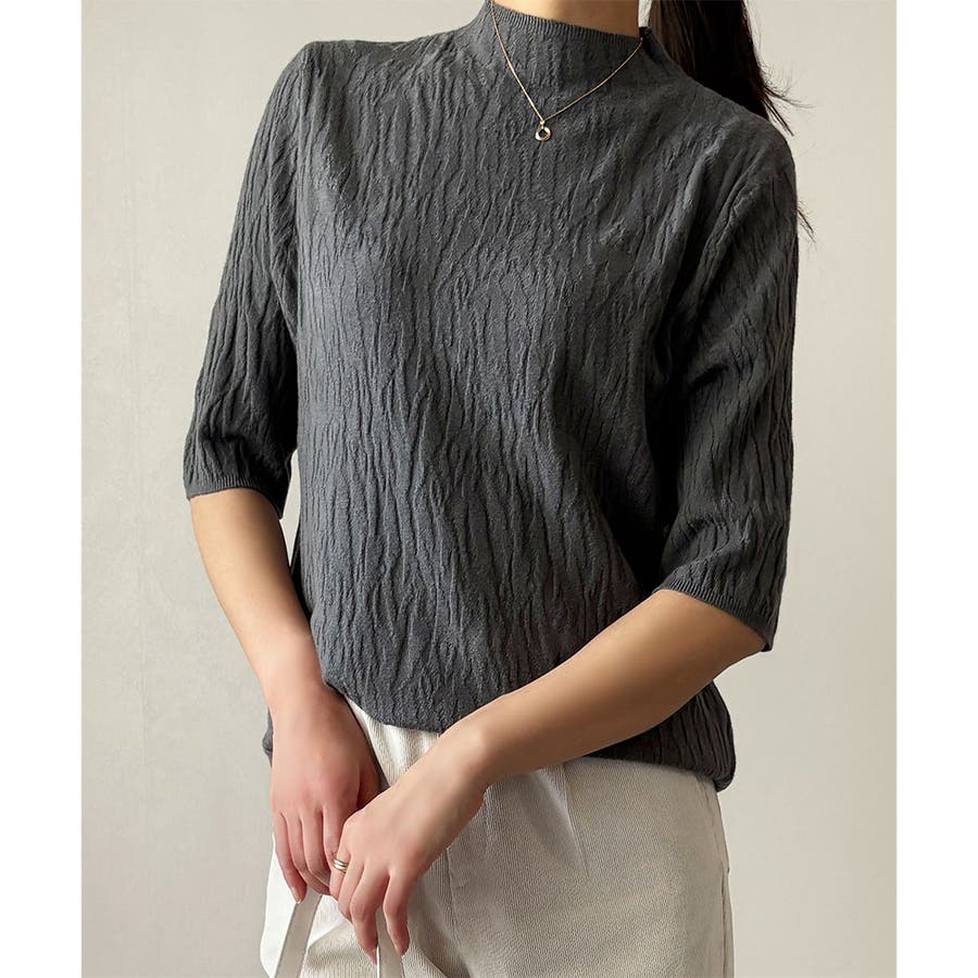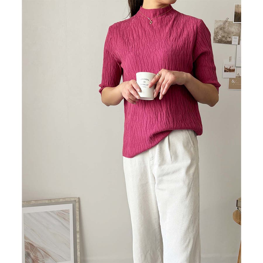 ・首元すっきりのハイネックで上品な大人スタイルに。