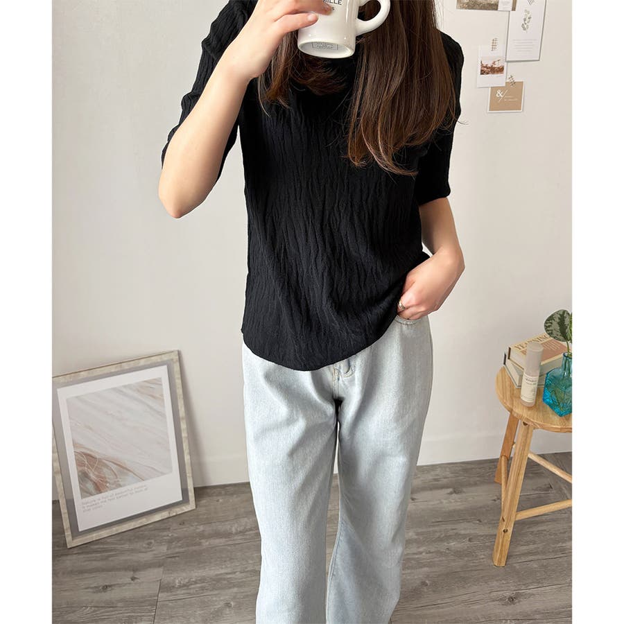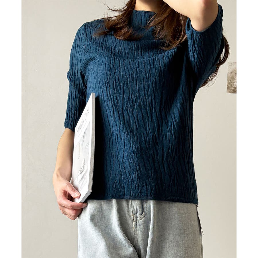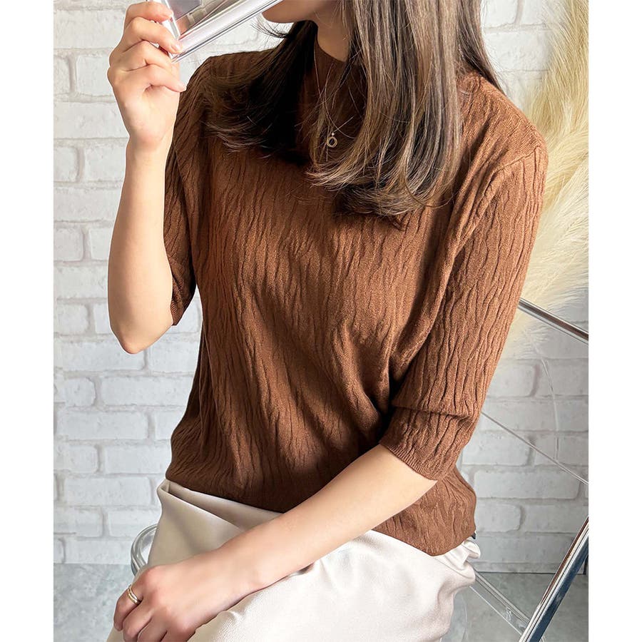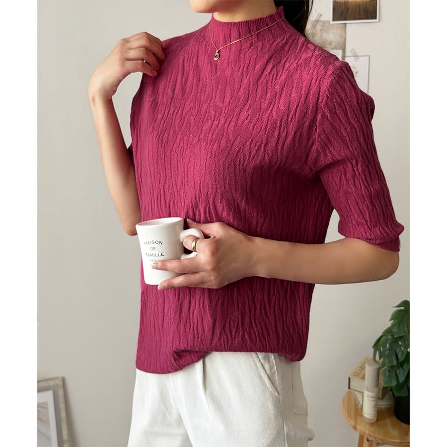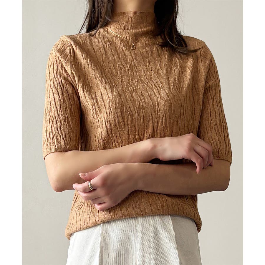 ・首元すっきりのハイネックで上品な大人スタイルに。