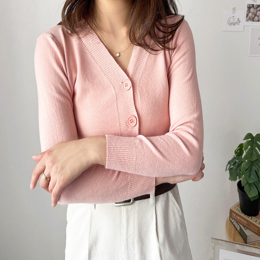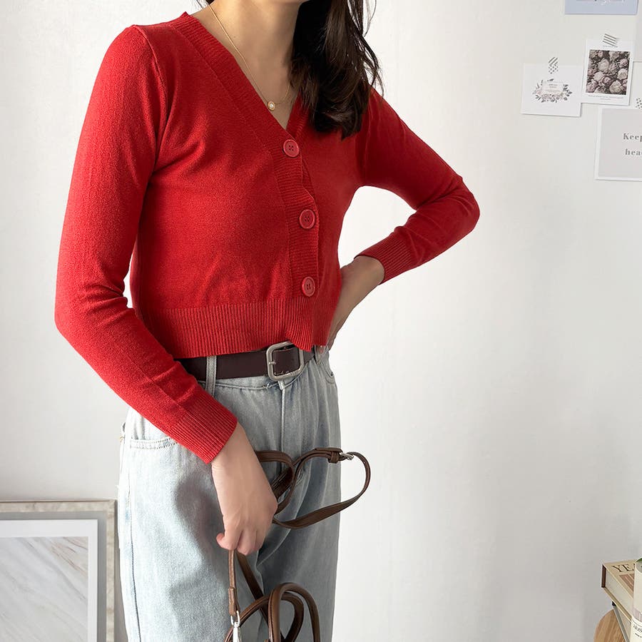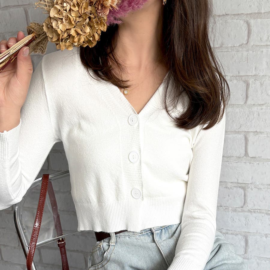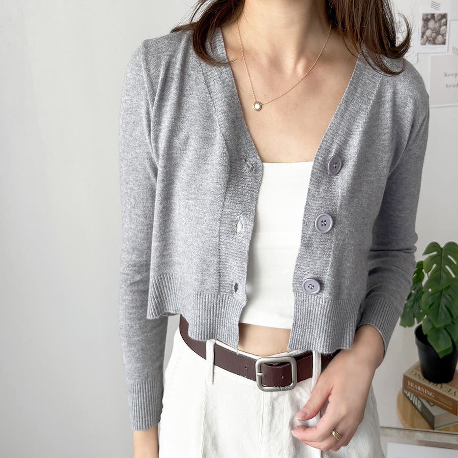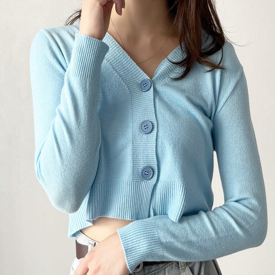 Vネックショート丈カーディガン レディース カーディガン