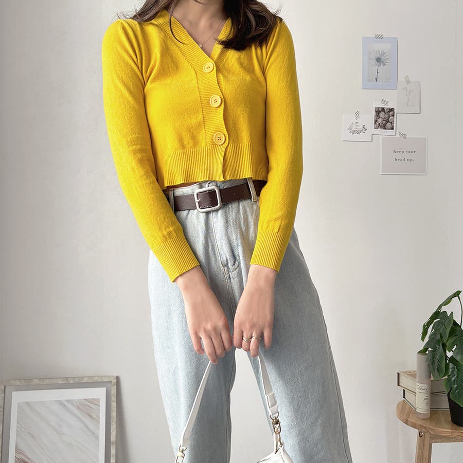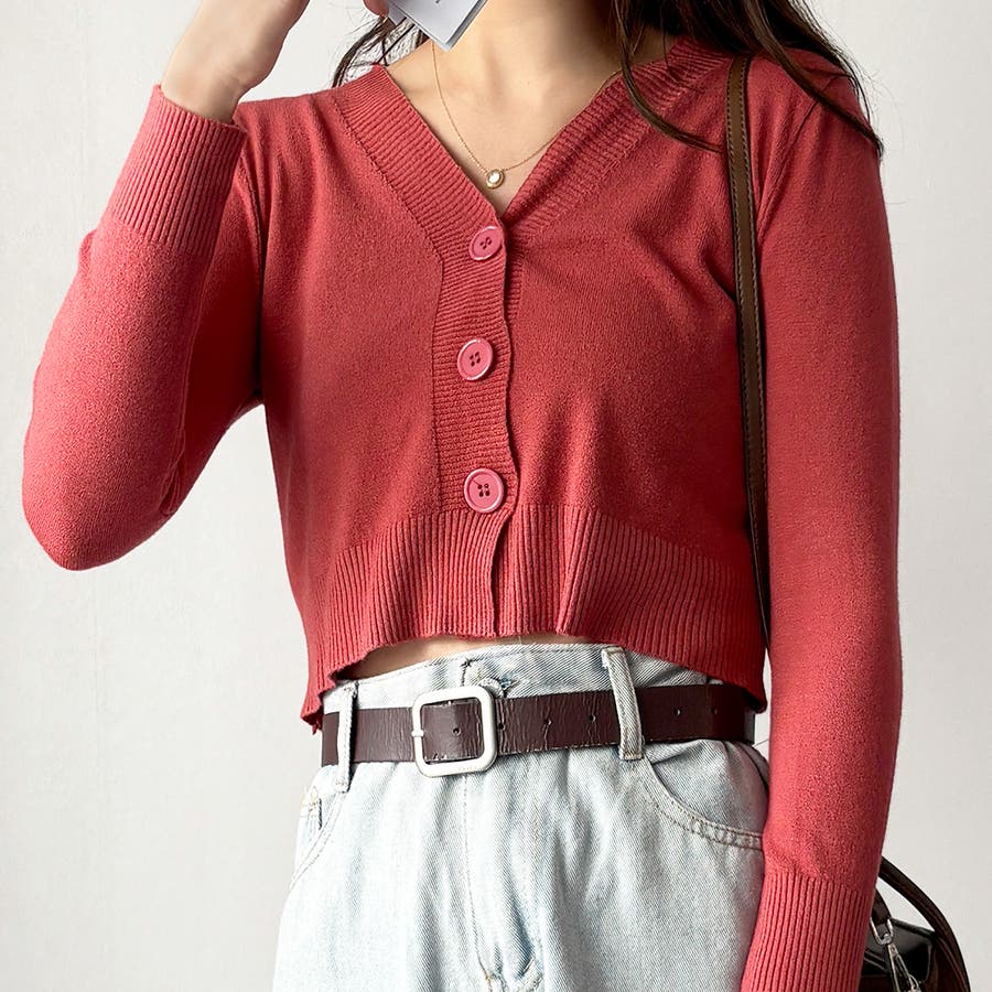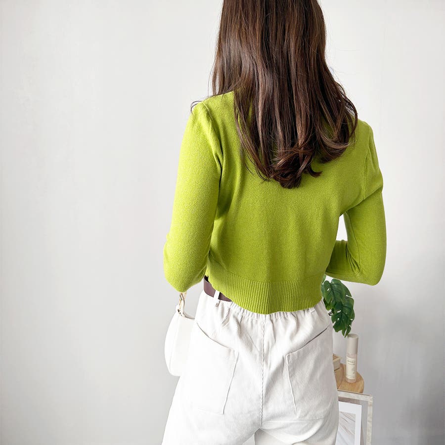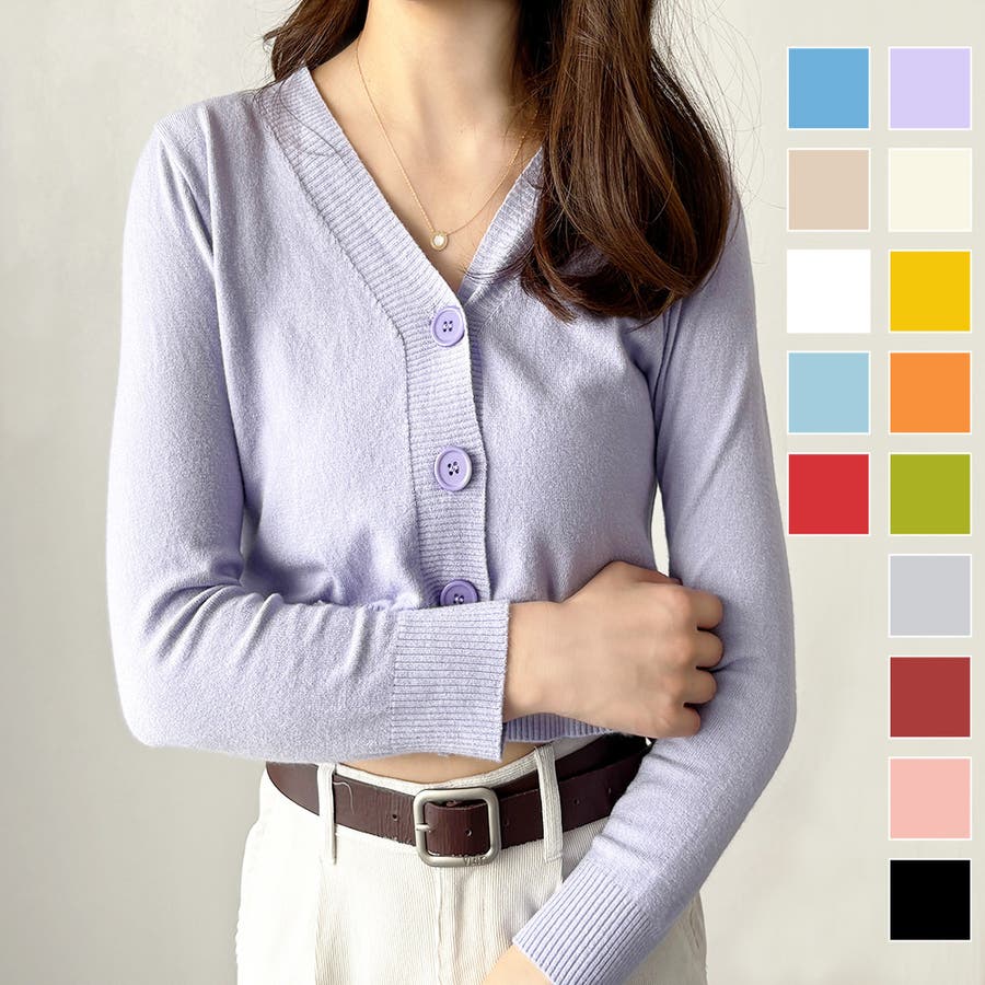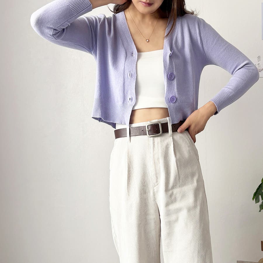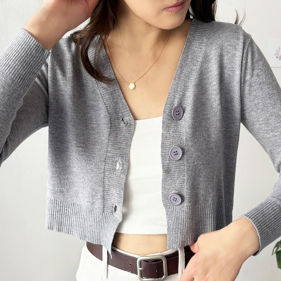 Vネックショート丈カーディガン レディース カーディガン
