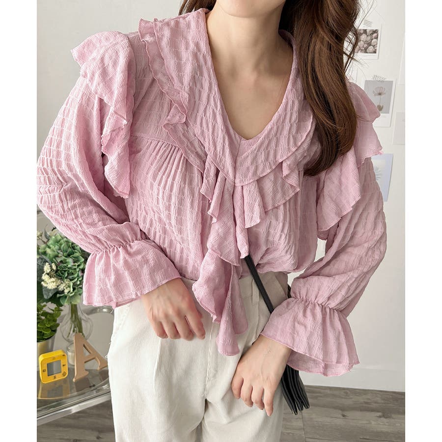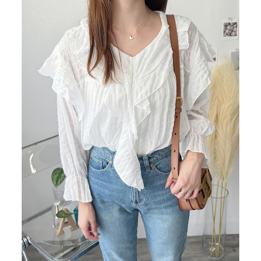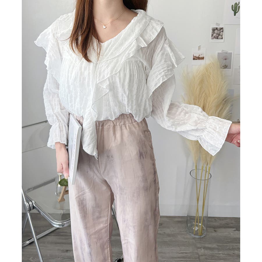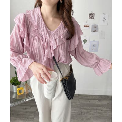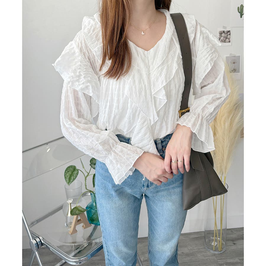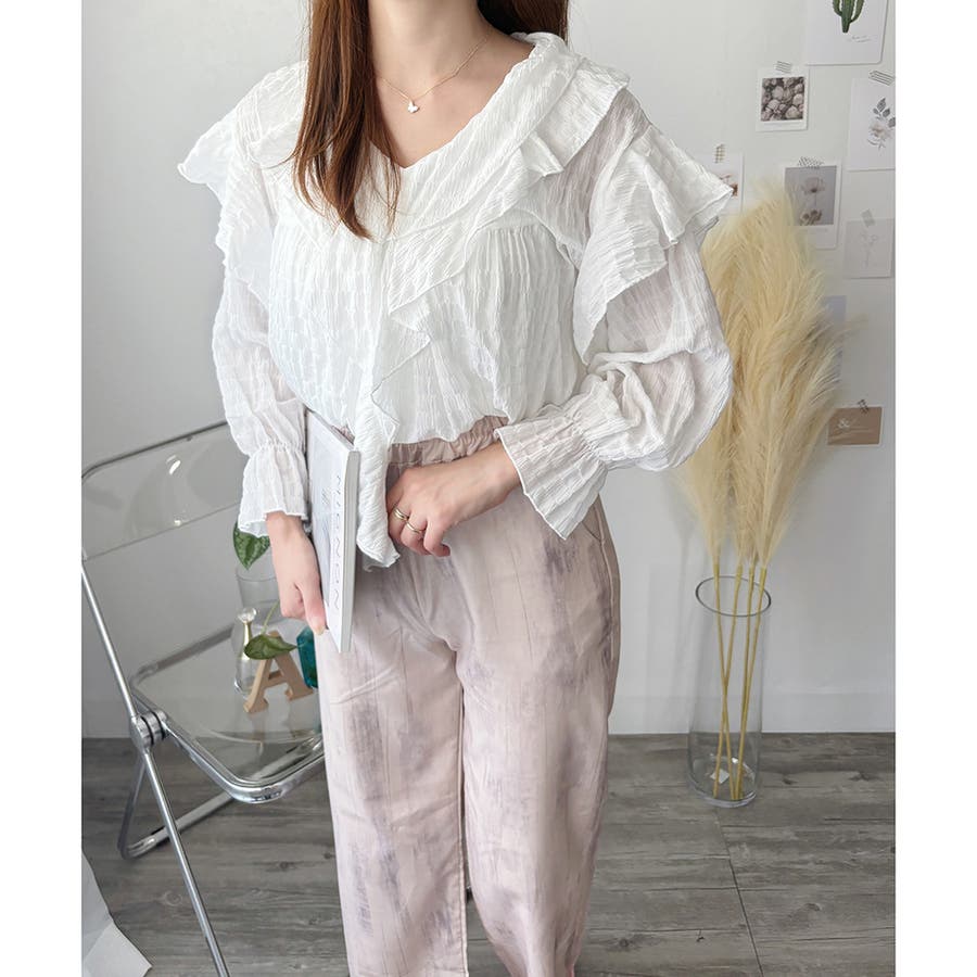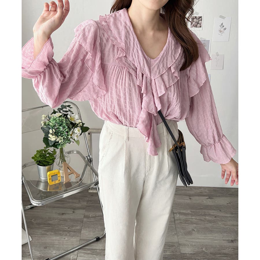 ・フリルがふんわり揺れる華やかなシフォンブラウスです♪