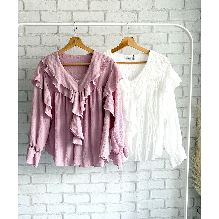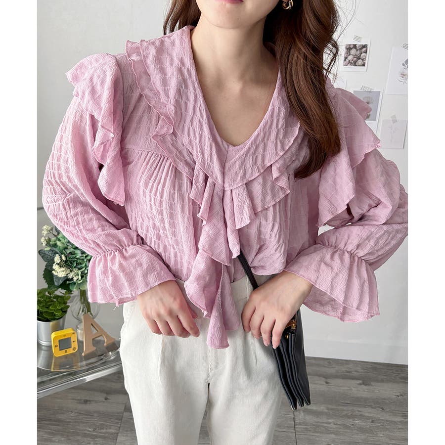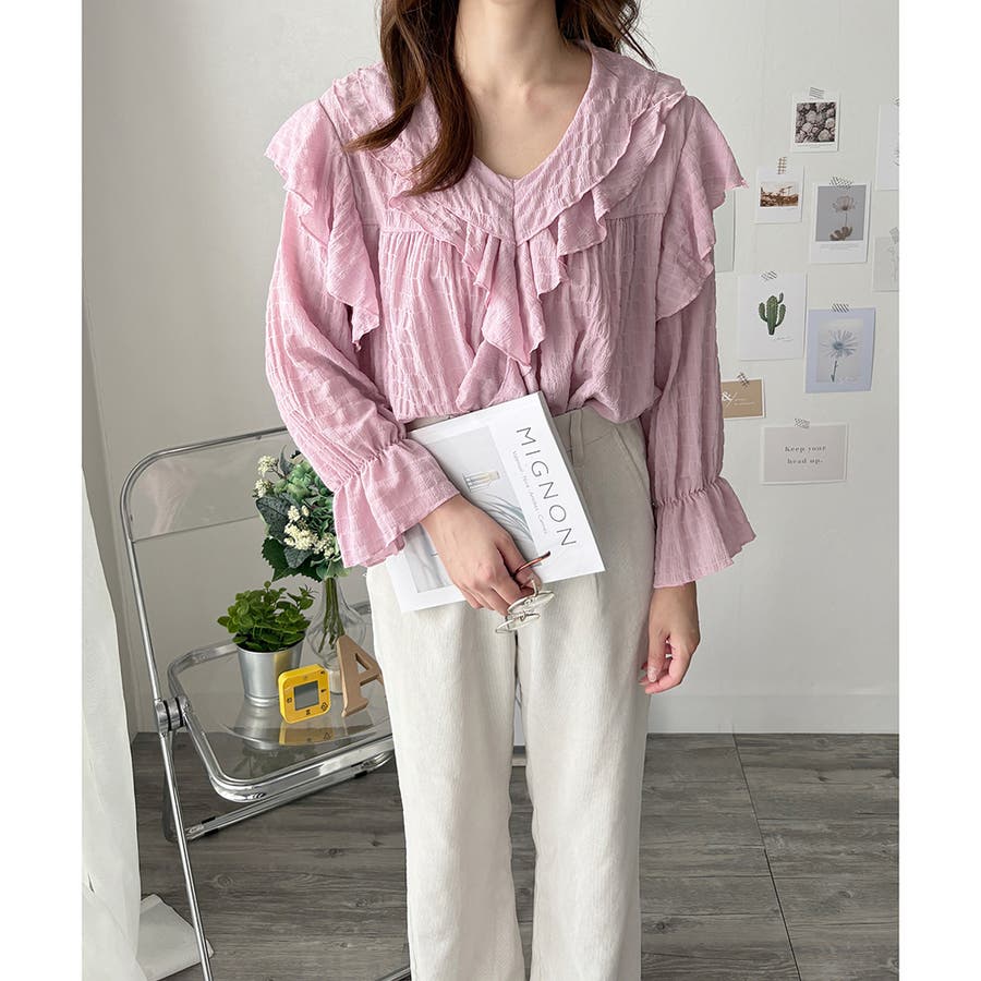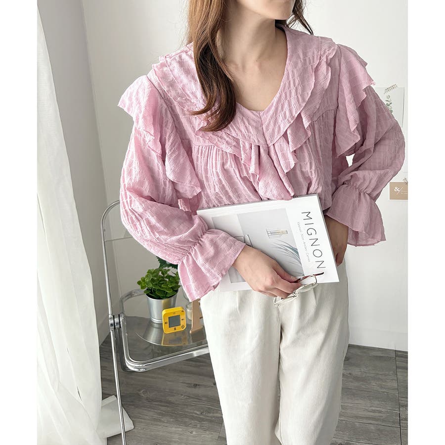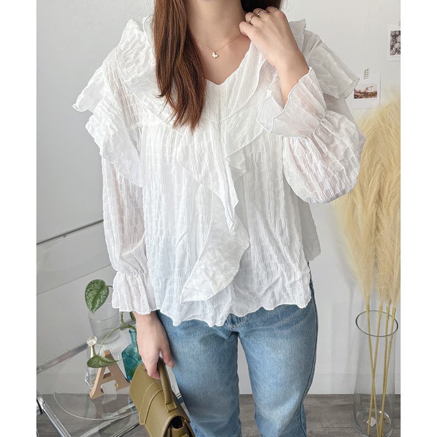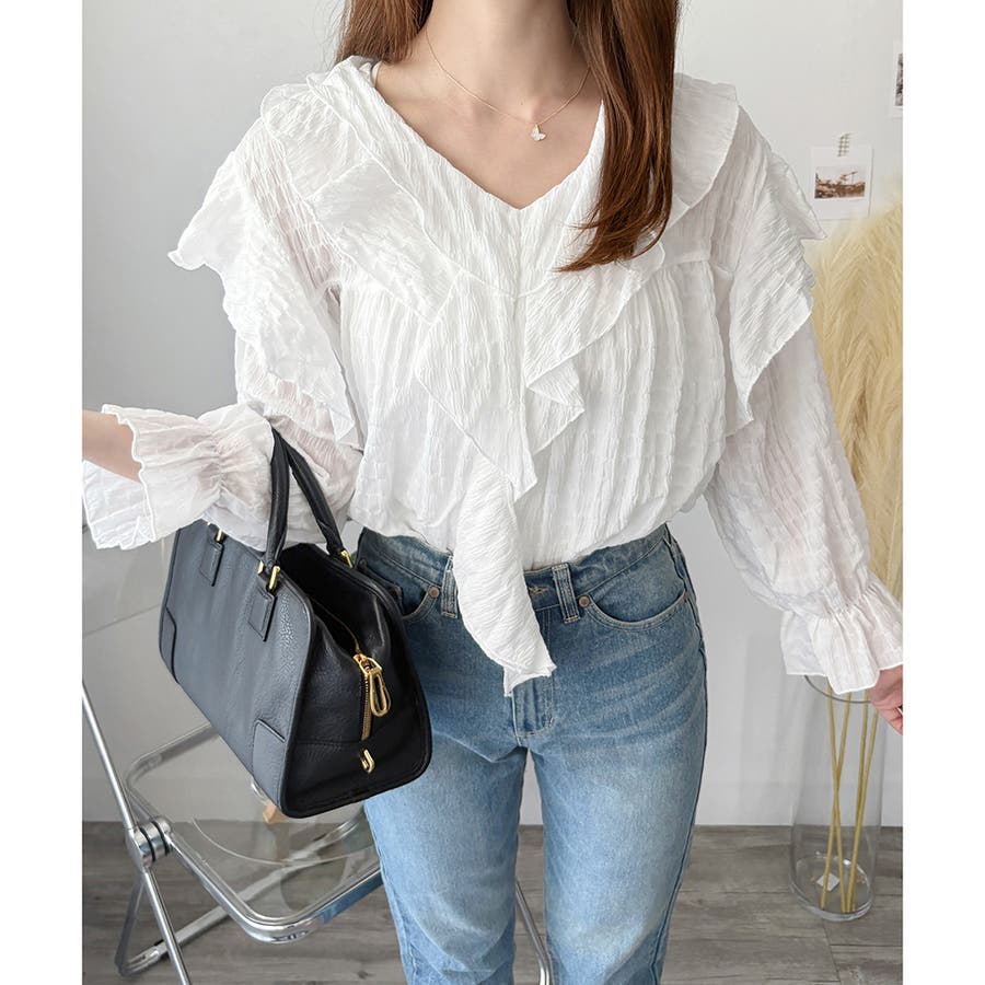・フリルがふんわり揺れる華やかなシフォンブラウスです♪
