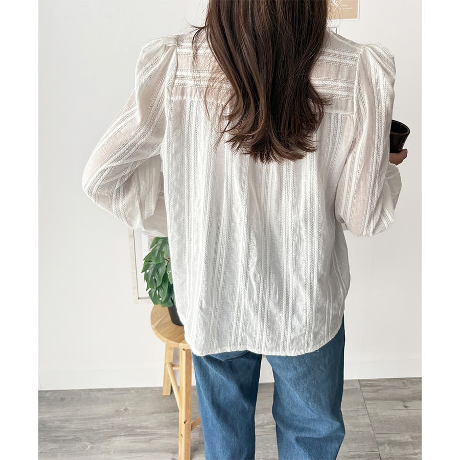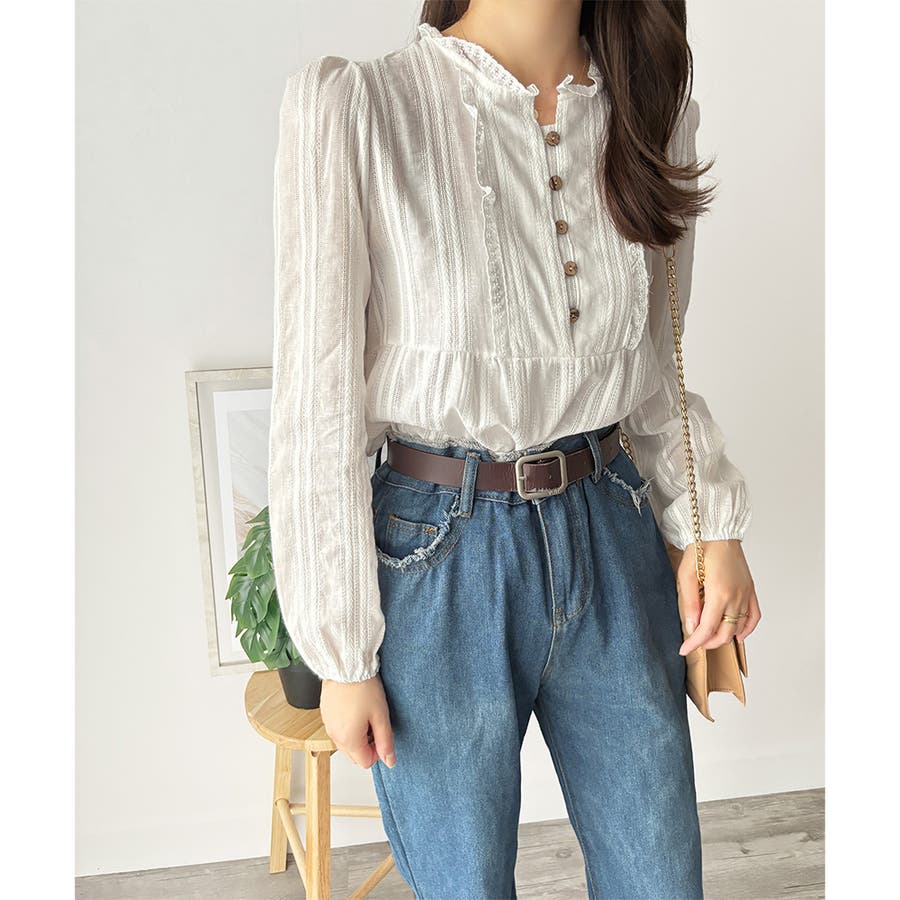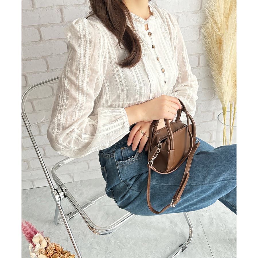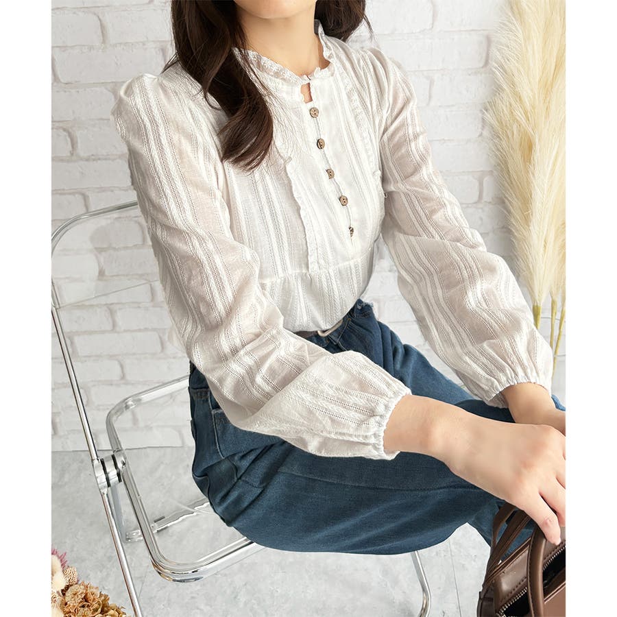 ・ギャザーやフリルで立体感があり、女性らしさたっぷりの一枚。さらっと着るだけで華やか見えが叶います◎