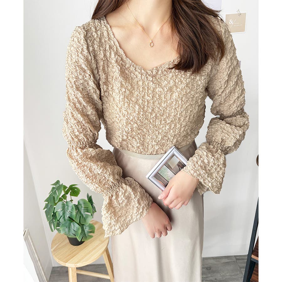 ・ナチュラルなワッシャー素材がこなれ感を演出。たっぷりとしたボリュームスリーブが空気を含んで揺れ、動くたびにふんわりと魅せる華やかブラウスです♪