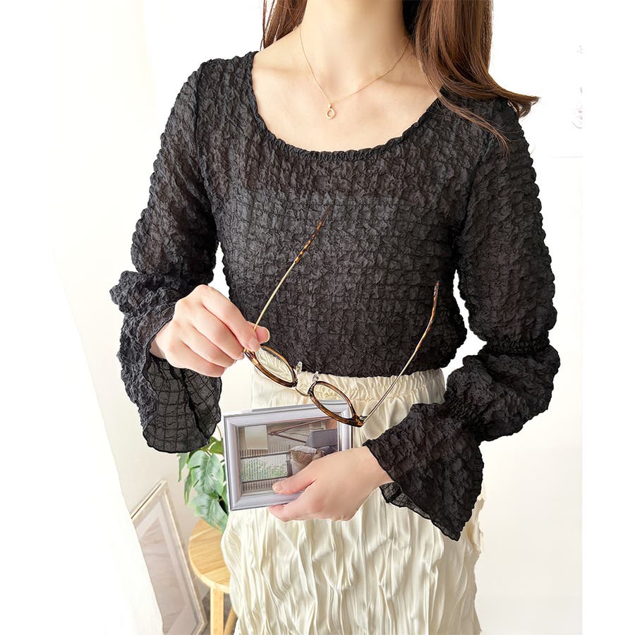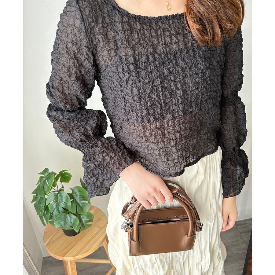 ワッシャータッチボリュームブラウス ブラウス シアー