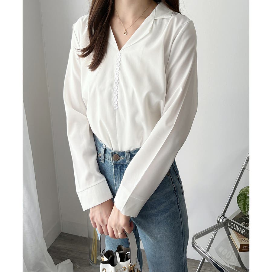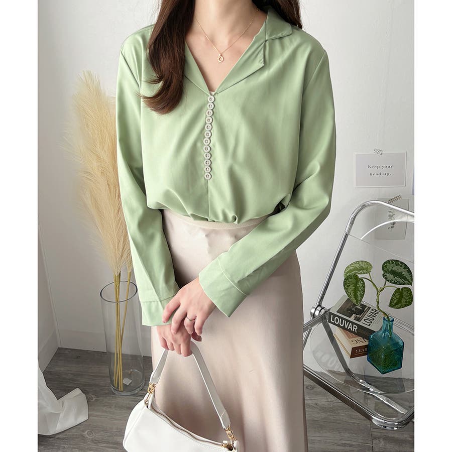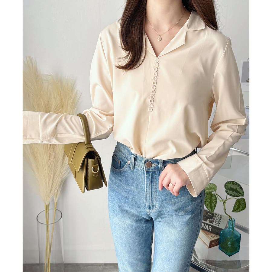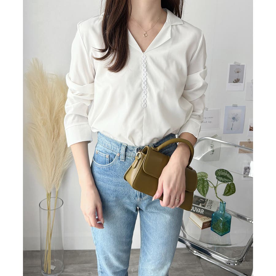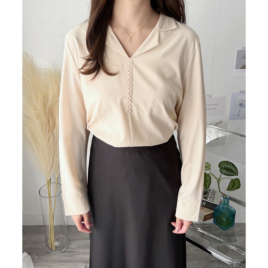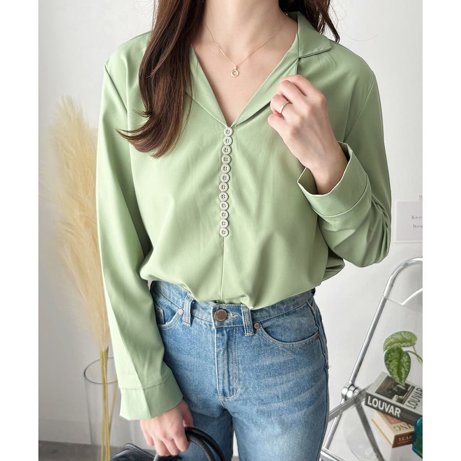 襟元の開き具合が顔まわりをすっきりと見せてくれます♪