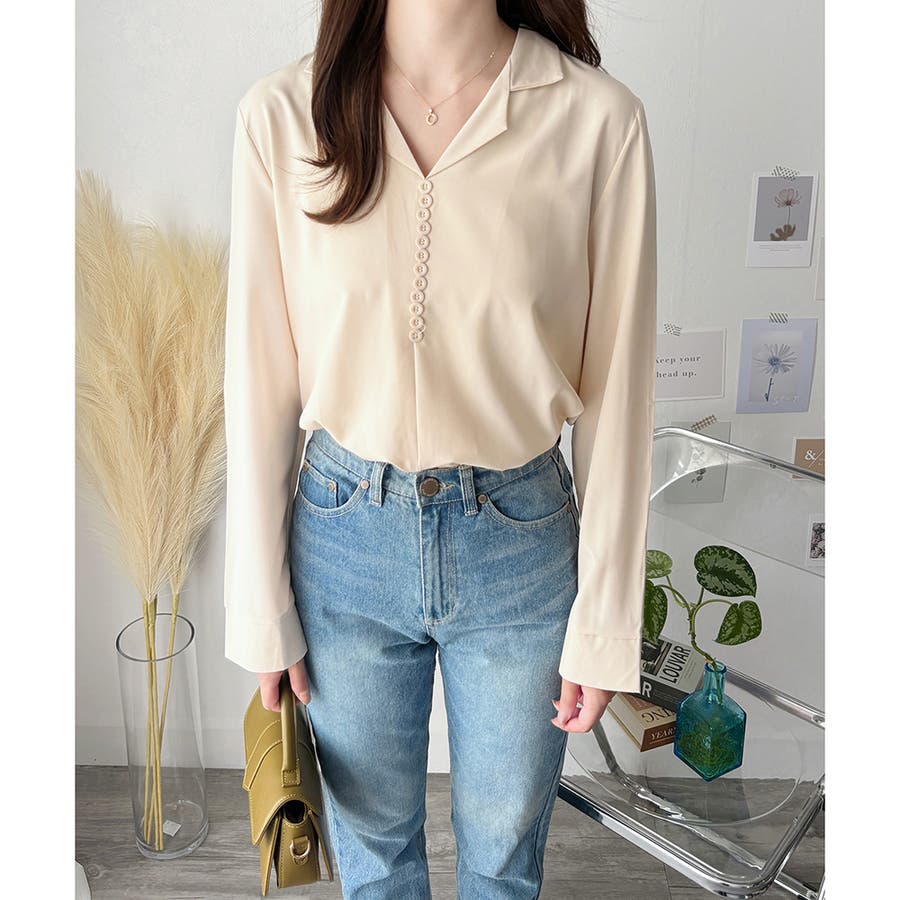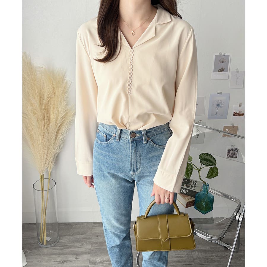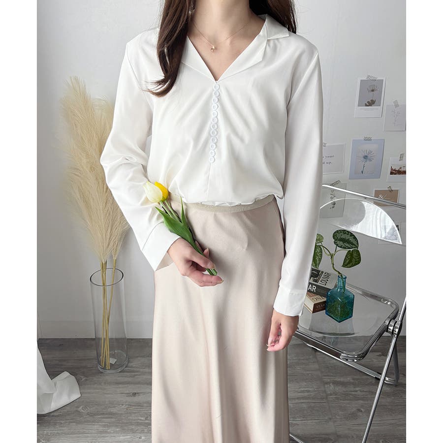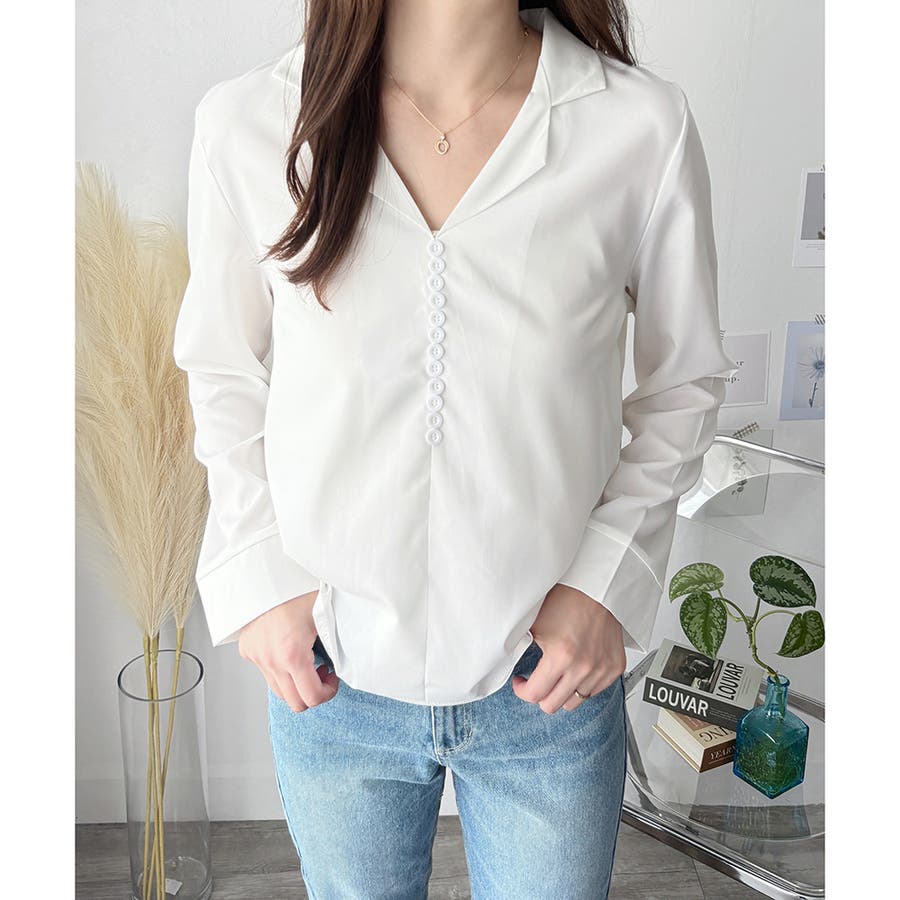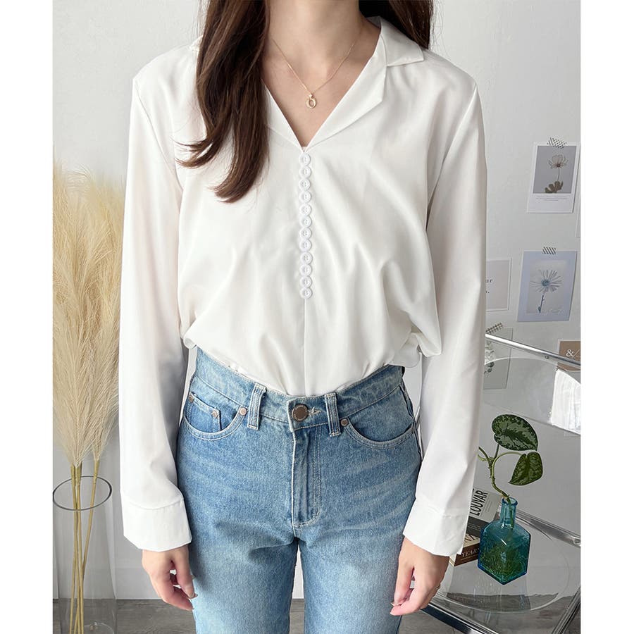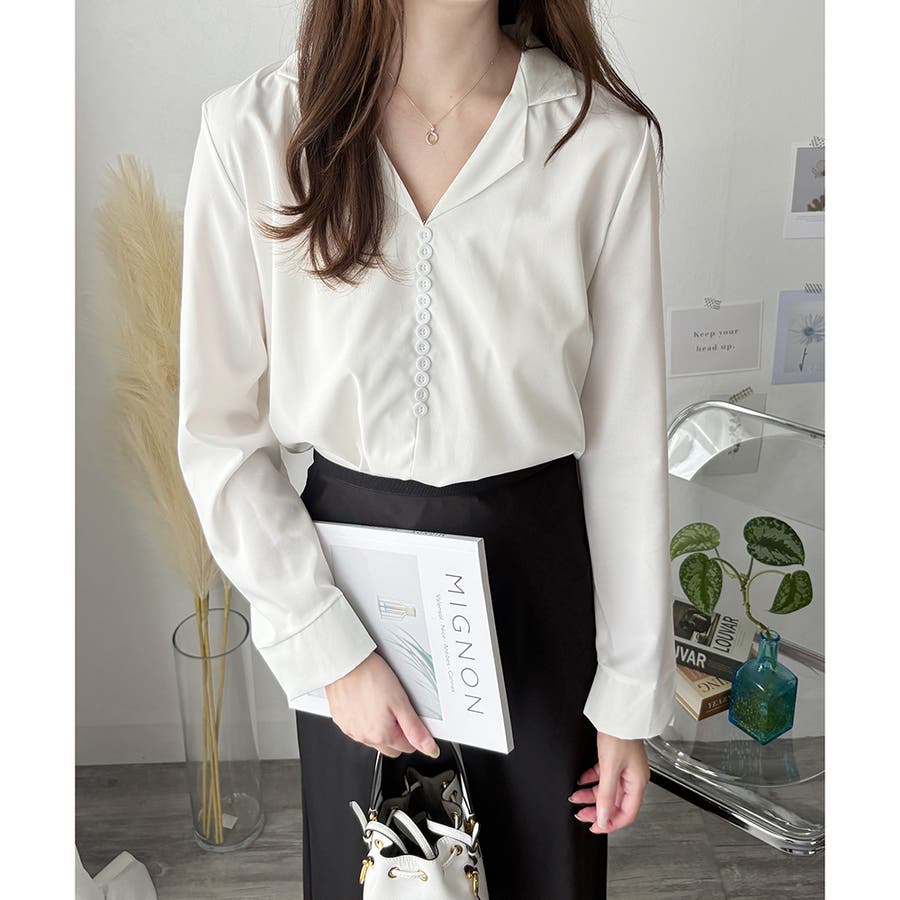 襟元の開き具合が顔まわりをすっきりと見せてくれます♪