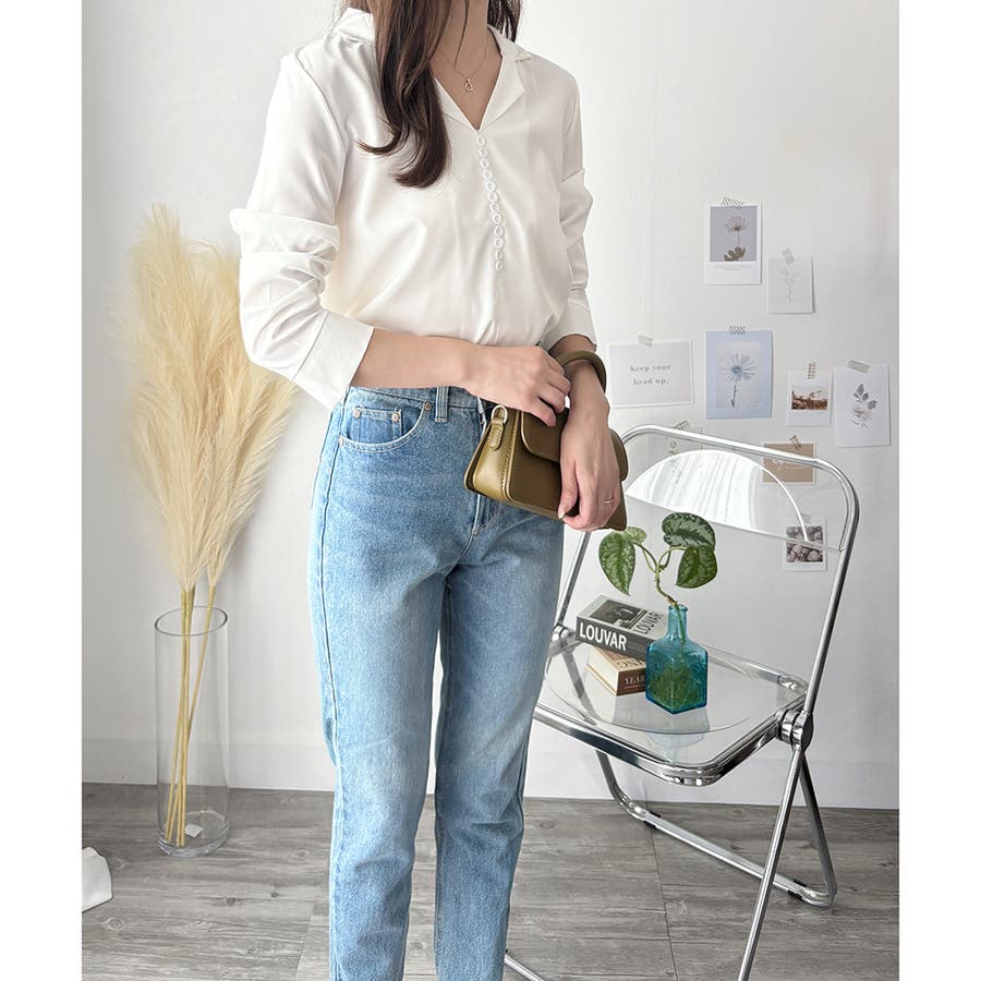ハイウエストスカートにインしてオフィス仕様に、デニム合わせでカジュアルダウンも。