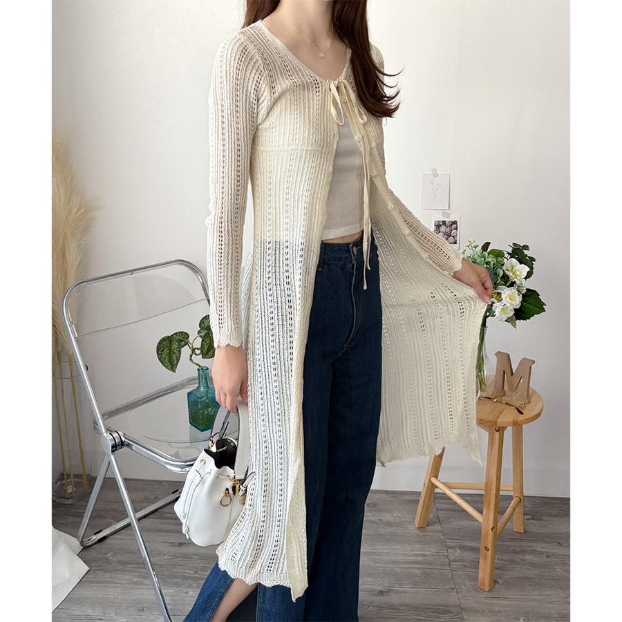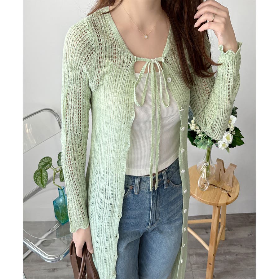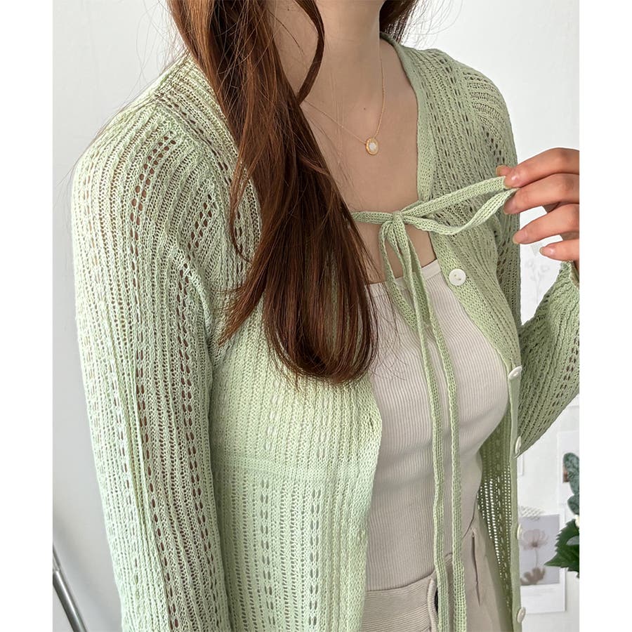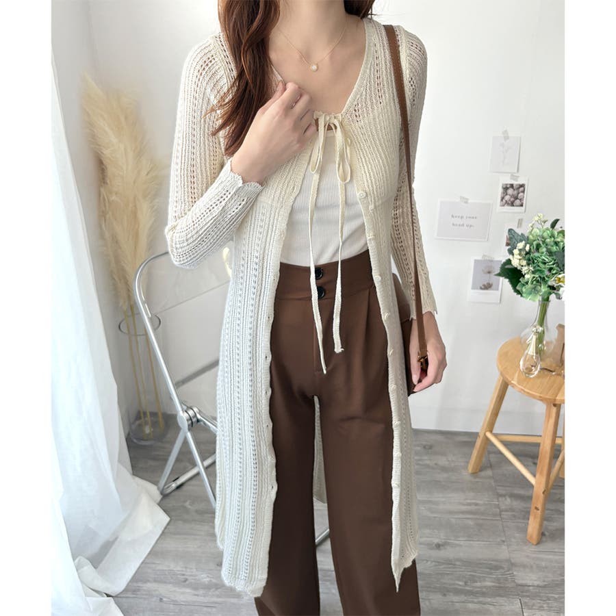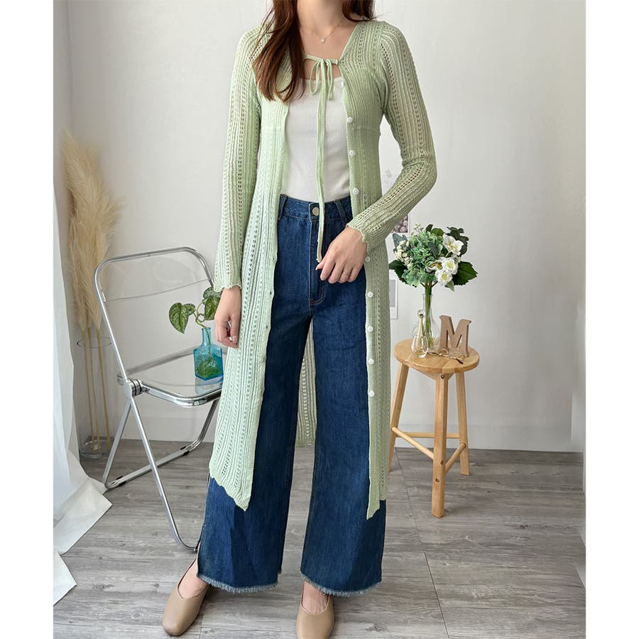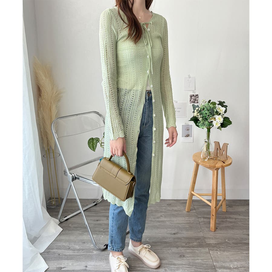 通気性のある透かし編み素材で、コーディネートに取り入れやすい仕上がりです。