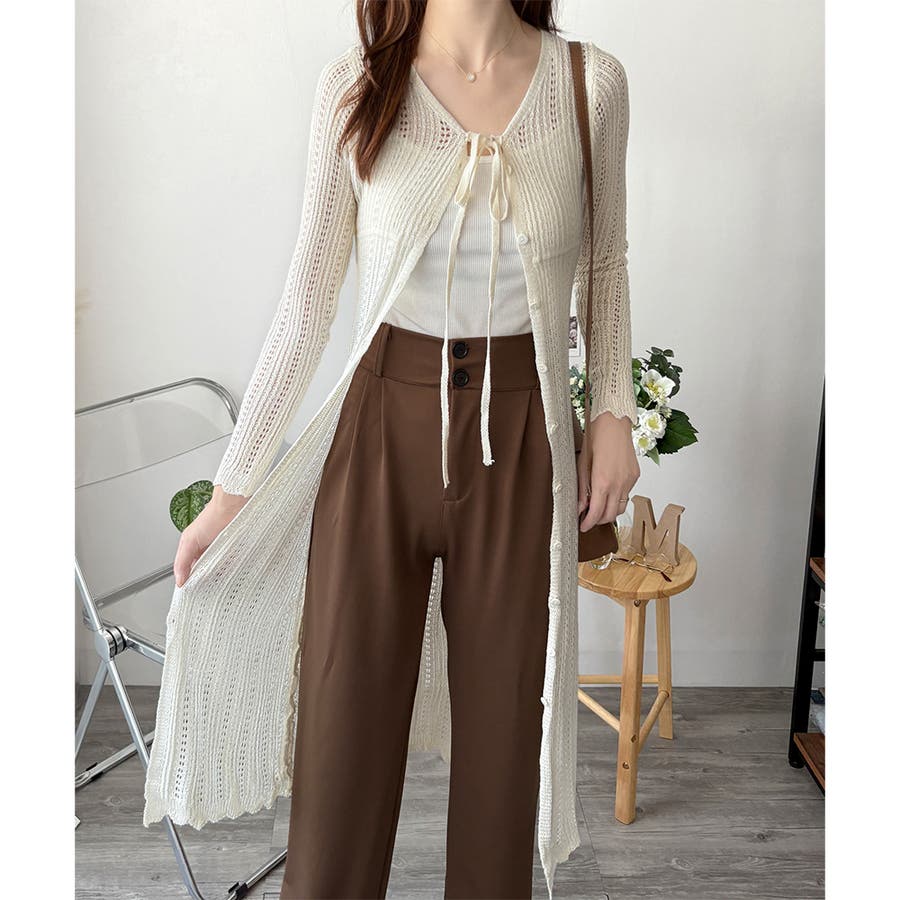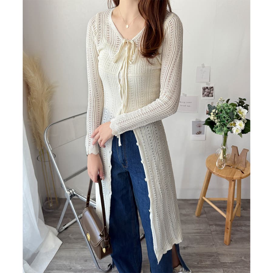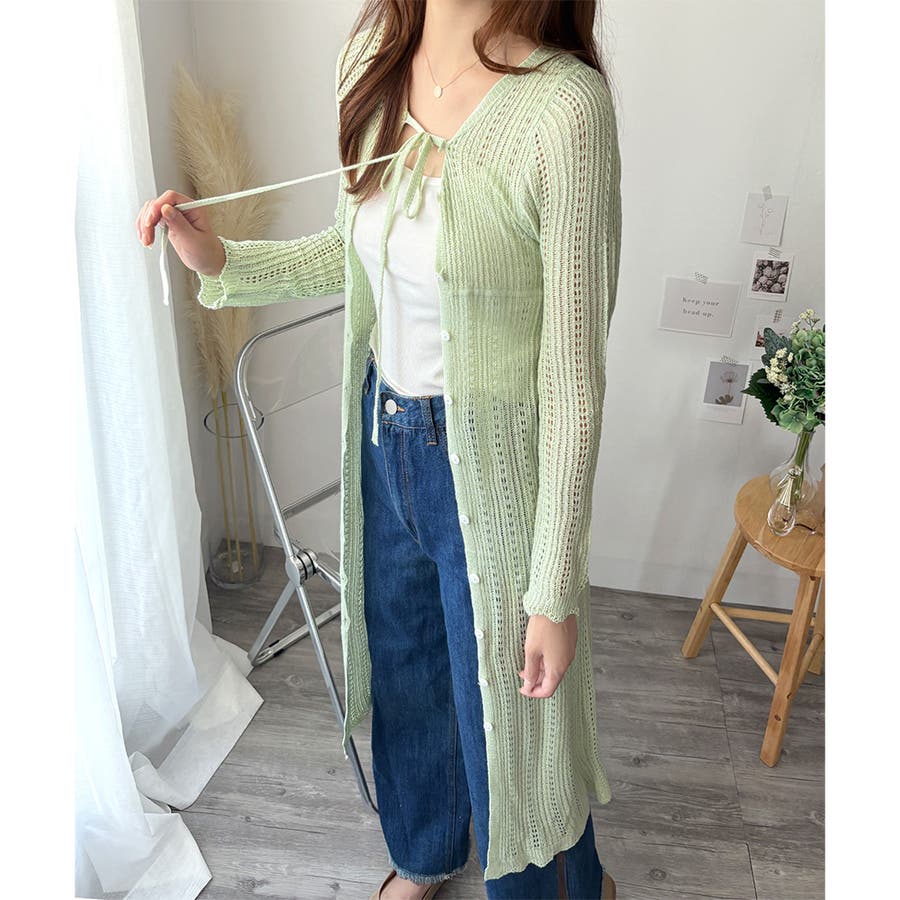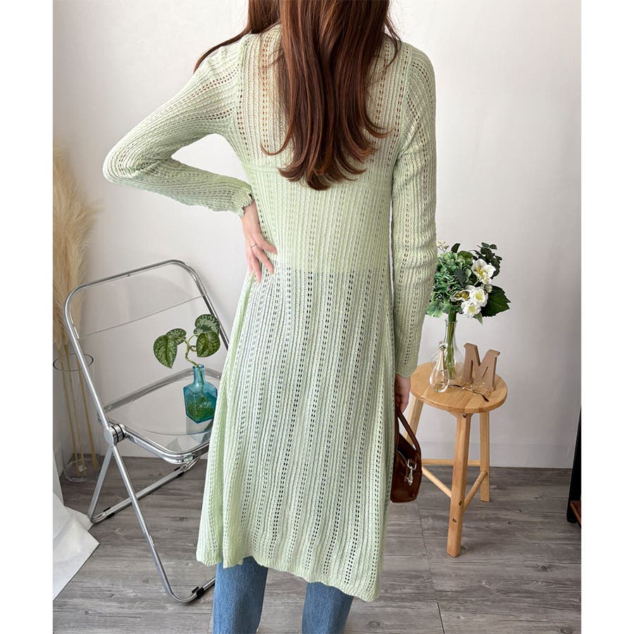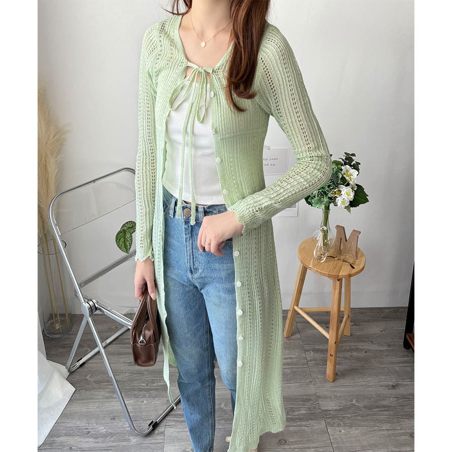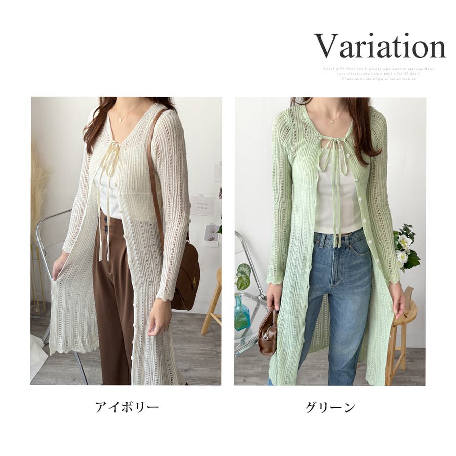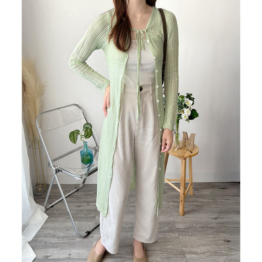 通気性のある透かし編み素材で、コーディネートに取り入れやすい仕上がりです。