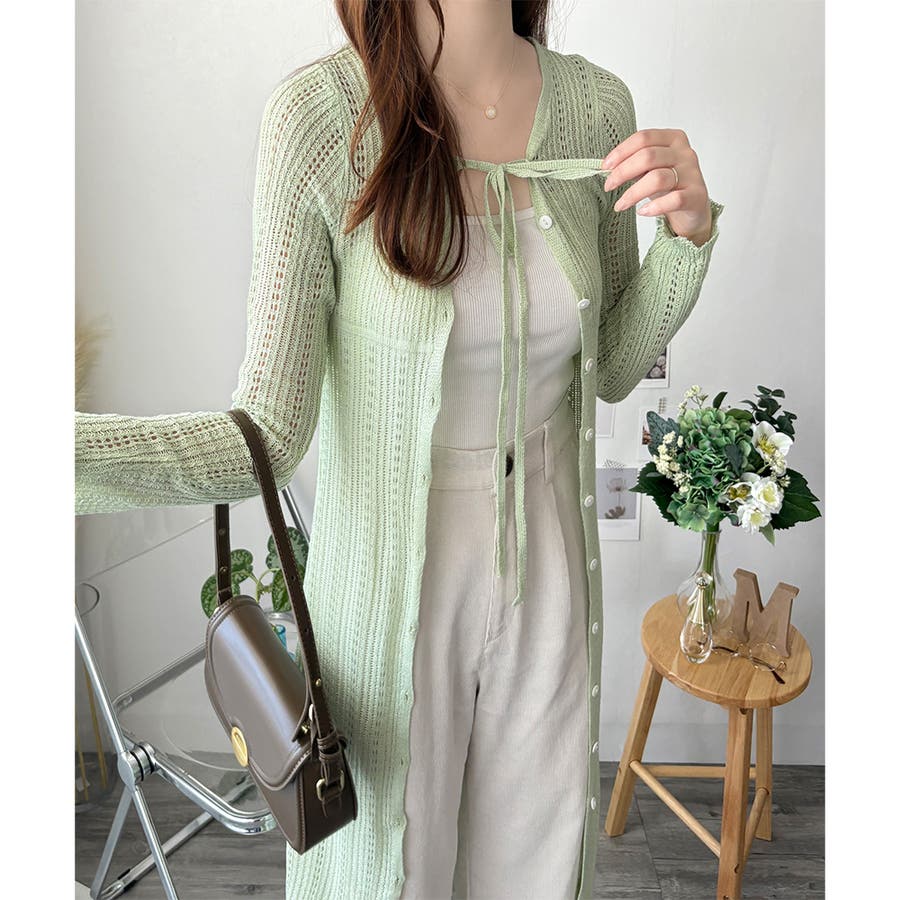 ロング丈ならではのエレガントさがありつつ、リボン結びのディテールが女性らしいアクセントに。