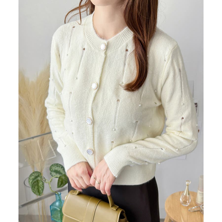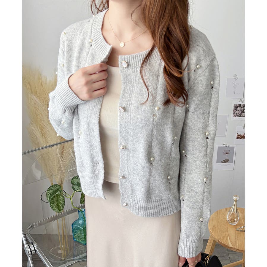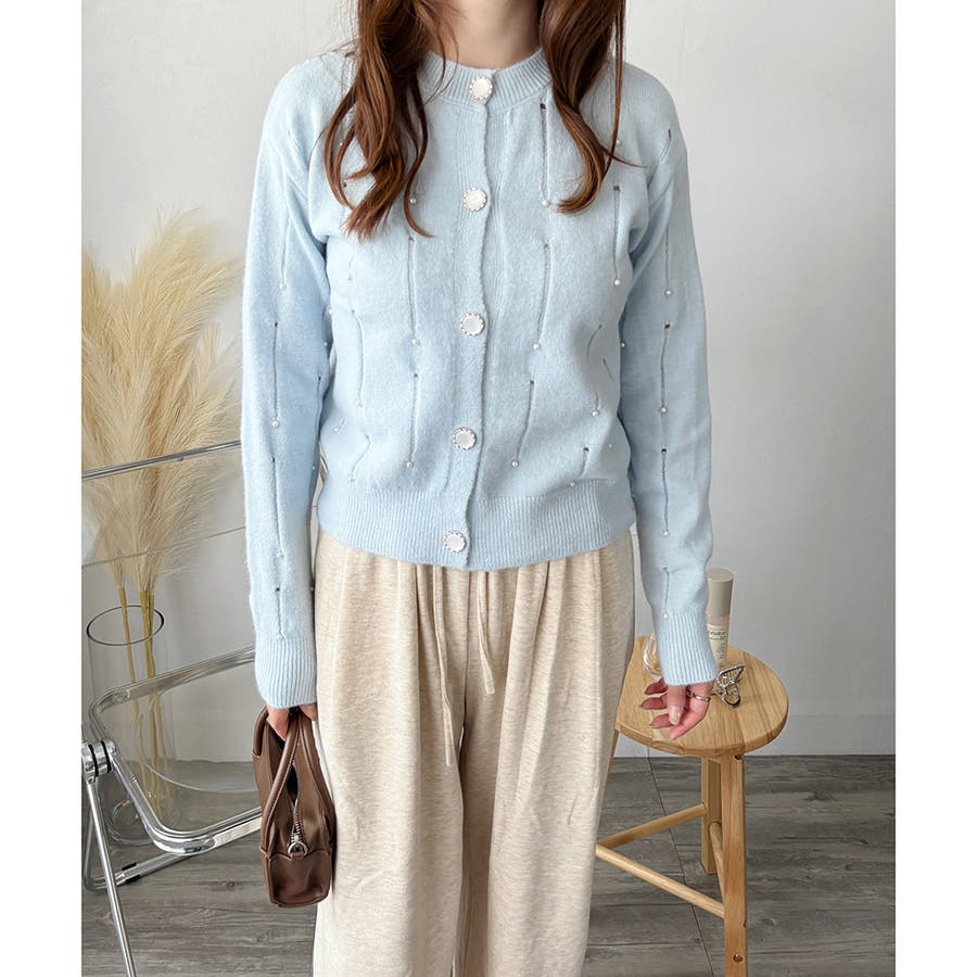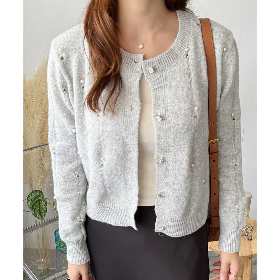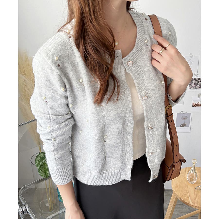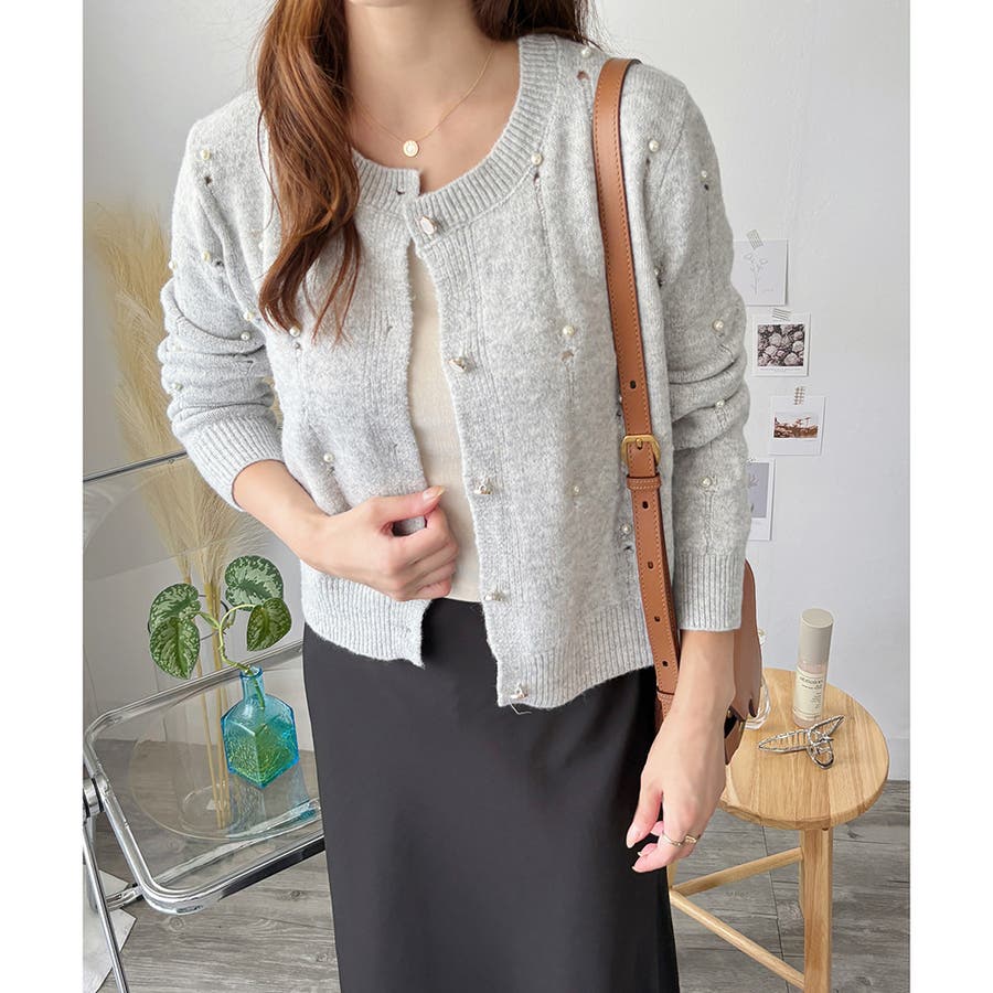 フロントにあしらわれたフェイクパールが、上品で華やかな印象を与えます♪