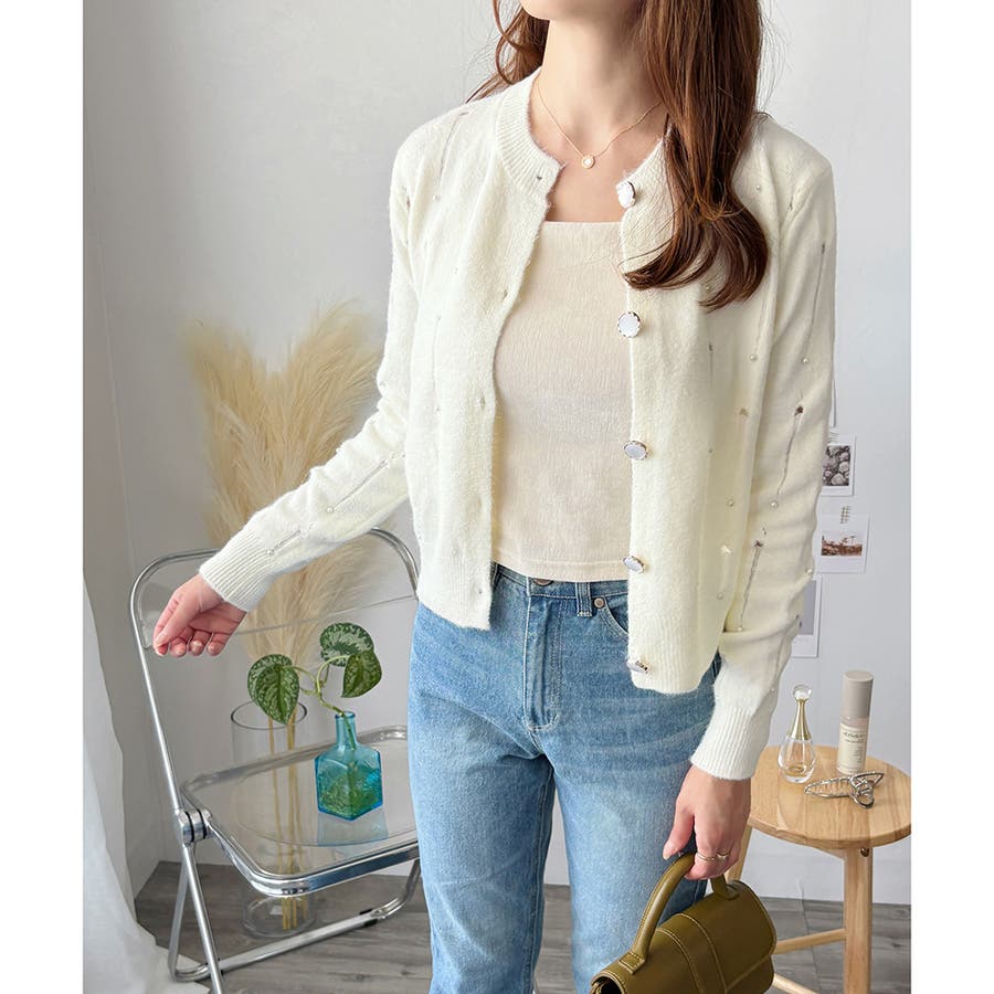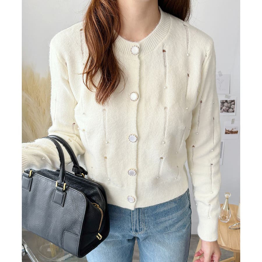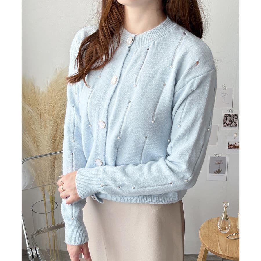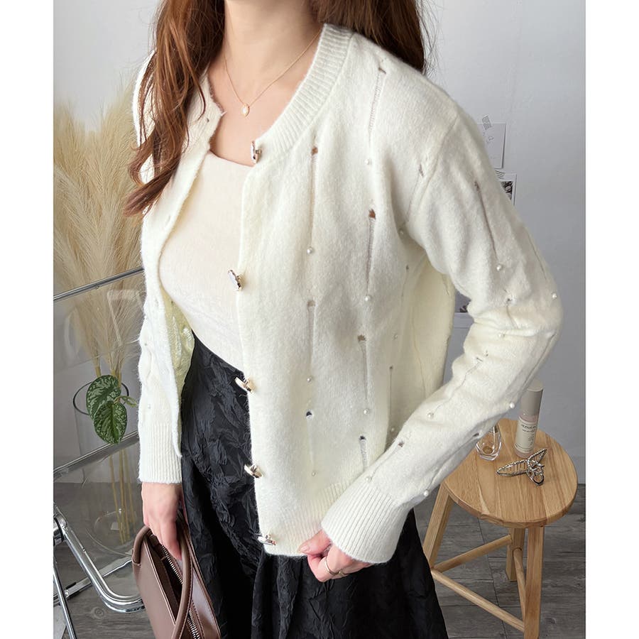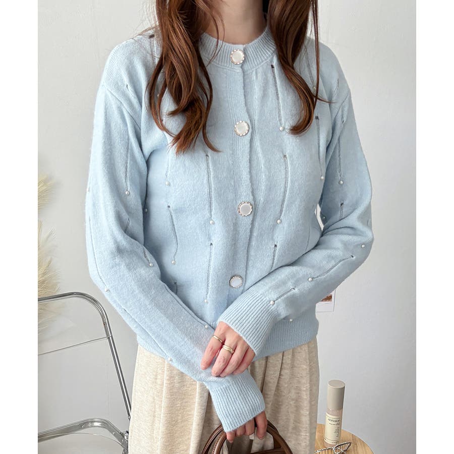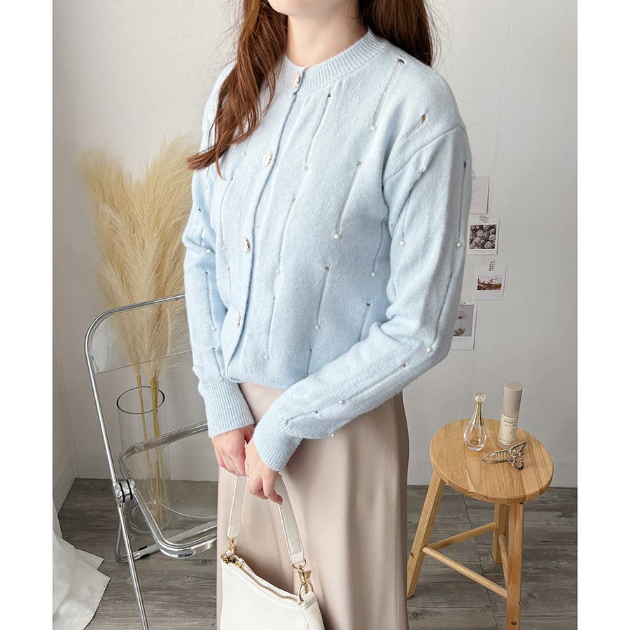 フロントにあしらわれたフェイクパールが、上品で華やかな印象を与えます♪