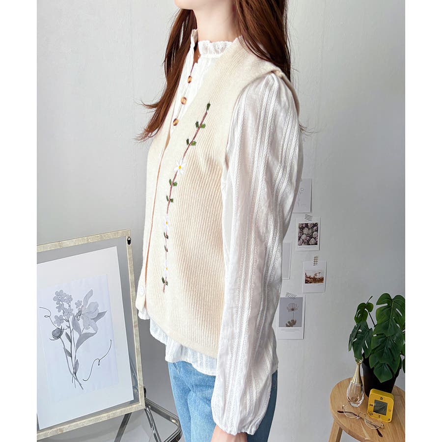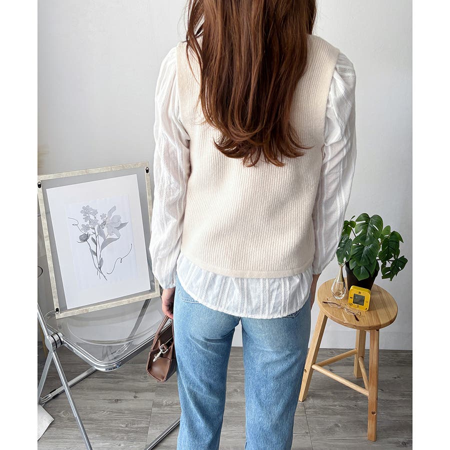ゆったりとしたシルエットで、シャツやブラウスとの重ね着がしやすい仕立てです。